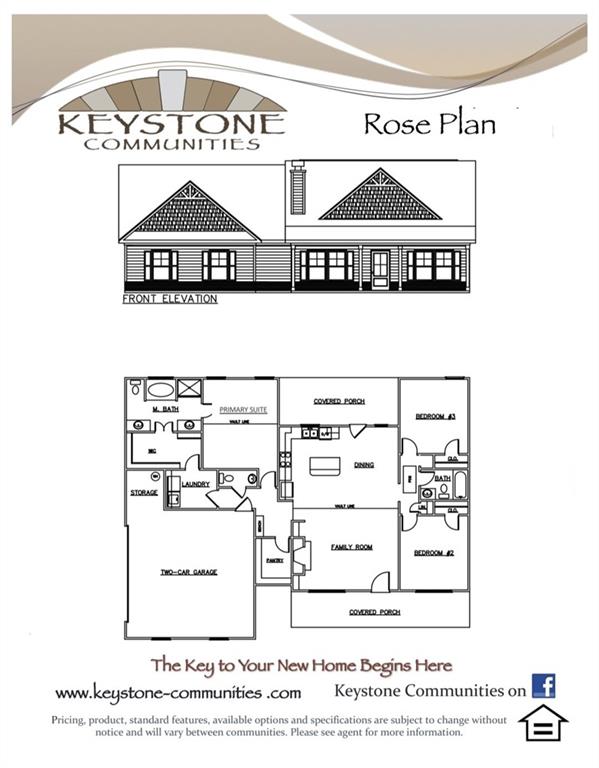 Welcome to your dream home! This stunning new construction 3 bedroom, 2 bath ranch is perfectly situated on a spacious 0.55 acre corner lot, offering both privacy and room to grow. Step inside and experience modern elegance with an open-concept floorplan, ideal for effortless living and entertaining. The heart of the home boasts crisp white cabinets and gleaming granite countertops, perfectly complemented by durable luxury vinyl plank (LVP) flooring throughout the main areas. Plush carpet in the bedrooms ensures maximum comfort and coziness. Every detail of this home is thoughtfully designed to combine style and functionality, making it the perfect choice for those seeking comfort and contemporary living. Don’t miss the opportunity to make this exceptional property yours! Move-in Ready Built by Keystone Communities