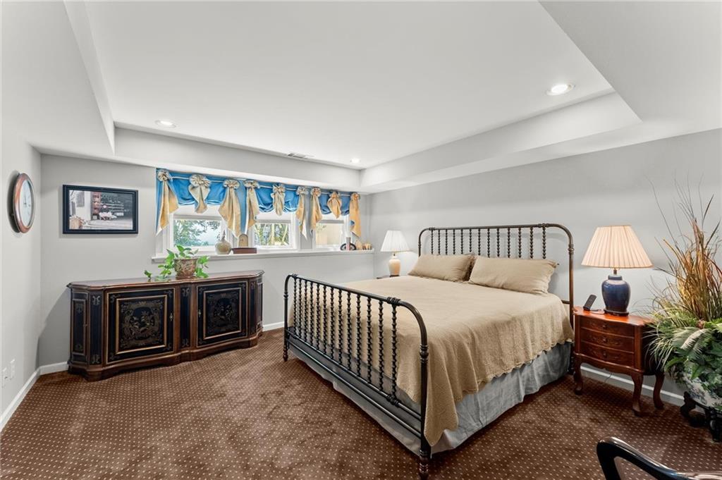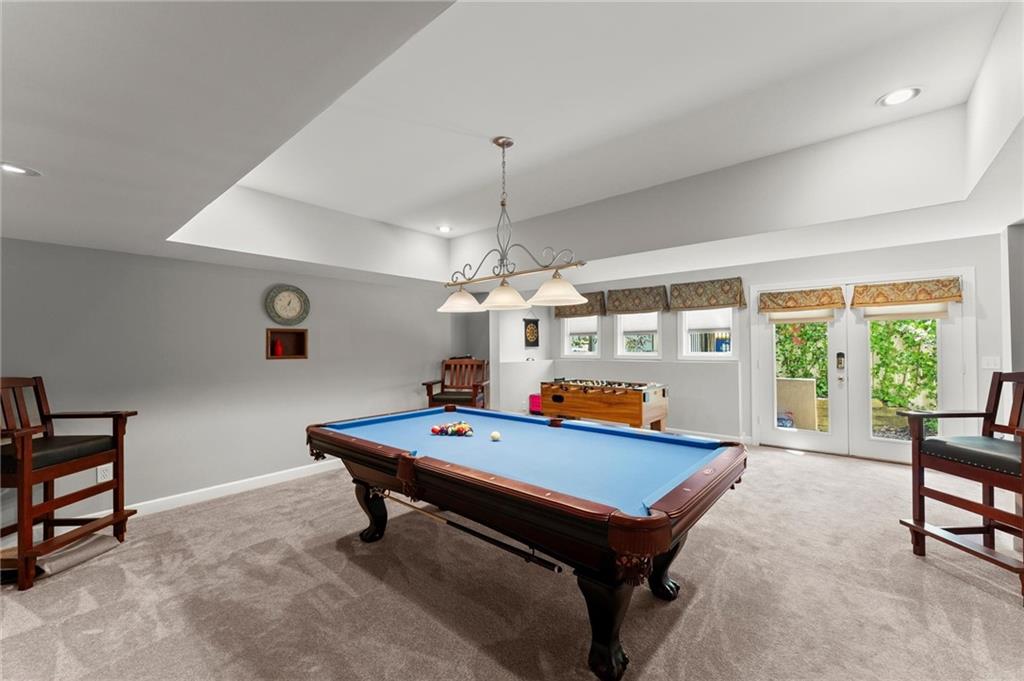 Welcome to luxury living in the highly sought-after Edgemere Estates, where every detail speaks to sophistication and quality in this 5 bedroom, 5 1/2 bath traditional with salt water pool! Admire the exterior stacked stone as you walk into the glorious entry of this HARD COAT stucco. You are immediately greeted with exceptional finishes, including marble flooring, custom trim, hand-curated archways, transom doorways, and elegant custom shutters that set the tone for this exquisite home. Every detail accounted for with great precision in this home. The gourmet kitchen is a chef's dream, featuring high-end custom cabinetry, granite counters, and a stainless apron-front sink. Equipped with a full suite of WOLF luxury appliances, including a Sub-Zero refrigerator, built-in coffee station, convection air toaster oven gas stove top, and double ovens, this kitchen has it all. A bar butler's pantry and an additional serving butler's pantry, complete with a wine refrigerator and separate ice maker, offer ample space for entertaining and storage. Walk-in Laundry room with wash sink and side entry. The kitchen’s adjacent gathering room, with its vaulted ceiling and gas fireplace, is the perfect space to unwind. French doors lead you to the serene outdoors. This home boasts of a stunning two-story great room with custom built-in cabinetry, Sonos surround sound, and another gas fireplace. The French doors open to a luxurious covered porch, perfect for relaxing and enjoying the serene outdoor space, which includes a gorgeous SALTWATER POOL, a private garden sanctuary, and an outdoor kitchen featuring a built-in BULL grill and griddle, as well as a large Green Egg. For added convenience, there's even an outdoor shower with hot/cold water. The knotted pine hand-curated sitting room/office is a true retreat, featuring built-in cabinetry, a gas fireplace, and a coffered ceiling. The expansive primary suite, located on the main level, offers a tranquil retreat with a tray ceiling and French doors that lead to a serene back deck. The large primary bath boasts his-and-her sinks, a jetted sunken tub, an arched ceiling, a water closet, and heated floors. The custom-built primary closet by Quality Closets provides ample storage and organization. Upstairs, a winding staircase leads to three additional bedrooms, including one en-suite and another Jack-and-Jill. The first bedroom is spacious with a lovely bay window, a roomy closet, and its own bathroom sink and linen closet. The adjoining bedroom features a special window seat inlet, adding a charming touch. The third bedroom is an en-suite with a spacious closet and a lovely, neutral bathroom. This level also includes a walk-in attic with second level storage. Don't miss it. Convenient back staircase leading to main level kitchen and gathering room. Downstairs, the fun continues in walk-out basement, a spacious wonderland that includes a bar kitchenette with a wine fridge, granite counters, a bar sink, microwave, and pendant lighting, all overlooking the expansive living area with built-in shelves. This level also features a king-size bedroom, a full bath, a mirrored workout room with interlocking flooring, and a game room. Additionally, there’s a versatile flex space with tons of storage, including a cedar closet and an impressive workroom perfect for all your projects. This home is equipped with three HVAC units, a humidifier on the main floor, a new Honeywell thermostat, a Ring doorbell, and front yard cameras for added security. The newer driveway and windows, along with lovely hardwoods throughout, enhance the home’s appeal. A whole-house Culligan water filtration system ensures pure water at every turn, while the garage features an epoxy floor and remote door access. With so many upgrades and thoughtful details throughout, this home has been impeccably cared for and is nothing short of spectacular. Experience luxury at its finest in every corner of this stunning property!