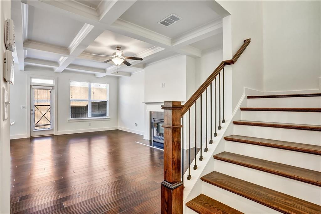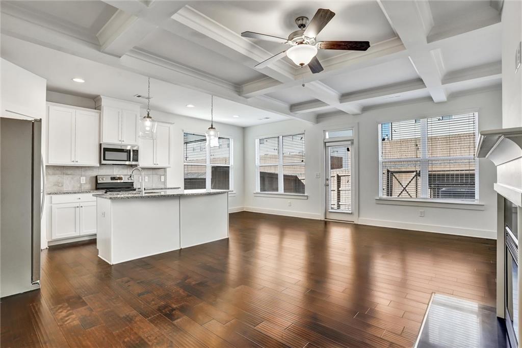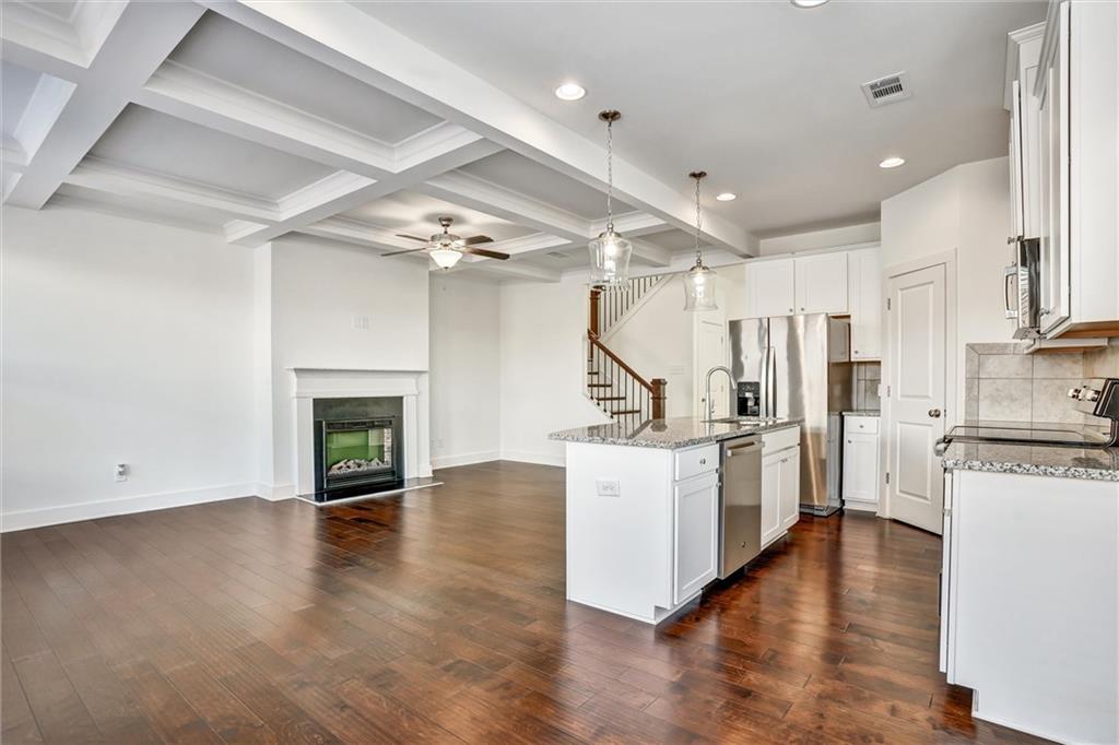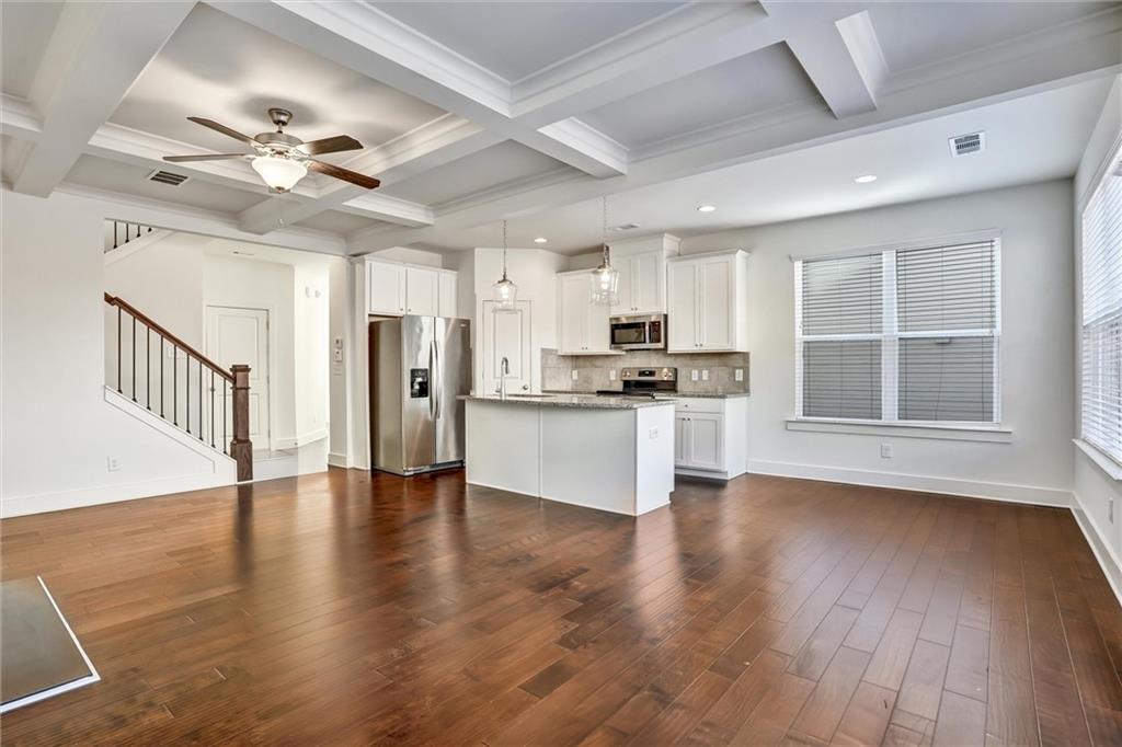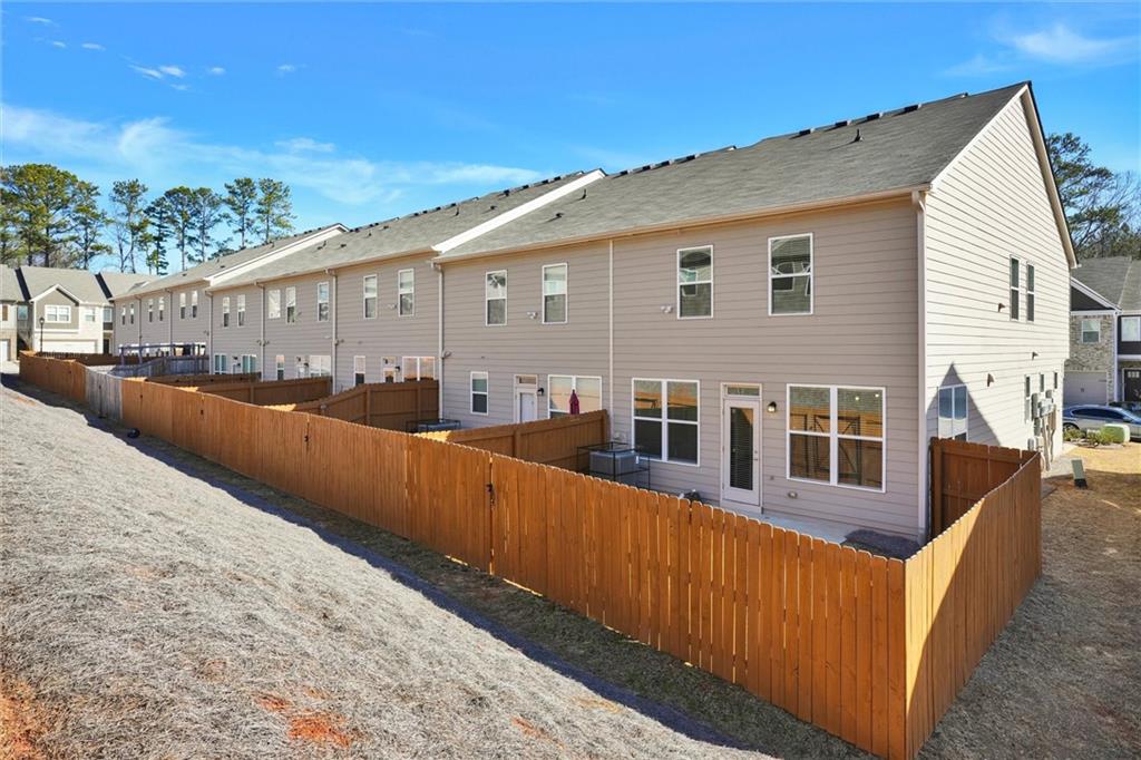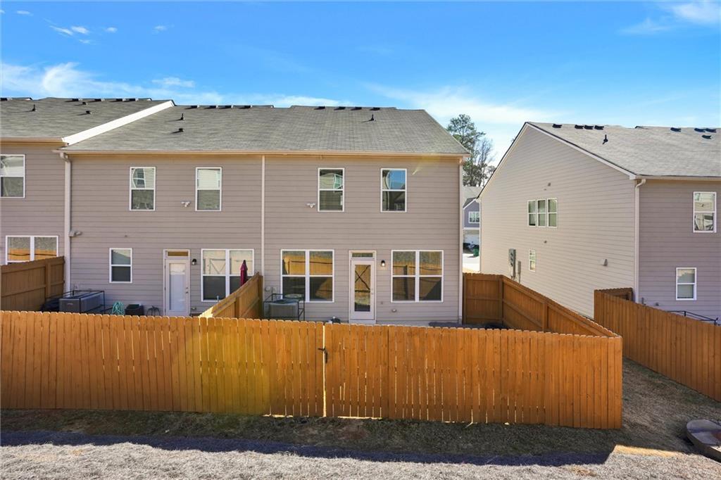 Amazing find, LIKE NEW!! Enjoy abundant natural light in this stunning 3-bedroom, 2.5-bath END UNIT townhome in Lithonia. The open-concept main level features gleaming hardwood floors and a stylish kitchen with granite countertops, white cabinetry, silver accents and stainless steel appliances, including a side-by-side refrigerator. Upstairs, a spacious loft offers the flexibility to be a second living area, home office, or play space. The primary suite boasts a walk-in closet, double vanity with quartz countertops, and a luxurious bath with a separate tub and shower. Two additional generous bedrooms provide ample space and a laundry room, including a washer and dryer. Plush carpeting enhances the upper level’s comfort. Outside, a fully fenced yard is perfect for pets, with lawn care conveniently handled by the HOA. A two-car garage and additional driveway parking add ease to everyday living. Situated in a vibrant community near shopping, grocery stores, and I-20, this townhome offers both convenience and comfort. Don’t miss this fantastic opportunity! Also perfect for investors, as community allows rentals