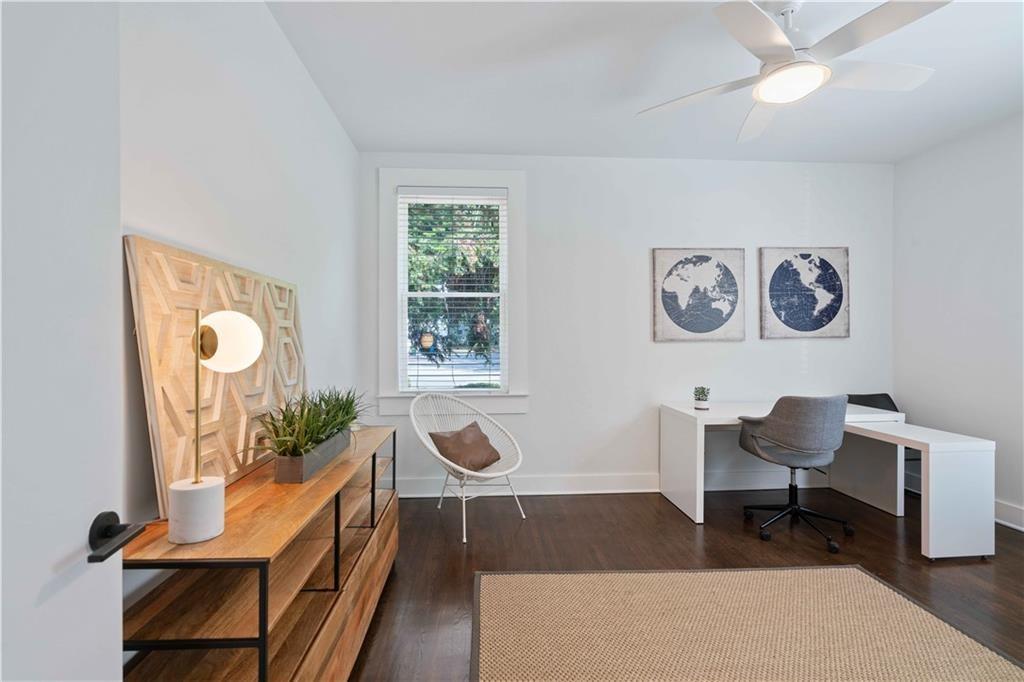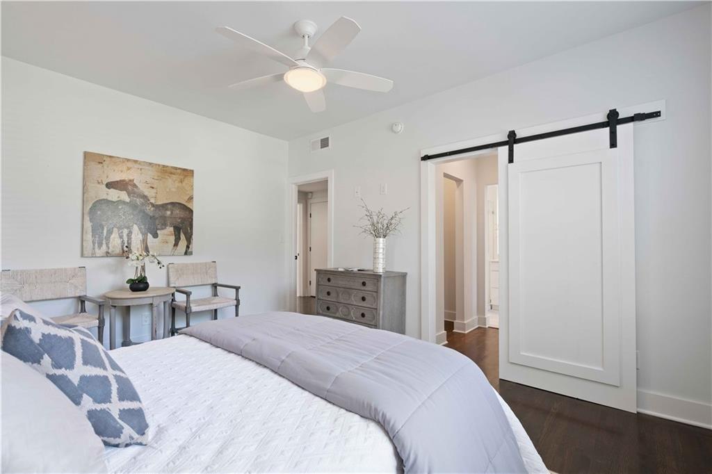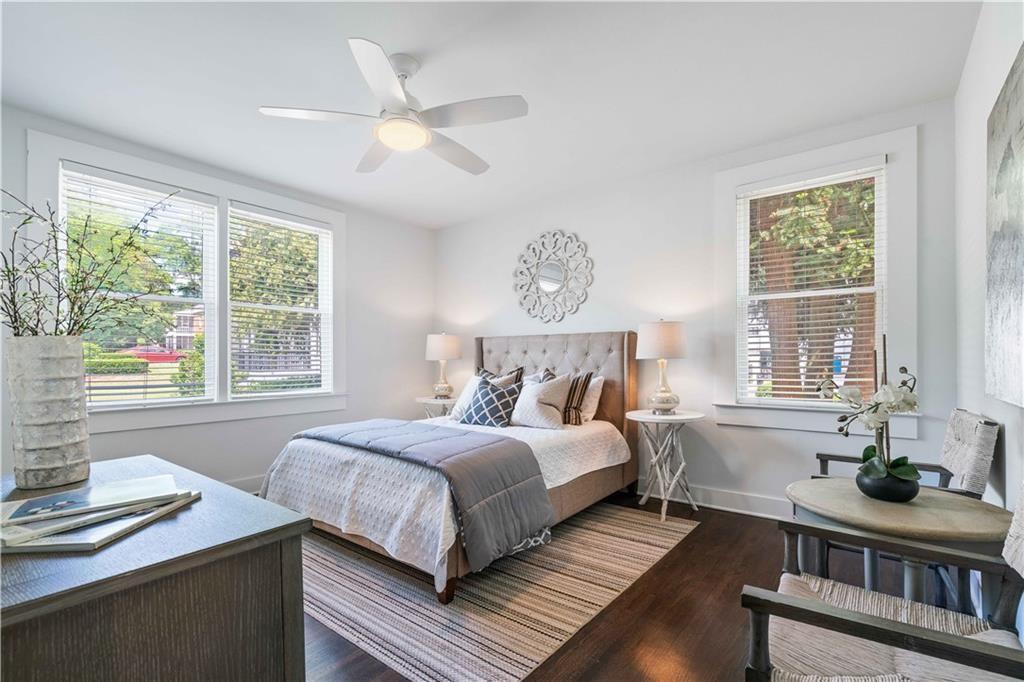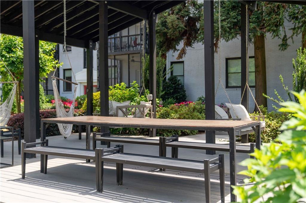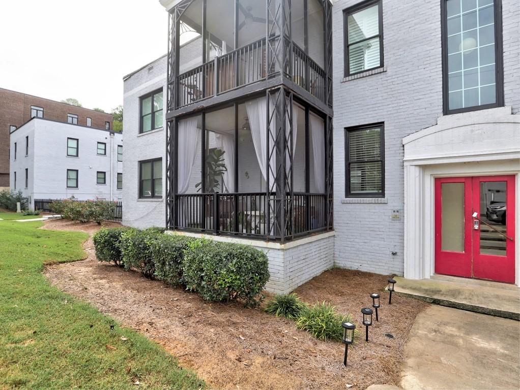 Sophisticated, executive living in prime south Buckhead location! This home will satisfy both professional profile as well as bohemian spirit buyer. The 2 bedroom, 2 bath home has a great master suite with a secondary bedroom that would serve well as an office as well. The floor plan lends itself to a room mate solution if so desired. This pied-a-terre in Atlanta has been customized and upgraded with high quality design accents, i.e. tough to find tiles for focal point backsplash to highlight the chef's gas range, special select paint colors, rich millworks, unique lighting throughout, custom bathrooms, and gorgeous fixtures. Rich looking solid hardwood floors have been stained to the current preferences & run throughout this elegant home seamlessly connecting all spaces. The open plan great room flows into the dining space & gourmet kitchen. Timeless white cabinets, quartz countertops, designer tile backsplash, and stainless steel appliances stand out as you enter this city home to cherish. The hidden pantry is a delightful custom perk! Alternatively, this exceptional home would also be ideal for roommates or work from home situations as this split bedroom floor plan is hard to beat! The in-unit laundry completes the functionality of this gem of a home.This corner unit home sparkles with natural light & provides for a great retreat in your own screened-in back porch overlooking a serene setting while in a bustling city like Atlanta. Also, the dream of two assigned parking spaces comes true here and now - what a wow for city living! Guests will be welcomed by ample, easy to find street parking in front of the building. Outside, the fenced courtyard is an ideal backdrop for community gatherings around the BBQ grills or playing fetch with man's best friend beneath the large shade tree. This recently converted condo community blends historic charm and modern comfort and offers assigned parking, lots of green space and amenities including a community fire pit, fitness gym, bike storage, and recreation room with ping pong! The proximity to Midtown's cultural hotspots, such as the High Museum of Art, Piedmont Park, and the Fox Theatre, combined with Buckhead's renowned business district and luxurious amenities, creates a perfect balance of work and play. Commuting is a breeze with easy access to major highways and public transportation, allowing you to explore the city effortlessly.You cannot beat this location; boasting a high Walk Score with close proximity to neighborhood eateries, top-tier shopping, and the Northside Beltline Trail yet tucked away on a quiet dead-end street.