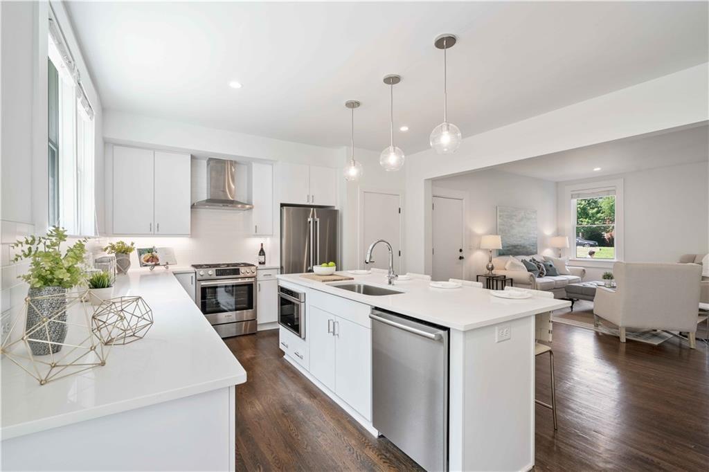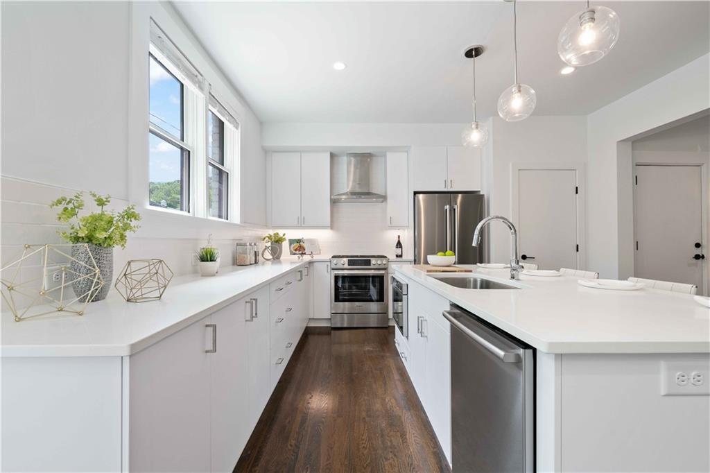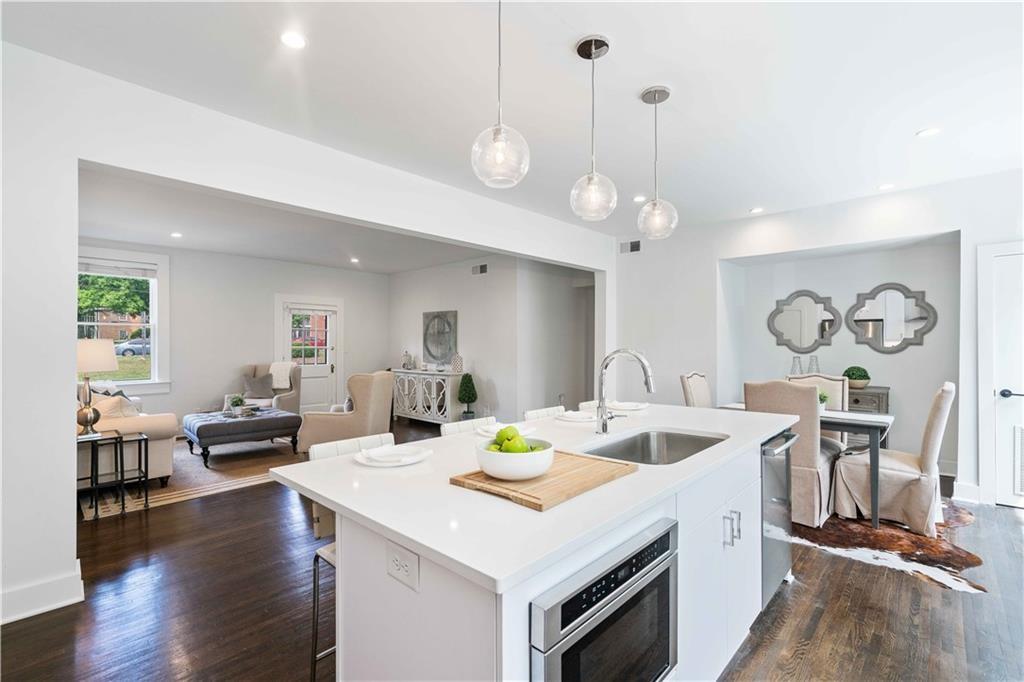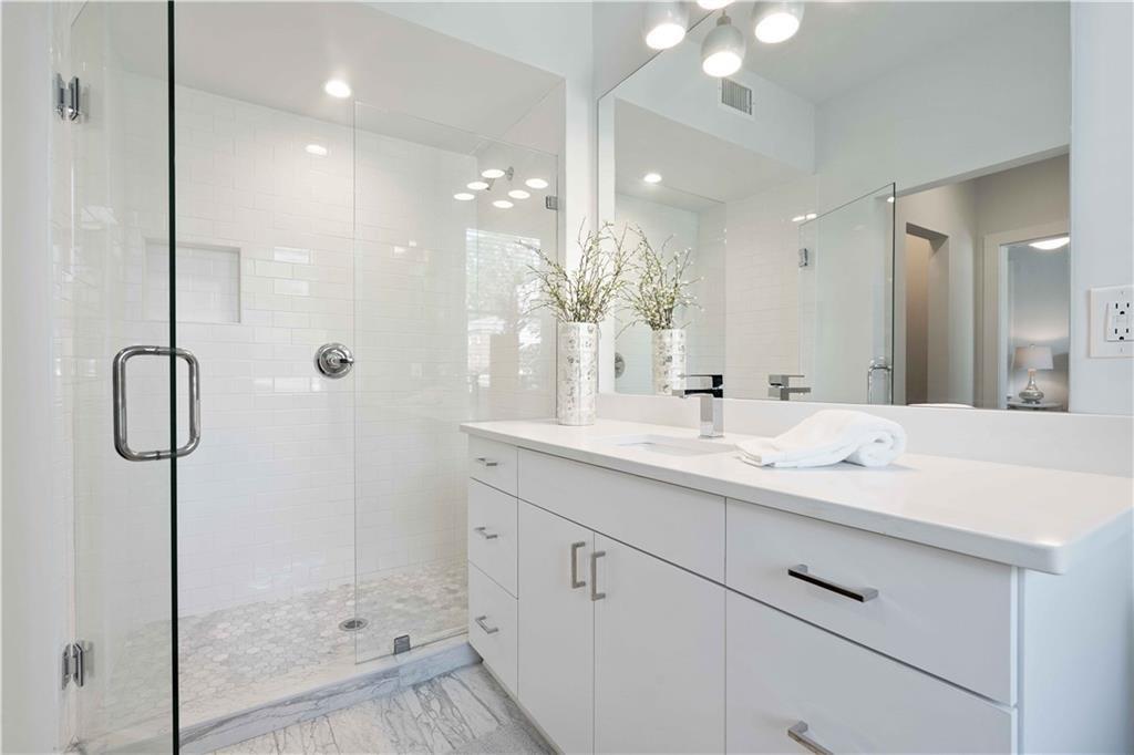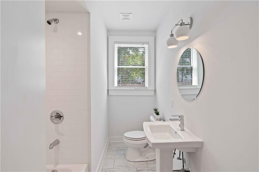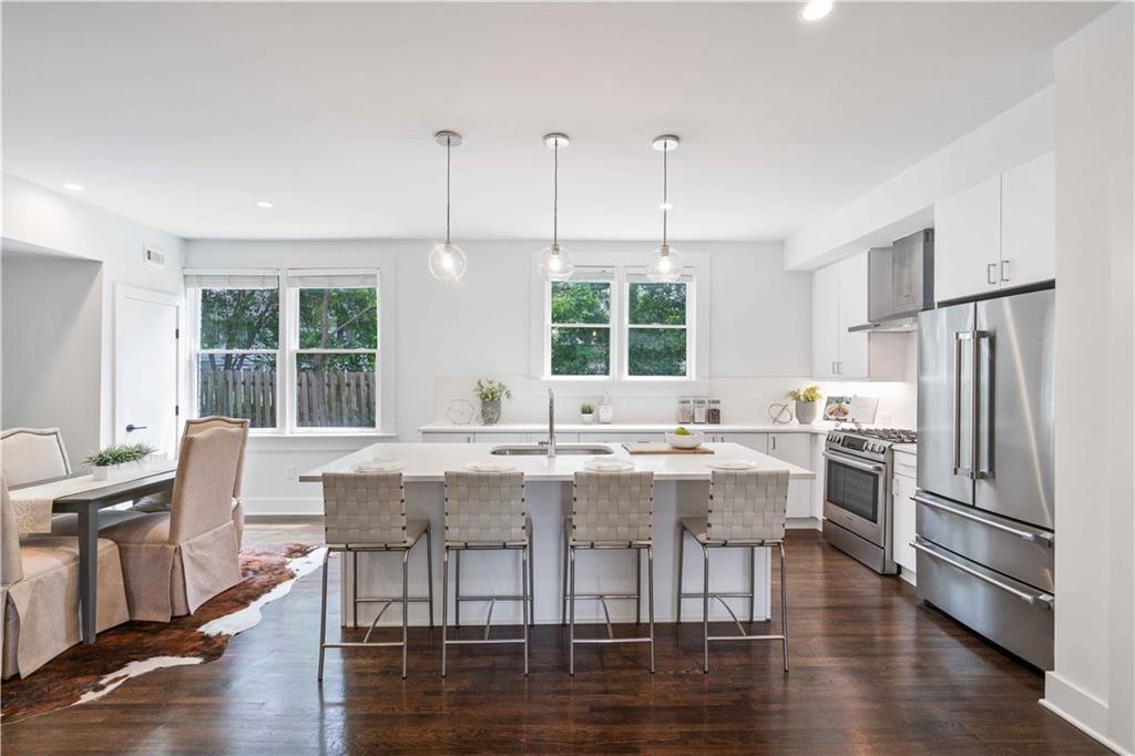 Sophisticated, executive living in prime south Buckhead location! This home will satisfy both professional profile as well as bohemian spirit buyer. The 2 bedroom, 2 bath home has a great master suite with a secondary bedroom that would serve well as an office as well. The floor plan lends itself to a room mate solution if so desired. This pied-a-terre in Atlanta has been customized and upgraded with high quality design accents, i.e. tough to find tiles for focal point backsplash to highlight the chef's gas range, special select paint colors, rich millworks, unique lighting throughout, custom bathrooms, and gorgeous fixtures. Rich looking solid hardwood floors have been stained to the current preferences & run throughout this elegant home seamlessly connecting all spaces. The open plan great room flows into the dining space & gourmet kitchen. Timeless white cabinets, quartz countertops, designer tile backsplash, and stainless steel appliances stand out as you enter this city home to cherish. The hidden pantry is a delightful custom perk! Alternatively, this exceptional home would also be ideal for roommates or work from home situations as this split bedroom floor plan is hard to beat! The in-unit laundry completes the functionality of this gem of a home.This corner unit home sparkles with natural light & provides for a great retreat in your own screened-in back porch overlooking a serene setting while in a bustling city like Atlanta. Also, the dream of two assigned parking spaces comes true here and now - what a wow for city living! Guests will be welcomed by ample, easy to find street parking in front of the building. Outside, the fenced courtyard is an ideal backdrop for community gatherings around the BBQ grills or playing fetch with man's best friend beneath the large shade tree. This recently converted condo community blends historic charm and modern comfort and offers assigned parking, lots of green space and amenities including a community fire pit, fitness gym, bike storage, and recreation room with ping pong! The proximity to Midtown's cultural hotspots, such as the High Museum of Art, Piedmont Park, and the Fox Theatre, combined with Buckhead's renowned business district and luxurious amenities, creates a perfect balance of work and play. Commuting is a breeze with easy access to major highways and public transportation, allowing you to explore the city effortlessly.You cannot beat this location; boasting a high Walk Score with close proximity to neighborhood eateries, top-tier shopping, and the Northside Beltline Trail yet tucked away on a quiet dead-end street.