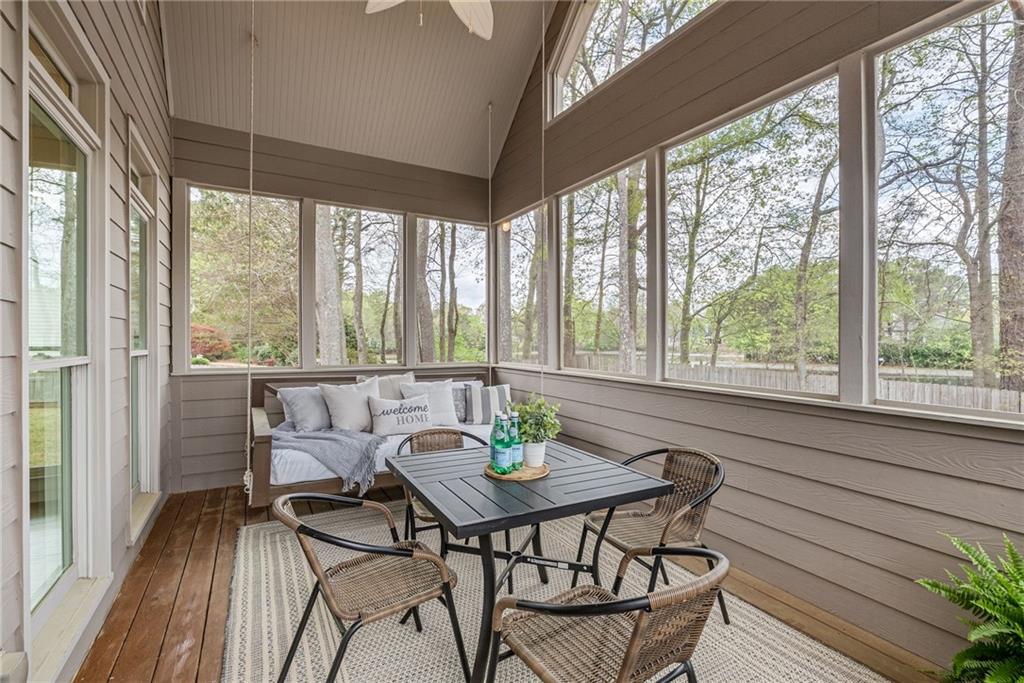 Welcome to this extraordinary home in the Polo Golf and Country Club! From the moment you step inside, you are greeted by soaring ceilings and an abundance of natural light, creating an inviting and spacious ambiance. To the right, a private office provides the perfect workspace, while to the left, a generously sized dining room is ready for hosting gatherings. The completely transformed kitchen is a showstopper, featuring beautiful quartz countertops, ample storage, and a butcher block island, perfect for additional seating and serving. This open-concept design flows effortlessly into the peaked breakfast area and the two-story living room, where expansive windows showcase stunning views, creating a warm and welcoming atmosphere. Step outside to your screened-in porch with a cozy swing and the perfect spot to relax with your morning coffee. The adjoining deck extends your outdoor living space, perfect for entertaining. Enjoy the huge fenced in backyard with an in ground trampoline, fire pit and the perfect level area to create your dream outdoor setting. The primary suite on the main level is a true retreat, featuring dual walk-in closets, separate vanities, and a soaking tub. As you make your way upstairs, you will find three oversized secondary bedrooms with walk in closets and two full baths. The finished basement offers an exceptional extension of the home, complete with a surround sound theater, additional gathering space, a guest bedroom and bath, gym, and plenty of storage space. This home has been meticulously maintained with all new windows installed 2022, new hvac system upstairs installed 2023, newer roof, all new landscaping and so much more. Nestled in a quiet cul-de-sac, this home is just a short walk to the tennis courts, family pool, playground, and Greenway entrance. Zoned for the highly rated schools and a short golf cart ride to Vickery, this is the perfect place to call home!