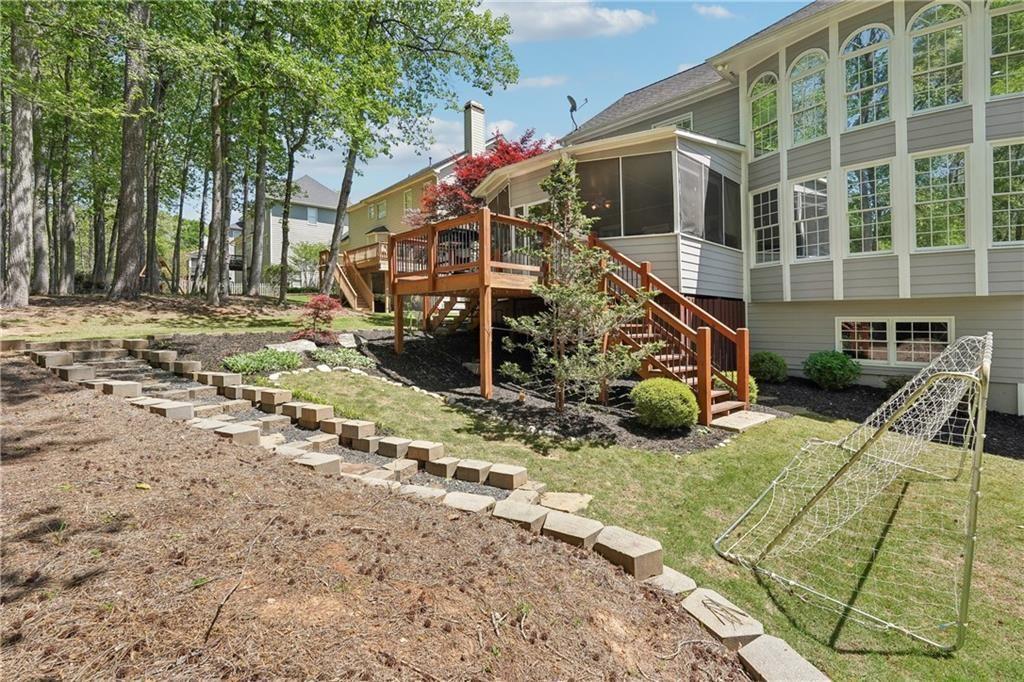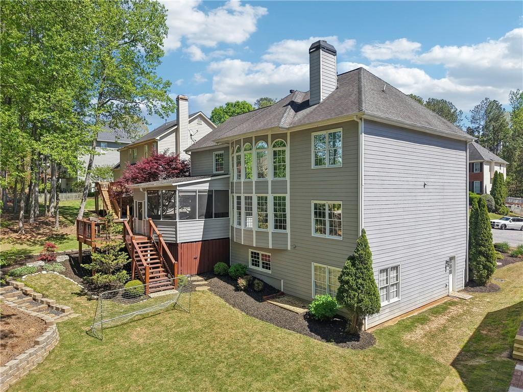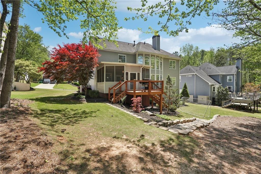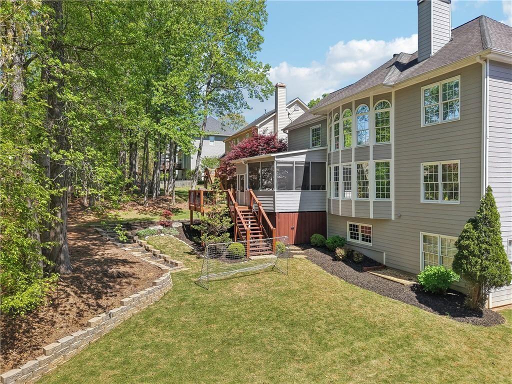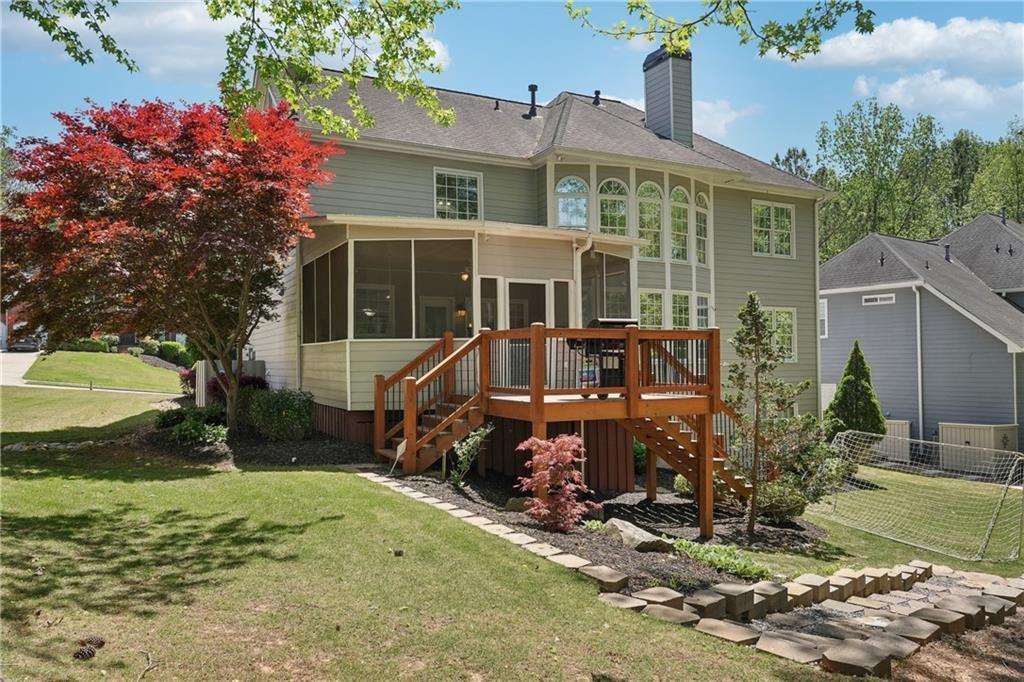 A rare gem in the sought-after Crofton Community and the award-winning North Gwinnett HS District! Step inside and experience pristine elegance-both levels. The two-story foyer welcomes you into the formal dining and living rooms before leading to the grand two-story fireside family room, complete with a stunning bowed wall of windows offering breathtaking views of the wooded backyard. Enjoy in-wall speakers, custom built-ins, and an open-concept flow to the chef's kitchen and breakfast area. The kitchen is a dream, featuring **granite counters, a gas range, vented microwave, abundant cabinet space with pull-out shelving, and a convenient butler's pantry connecting to the formal dining room. Plus, a rare main-level bedroom with a full updated bath-perfect for guests or multi-generational living! Upstairs, retreat to the oversized owner's suite, a private sanctuary with its own fireplace, huge sitting room, renovated bath with separate tub and shower, and a customized walk-in closet. Three additional spacious bedrooms and an updated full bath complete the upper level. The real showstopper is the oversized, covered screened-in porch plus an additional deck for grilling-the ultimate spot to relax, entertain, or watch the fun in the level backyard! Don't forget to explore the scenic wooded area off the cul-de-sac for an added touch of nature. And the location? Unbeatable! Suwanee has been nationally recognized as one of the best places to live-offering the charm of Suwanee City Park, vibrant shops, and fantastic restaurants-just minutes away without the heavy traffic of other areas. This is more than just a house-it's a lifestyle. Don't miss this rare opportunity to call it home!