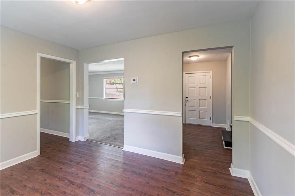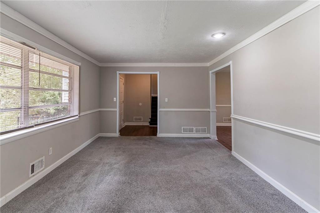 Welcome to this charming 4-bedroom, 2-bathroom split-level home in Decatur! A driveway offers ample parking and leads to a spacious front yard, while the grassy backyard is perfect for outdoor living. Step inside to the main level featuring a welcoming foyer, formal living room with cozy carpet and recessed lighting, a formal dining area, and flow into the kitchen with white cabinets and black appliances. The living room offers a brick fireplace and direct access to the backyard. Upstairs you'll find two secondary bedrooms with attic access, a full bath with tub/shower combo, single vanity, and linen closet. The lower level includes two additional bedrooms, another full bath, and access to a crawl space with washer/dryer hookups and water heater. No garage, but plenty of space and potential throughout! Book your tour today!