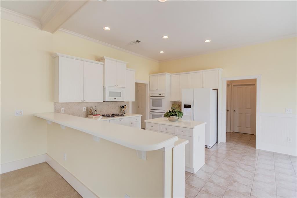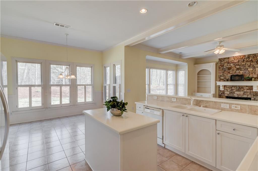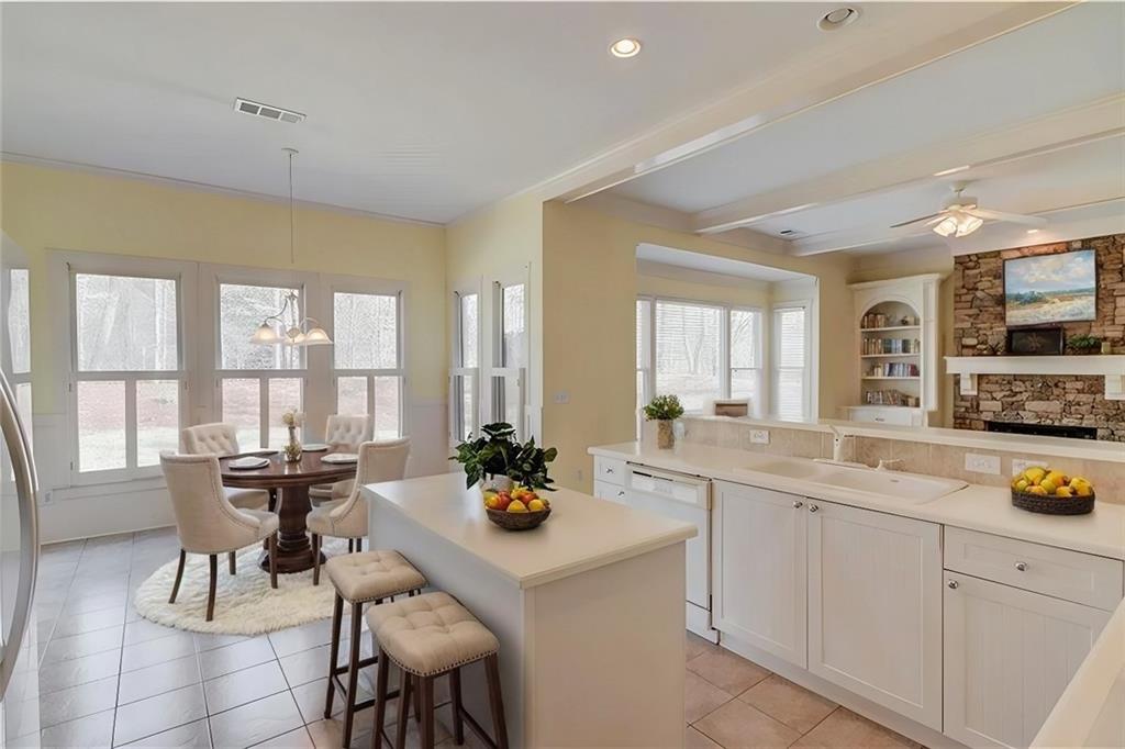 - KitchenBreakfast Bar, Cabinets White, Eat-in Kitchen, Kitchen Island, Other Surface Counters, Pantry, View to Family Room