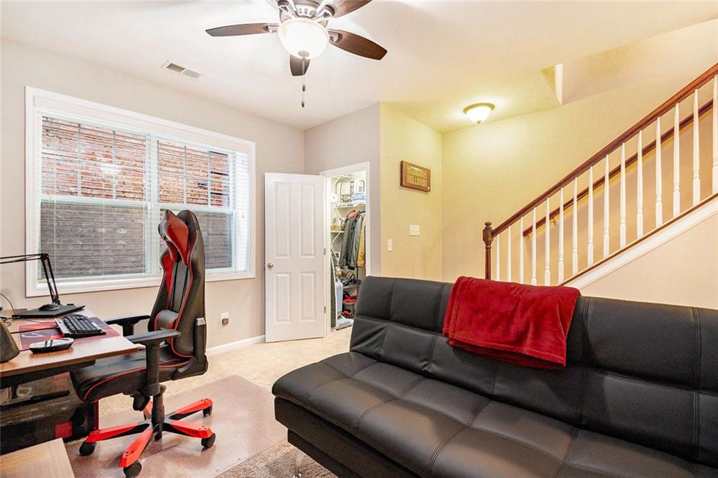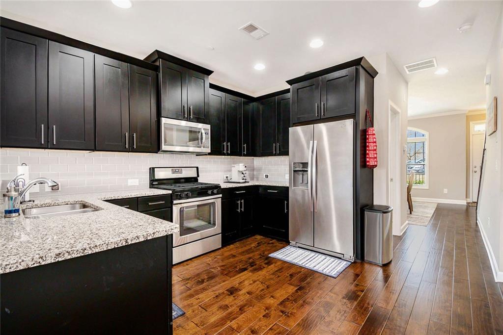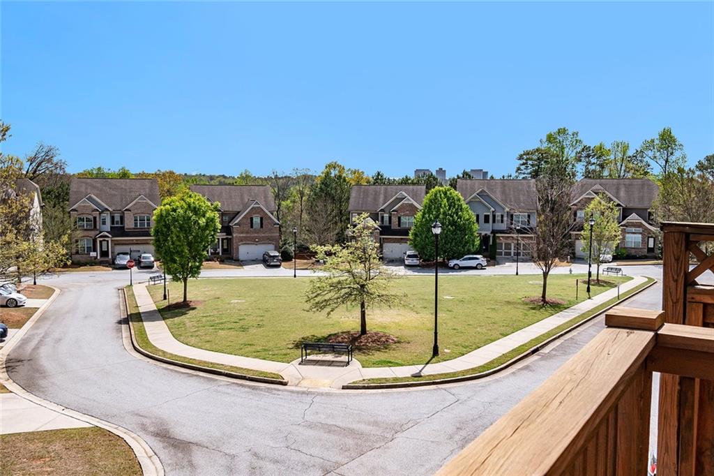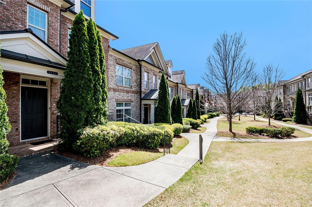Heart of Sandy Spring Townhome! Best location in neighborhood with green space in front and back. Long range city views off the back deck. Guest parking right out front. Safe, friendly, gated community. Easy access to Pool, gym and dog walk area. Conveniently located near shopping, highways, Sandy Springs City Center, Performing Arts Center. Perimeter Mall, GA400 and 285. The main level features open floor plan with kitchen and family room flowing out to deck. And a separate dining room. Upstairs boasts a split bedroom plan for privacy. The terrace level is perfect for an extra bedroom or office with its own bedroom. The HOA fee includes exterior maintenance such as power washing, painting/staining, termite control and roof.