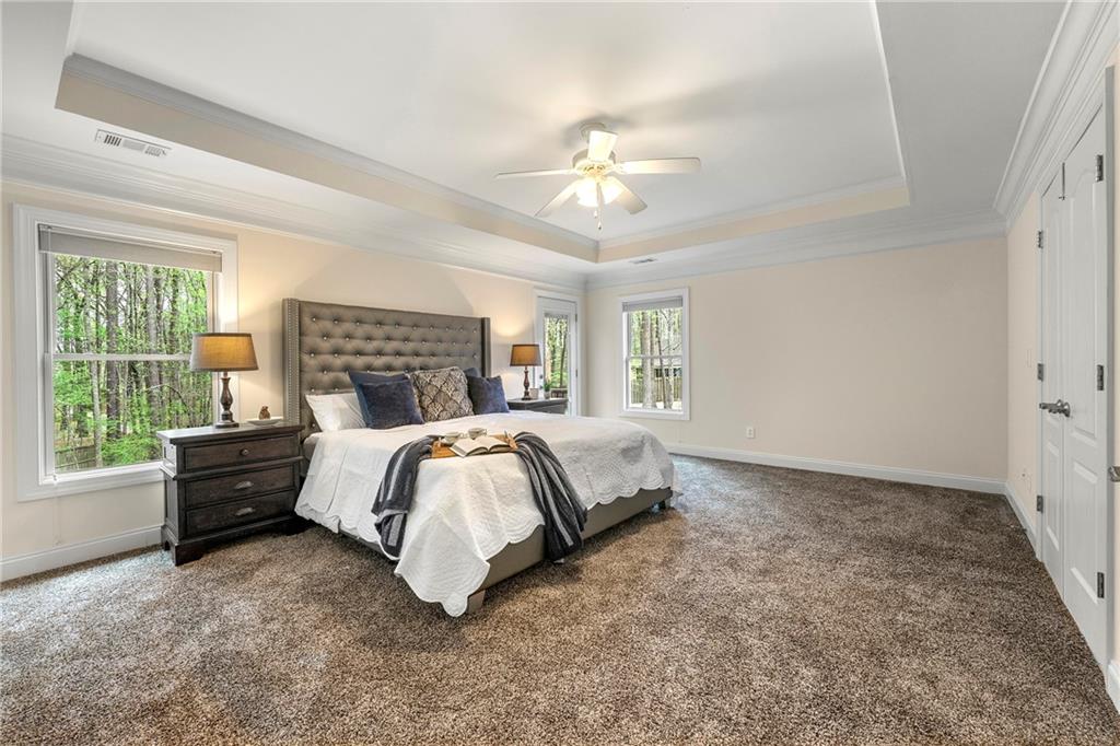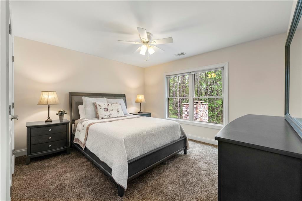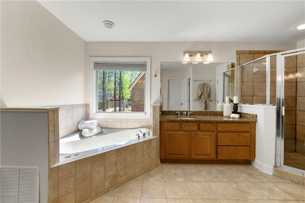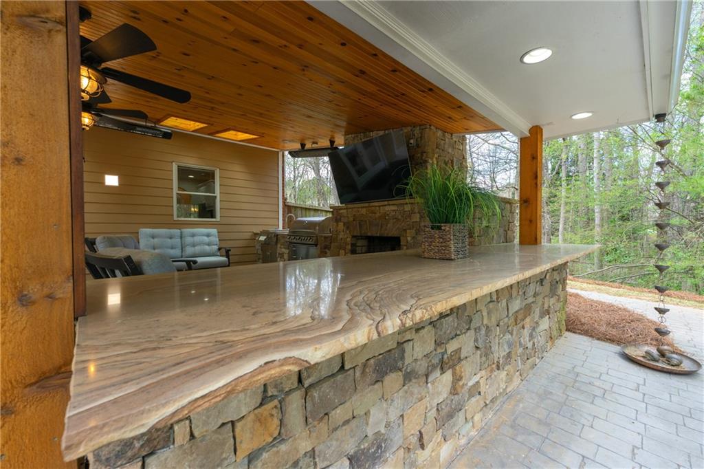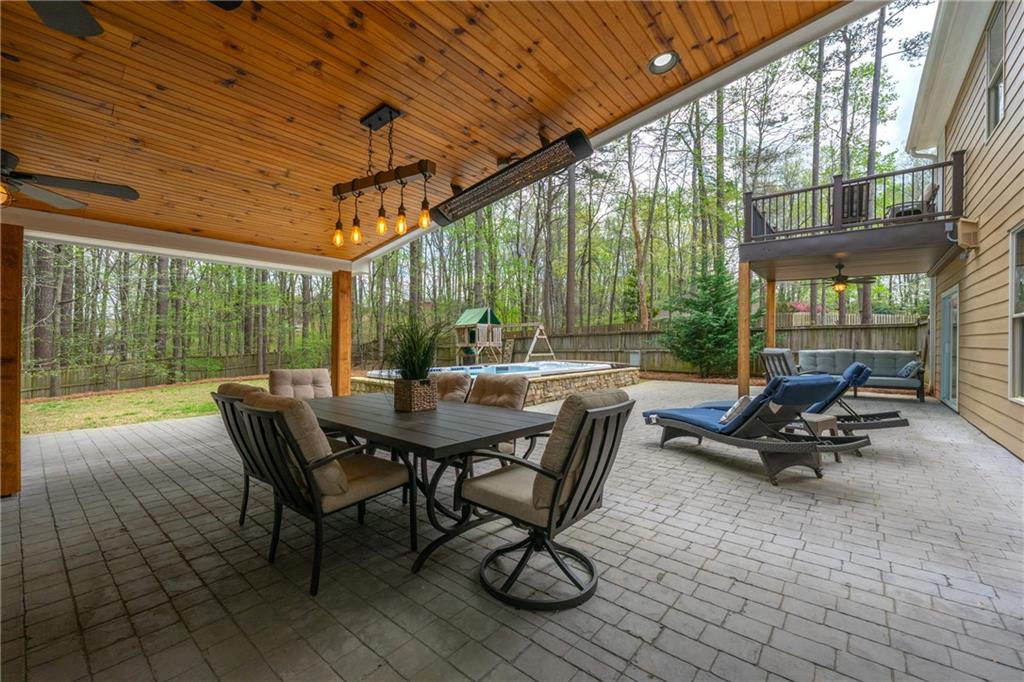 Welcome to Everleigh Estates! This gorgeous traditional home with craftsman touches and backyard oasis is ready for its next owners. Freshly painted and impeccably maintained. Located on a cul de sac, you are greeted by a beautifully landscaped lawn and front porch. As you enter, gleaming dark flooring, dining room and office or playroom. Living room has built in bookshelves and storage. Kitchen features leathered stone countertops, huge island, custom backsplash and stainless appliances. Bedroom and full bathroom on first floor make an excellent space for guests or a private home office. Out the back door you will find a breathtaking backyard space. Complete with covered patio featuring built in grill, mini fridge, and fireplace. Swim spa with hot tub and mounted heaters make this a dream for both summer and winter enjoyment. All overlooking large private backyard. Upstairs are 3 secondary bedrooms, bathroom and loft space. Master bedroom has its own private deck, walk in closet and bathroom with two separate vanities, soaking tub and shower. Fabulously located with easy access to all Marietta has to offer.