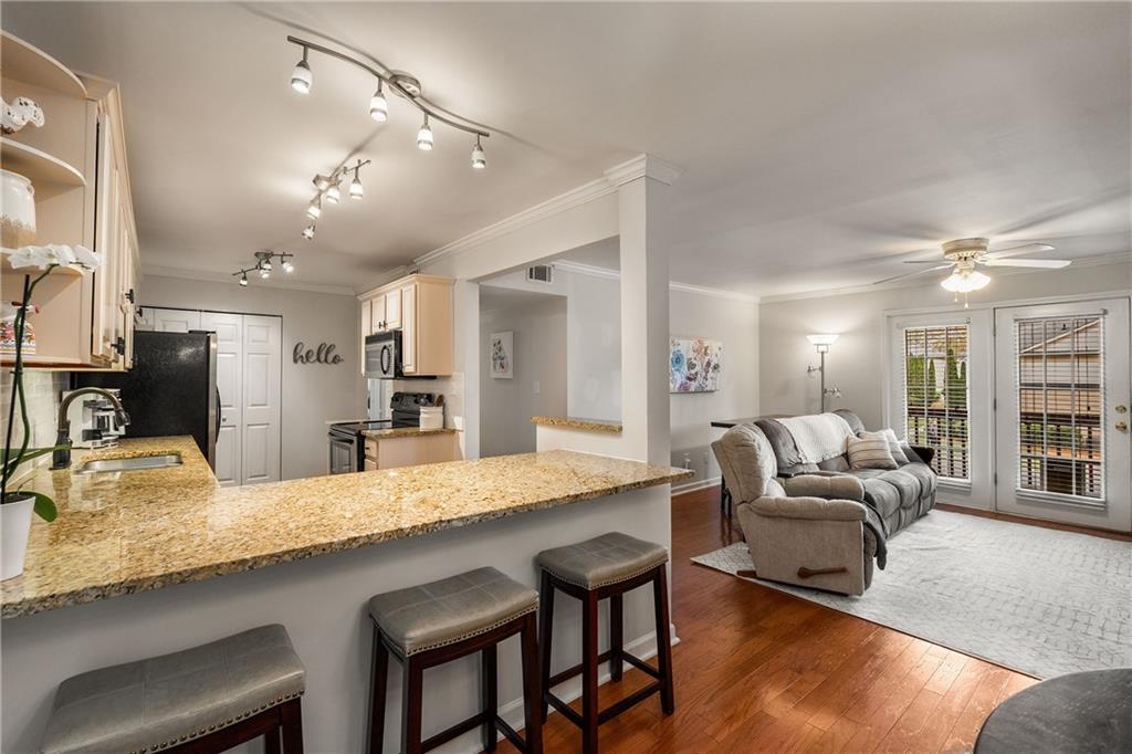 Welcome to this beautifully updated and meticulously maintained condo in a highly sought-after gated community. Boasting an open floor plan that seamlessly connects the living, dining, and kitchen spaces, this home offers both style and function. The spacious living areas are perfect for both relaxed living and entertaining guests. The heart of the home features a recently updated kitchen with charming finishes, providing the ideal setting for preparing meals with ease and style. Both generous-sized bedrooms offer ample space for rest and relaxation, complemented by walk-in closets with exceptional storage solutions. Enjoy the luxury of two recently updated, modern bathrooms designed with both elegance and comfort in mind. For added convenience, the condo comes equipped with in-home laundry, including appliances that will remain for the buyer's enjoyment. Step outside to your large, charming, covered porch; an inviting space to unwind and enjoy the outdoors. With a new HVAC and newer water heater, you can rest assured that this home offers the utmost in comfort and energy efficiency! The affordable HOA is a standout feature, covering internet, water, trash, cable, and exterior so you can enjoy peace of mind with low-maintenance living. Take advantage of the community pool, offering a resort-like experience! Ample parking found just steps from your front door. Conveniently located near shopping, grocery (Trader Joe’s!), dining, parks and easy interstate access! This is more than just a home—it’s a lifestyle. Whether you’re looking for a place to relax or an entertainer’s haven, this condo checks every box. Don’t miss the opportunity to make this exceptional property your own!