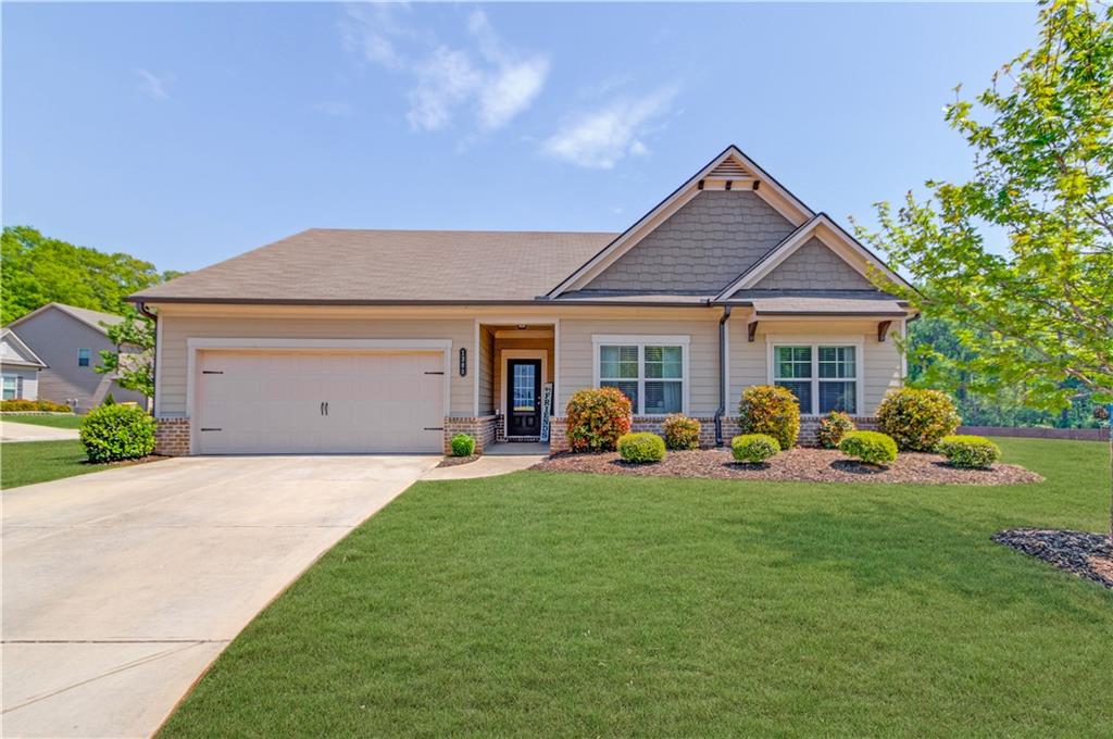 Wow! Adorable ranch located on a great corner lot and adjacent to the neighborhood green space, such a spacious park-like feel! Featuring a great open concept floor plan you will easily fall in love with the easy flow from room to room. The cozy fireside family room is open to the gorgeous kitchen featuring a large island for food prep and casual seating, granite counters, stainless appliances and walk-in pantry. The dining area is light and bright and leads directly outside to the wonderful screened patio! This is such a relaxing area to just unwind with a cup of coffee and enjoy the tranquility of your fenced in yard, while avoiding those pesky mosquitoes in the Summer! The primary bedroom is accented by a beautiful board and batten wall and trey ceilings; creating a dramatic effect. The ensuite bathroom is spacious with a large glass shower, dual vanity and very large walk-in closet. Two additional guest rooms are serviced by a lovely secondary bathroom. A spacious laundry room makes this task easy to handle. Located in desirable Brighton Park featuring a pool, playground and easy access to all that Hoschton has to offer, this home has been lovingly cared for and is ready to go!