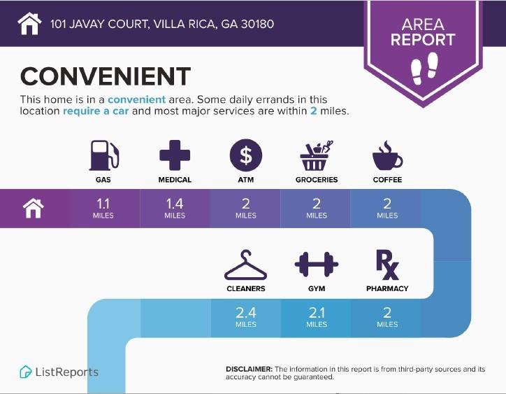 101 Javay Court - Welcome home to this single level, traditional home built in 2002, located in the Hickory Pointe Community of Villa Rica. This move-in ready, 3-bedroom, 2-bathroom home spans over 1880 square feet and boasts an open-concept floor plan filled with natural light, high vaulted ceilings, and beautiful luxury vinyl flooring throughout. The country kitchen serves as the heart of the home, featuring a peninsula with seating, stainless-steel appliances, quartz countertops, and custom cabinetry. The kitchen opens to the family room, dining room and breakfast area, which leads to the back deck with views of the private, fenced backyard. This layout is perfect for everything from cozy dinners to larger gatherings! This home includes the primary suite that offers a luxurious bathroom with a walk-in jetted tub, separate shower, dual vanities, and a large walk-in closet. Additionally, two secondary bedrooms, a full bathroom, and a convenient laundry/mud room. The community offers amenities, including a swimming pools and playgrounds. Its prime location ensures quick access to I20, schools, plenty of shopping and dining, and much more. This home has all the features that will be enjoyed for many years!