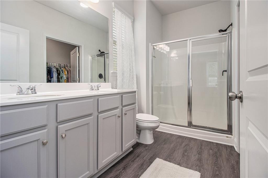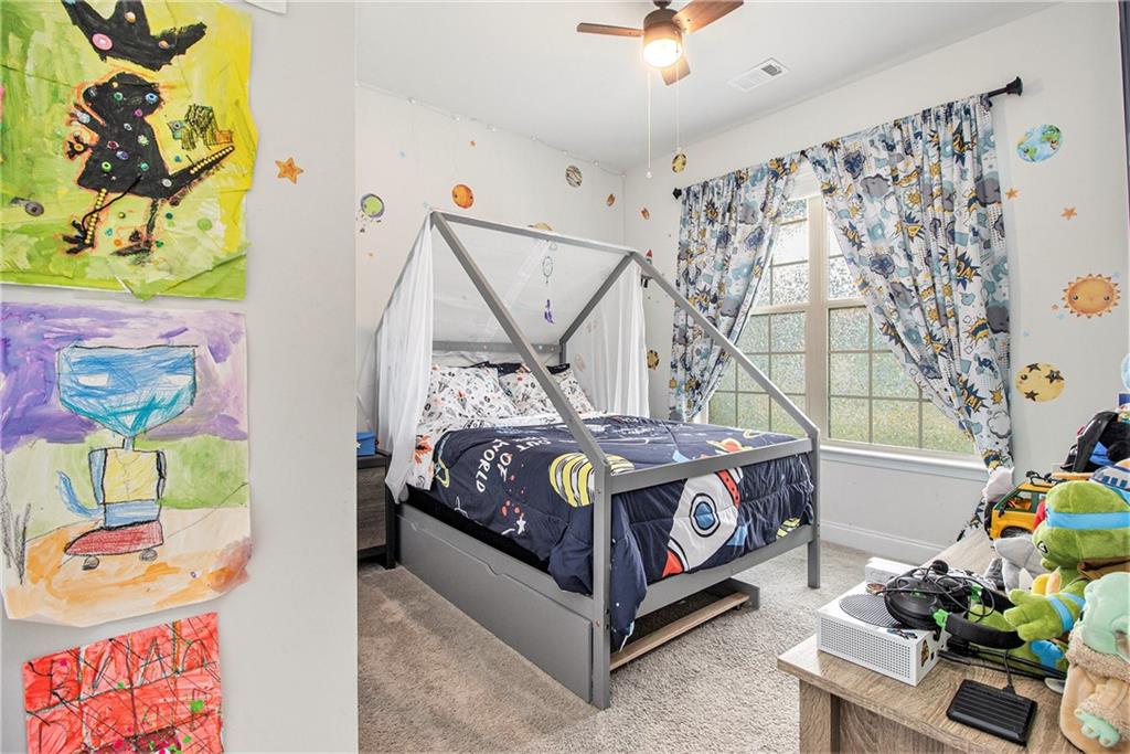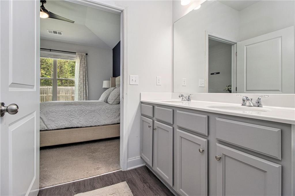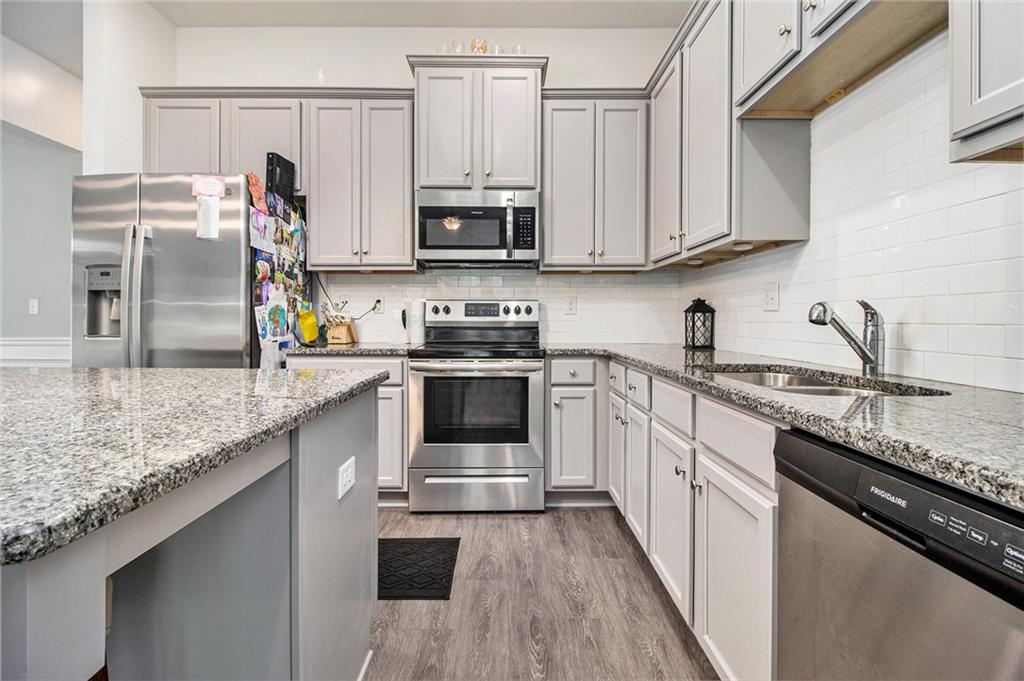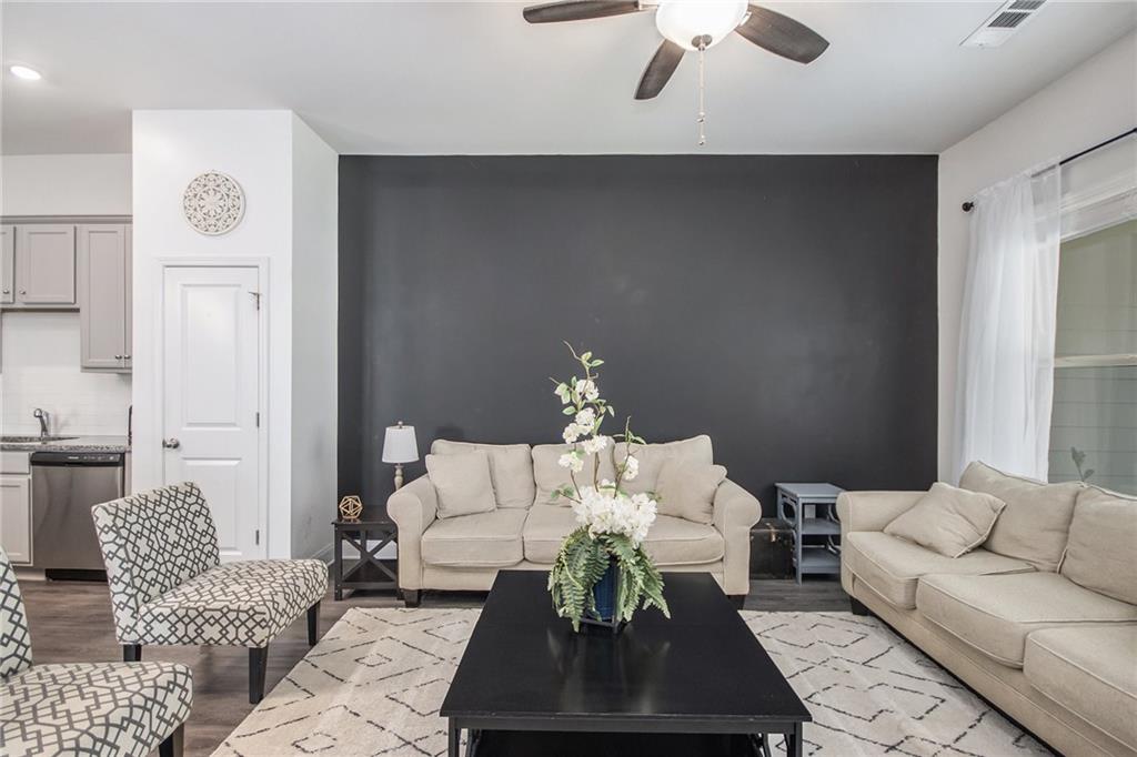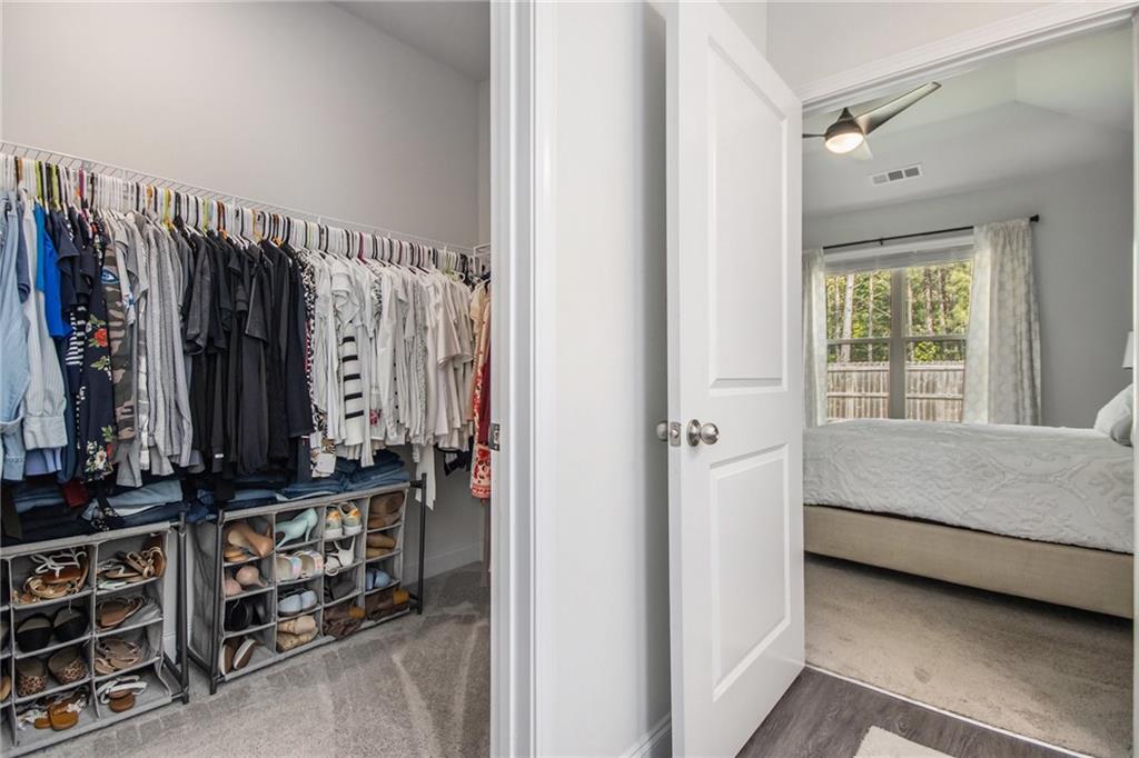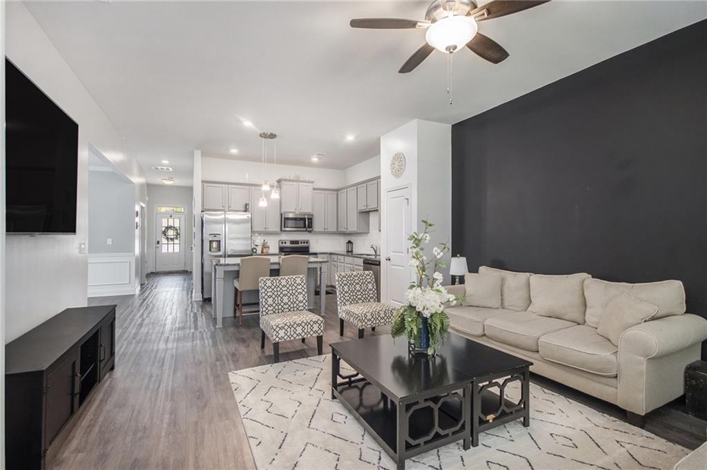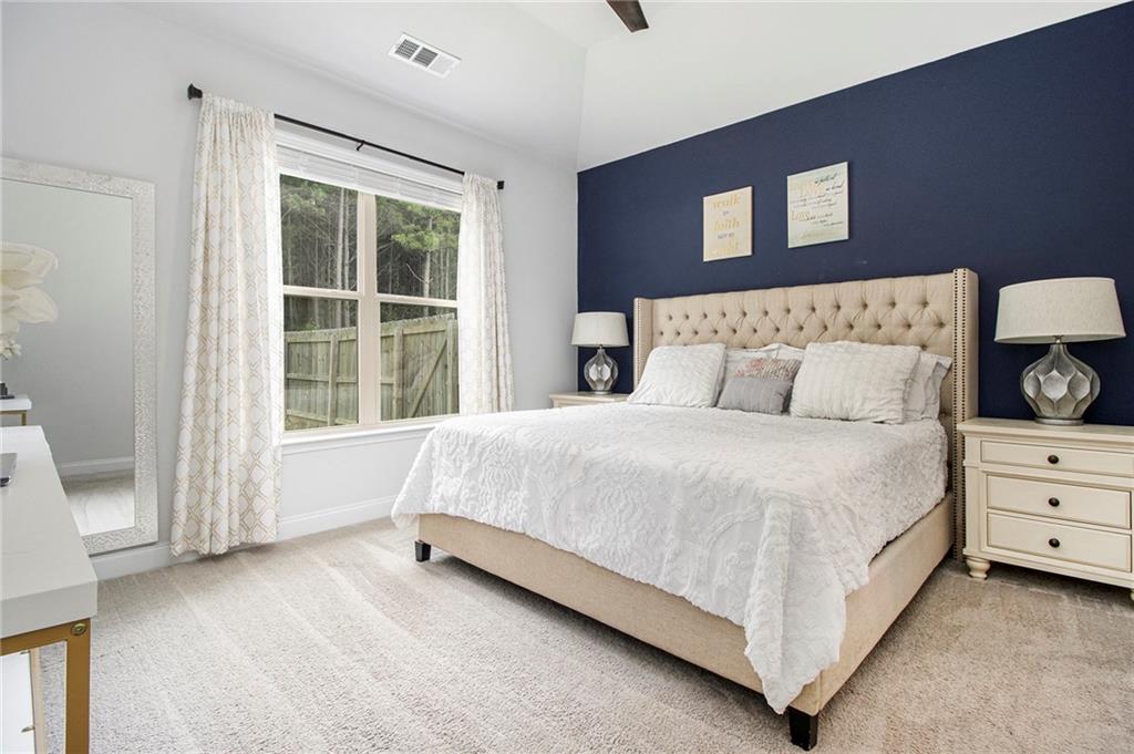 From the moment you step inside, you'll feel right at home in this thoughtfully designed space. The open-concept floor plan seamlessly connects the living, dining, and kitchen areas—ideal for entertaining guests or enjoying everyday comfort. High 9-foot ceilings and durable LVP flooring throughout add a sense of spaciousness and style. The kitchen is a true showstopper, featuring an oversized granite island that's perfect for family meals, casual hangouts, or game nights. With abundant counter space, sleek finishes, and high-end appliances, it's a dream setup for any home chef. This home offers a desirable split-bedroom layout for added privacy. The primary suite is your personal retreat, complete with a double vanity, a luxurious oversized shower, and a huge walk-in closet. Step outside and enjoy quiet mornings on the front porch or unwind in the evenings under your covered back patio. The private, fenced-in yard is perfect for pets, play, or gardening. Located in a charming gated community within walking distance to downtown Villa Rica, you're just minutes from shopping, dining, Plus, you'll have easy access to local parks, the Recreation Center, a splash pad, and Arbor Place Mall—all within a 15-minute drive.