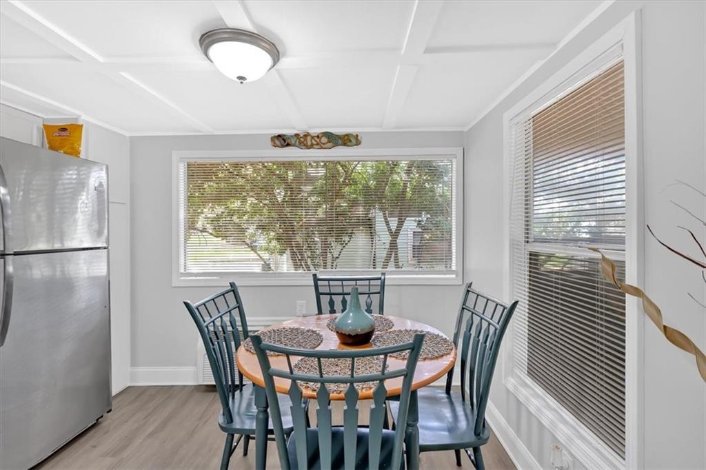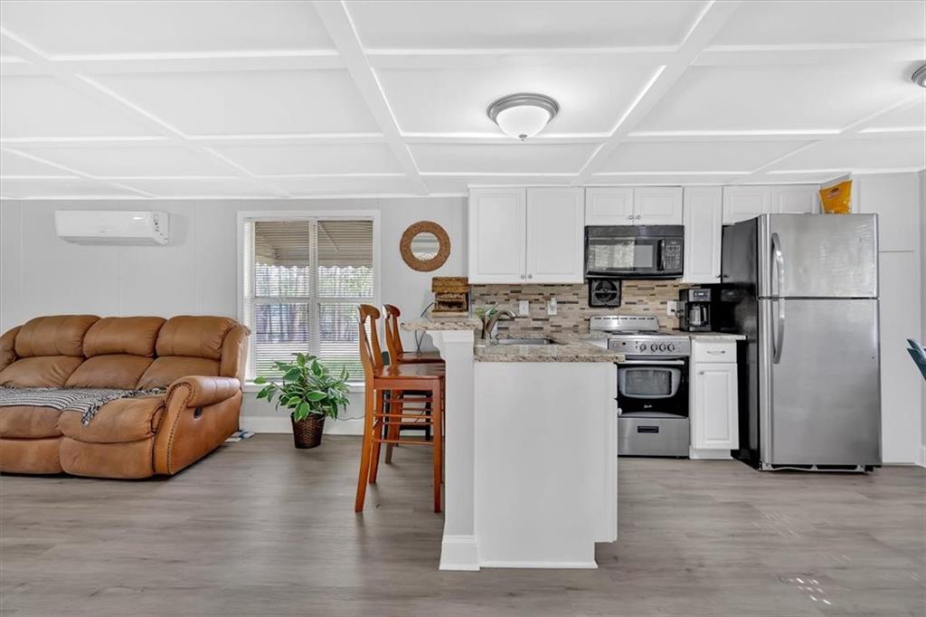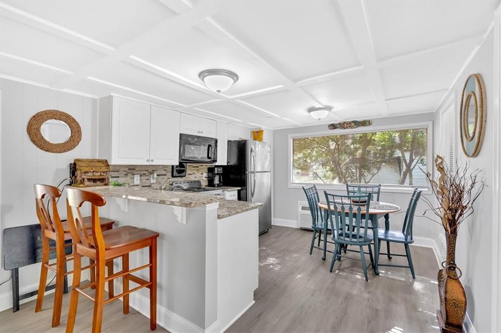 - KitchenBreakfast Bar, Cabinets White, Eat-in Kitchen, Kitchen Island, Pantry, Solid Surface Counters, View to Family Room