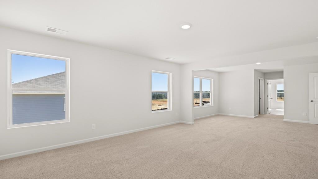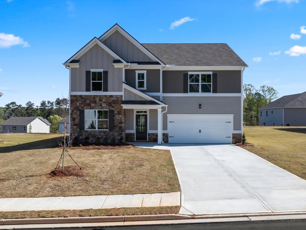Introducing the Halton, at 86 Virgil Street one of our thoughtfully designed new construction homes at Thompson Ridge in Dallas, GA. The Halton plan boasts 5 bedrooms and 3 bathrooms, including a spectacular primary suite, there's no question why this is one of our best-selling plans. A spacious foyer leads you into the home, with access to the stairs, a hallway leading into the living room, and an entryway into the flex room at the front of the home. Through the flex room you'll enter a butler's pantry that acts as a pass-through - especially beneficial if the flex space is used as a dining room -and also provides access to the roomy walk-in pantry. The large kitchen feels boundless with seamless flow into the attached dining area and adjacent living room. A stainless-steel appliance suite, oversized island, and bountiful counterspace make this kitchen a chef's dream. A bedroom and full bathroom round out the main living area, ideal for quests or multi-generational living. Upstairs you'll walk directly into an additional living area at the top of the stairs. To one side, you'll find three secondary bedrooms and a bathroom with double vanity and a linen closet. On the other side, the primary suite sprawls from the front of the home to the back, boasting a roomy bedroom with it's own spacious sitting area, two expansive walk-in closets, and a spa-inspired primary bathroom with double vanity, separate soaking tub and shower, and a water closet. An ample laundry room rounds out the second level. If you value style and practically, this Halton is exactly what you are looking for. Give us a call today at Thompson Ridge to come get your tour of 86 Virgil Street in Dallas, GA!