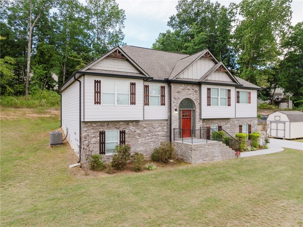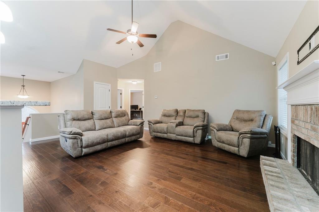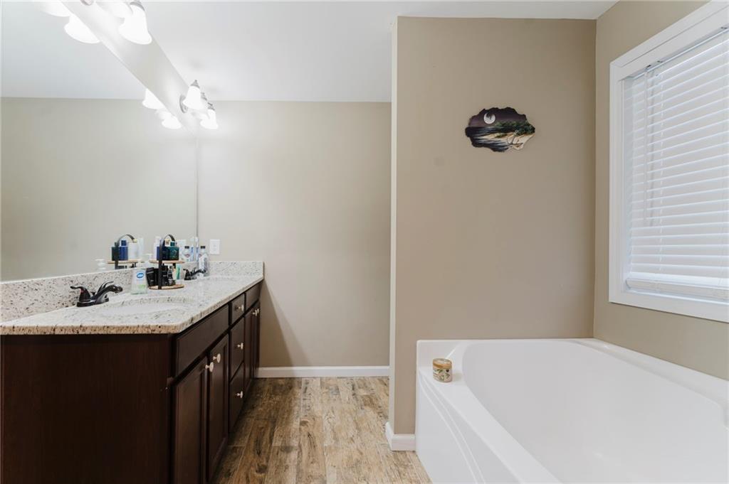 If you're looking for a home that has it all, this one is for you! This well-maintained home has 3 generously sized bedrooms & 2 full bathrooms on the main level with 2 large, finished rooms and additional full bathroom in basement. The great room is cozy and inviting with cathedral ceilings and a fireplace. The open concept offers the perfect flow between the kitchen, dining & living rooms. The kitchen is modern and aesthetically pleasing, offers a well-designed layout, stainless steel appliances, gleaming granite counters and a breakfast area. The primary suite has trey ceilings, a large walk-in closet and a connected full bathroom with walk in shower, soaking tub, double vanity with granite countertop and luxury tile flooring. Other features include beautiful, engineered hardwood flooring, large Cul de sac lot, a separate storage building, 2 car garage and so much more. Don't miss your opportunity to tour this amazing home!!
