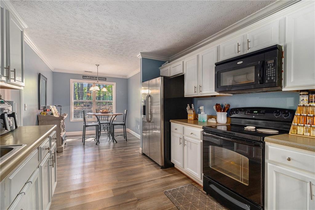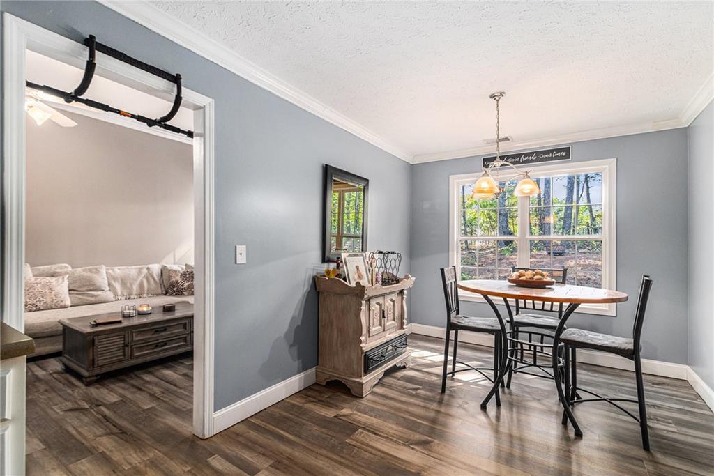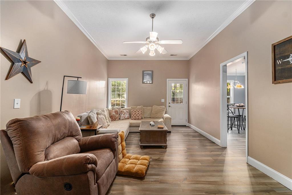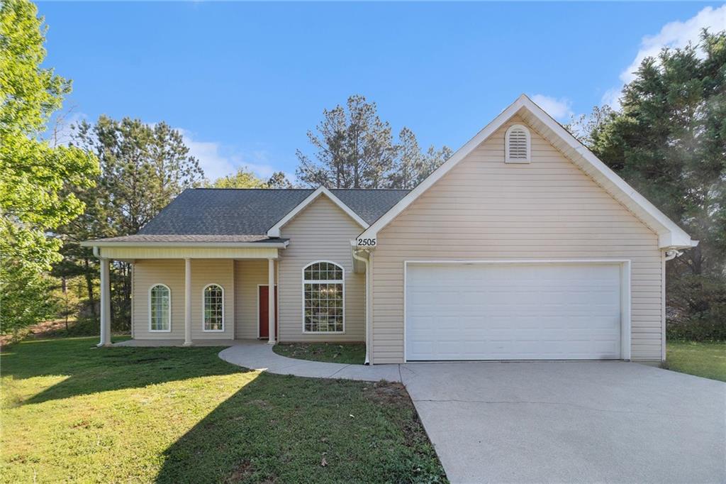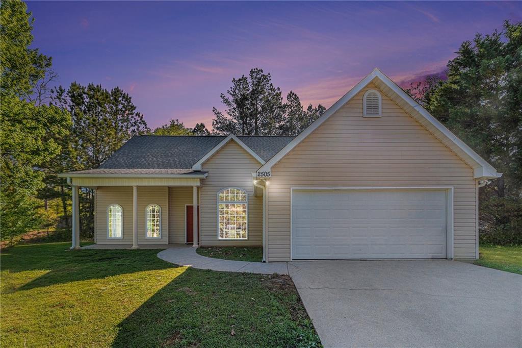 Charming 3-bedroom, 2-bathroom ranch featuring durable LVP flooring throughout the main living areas. The home offers a separate dining room with a large picture window providing beautiful natural light, and a spacious living room with direct access to the backyard. The eat-in kitchen boasts classic white cabinets and a functional layout. Enjoy a split-bedroom floor plan with two guest bedrooms offering ample closet space. The owner’s suite features vaulted ceilings, a tub/shower combo, and duel closets. Step outside to a large, private lot surrounded by mature trees for added seclusion and tranquility. Conveniently located just minutes from I-20, local restaurants, shops, and downtown Villa Rica.