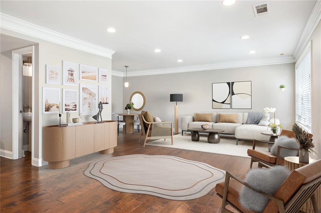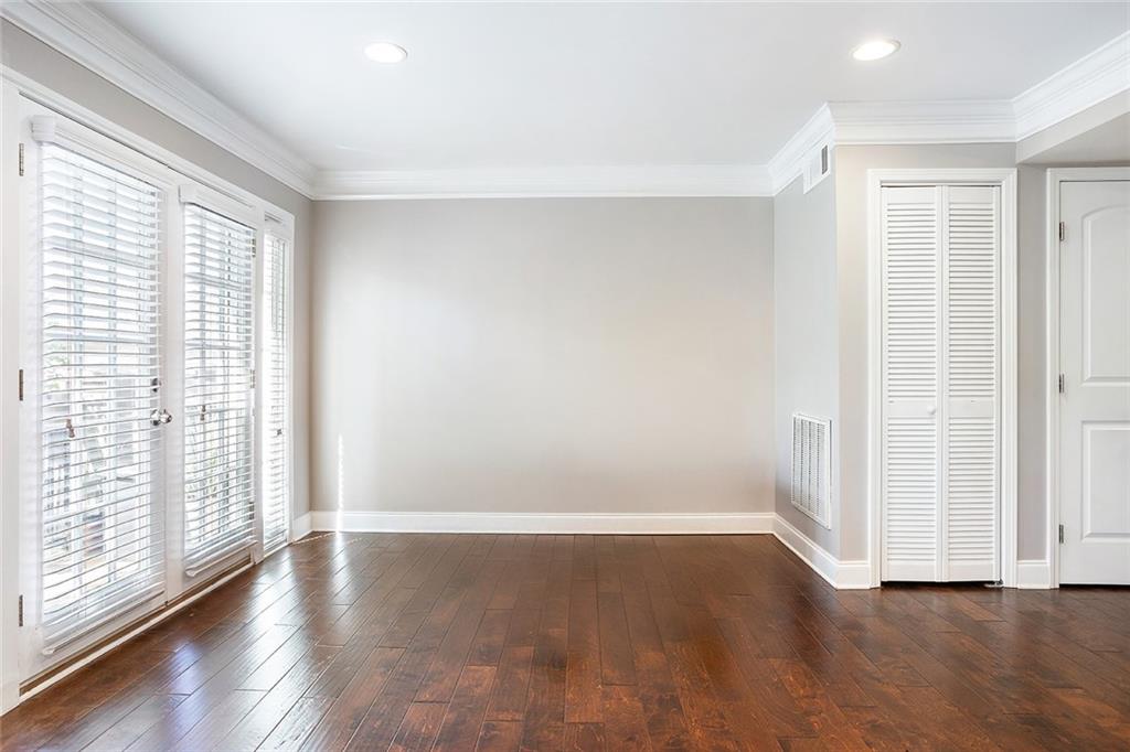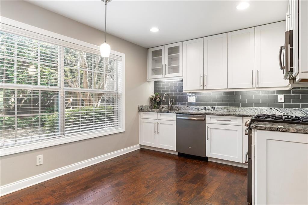 SELLER OFFERING 1-YEAR CREDIT FOR HOA DUES. Rental Permits Available! 100% Financing NO PMI Program Available as well! This townhome has been completely redone— including brand-new subfloors and with over $40,000 in upgrades above the original unit finishes, every inch of this home is thoughtfully designed and totally turnkey. Step inside to find gorgeous wide-plank hardwood floors throughout and a custom built-in bookcase in the foyer. Beautiful arched doorways lead you into a spacious dining room perfect for dinner parties or holidays. The oversized eat-in kitchen features white cabinetry with under-cabinet lighting, granite countertops, stainless steel appliances, a subway tile backsplash, double ovens, and a walk-in pantry with pull-out drawers—both stylish and super functional. The living room features crown molding, recessed lighting, and French doors that open to a massive private balcony—complete with a screen door for fresh-air lounging or entertaining. Upstairs, the jumbo primary suite is your personal retreat, with two custom closets: one just for accessories (think shoes, bags, jewelry), and a walk-in closet packed with smart built-ins like an ironing board, dresser, hamper, pants rack, and tie/belt organizers. The en-suite bathroom has a double vanity and a jetted soaking tub that’s perfect for winding down. You’ll also enjoy dual-zone HVAC, so you can control the temp upstairs and down separately, plus a large under-stair storage area for all your extras. And here’s the best part—the HOA has your back. It covers water, sewer, the hot water boiler, roof insurance, lawn care, pest control, and more. That means way less to worry about, and way more time to enjoy the good stuff—like the community pool, gym, and clubhouse. All of this, right in the heart of Sandy Springs’ most desirable location. Luxury and convenience wrapped into one exceptional townhome.