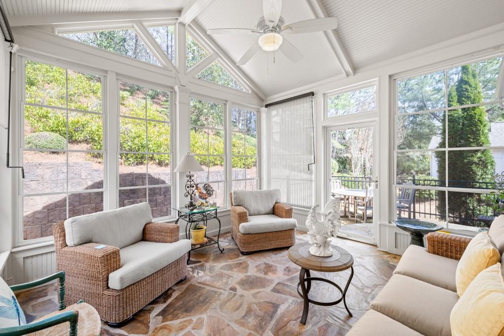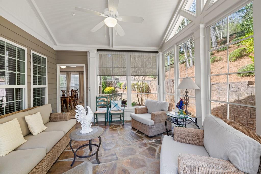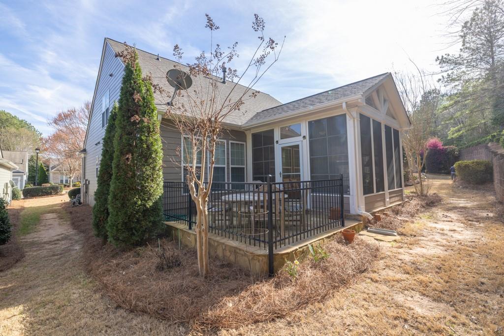 Hard-to-find Loft Floorplan with Incredible Outdoor Spaces- This is the one!! All the space you need with the amenities and social opportunities Village at Deaton Creek is known for! Open floorplan with natural light pouring in. Large kitchen with plenty of cabinet & counter space, granite countertops, pantry, breakfast bar, and breakfast area. Spacious Family Room with beautiful built-in bookshelves and cabinetry, opens into Sunroom (can be used as Dining Room, too). Primary Suite with tray ceilings, walk-in closet, and ensuite Bathroom. Separate Office, Secondary Bedroom, and Full Bath complete the Main. Upstairs is perfect for visitors- large Loft, spacious Bedroom, and Full Bathroom! What really sets this home apart is the addition of Outdoor Living spaces. The Four-Seasons room boasts screens and coverings so you can enjoy the room year-round! Flagstone paver flooring plus gas line access to install a heat source. Additional flagstone patio located outside to enjoy the views of the rear wooded area- plenty of privacy. The amenities and social opportunities set Village at Deaton Creek apart from all surrounding communities, offering 90+ social clubs, clubhouse, indoor & outdoor pools, tennis, pickleball, bocce ball, softball, dog park, walking trail, and stocked fishing pond... truly something for EVERYONE! All located next door to medical facilities, close to Braselton's ever-growing dining and shopping opportunities, and with easy access to 85!