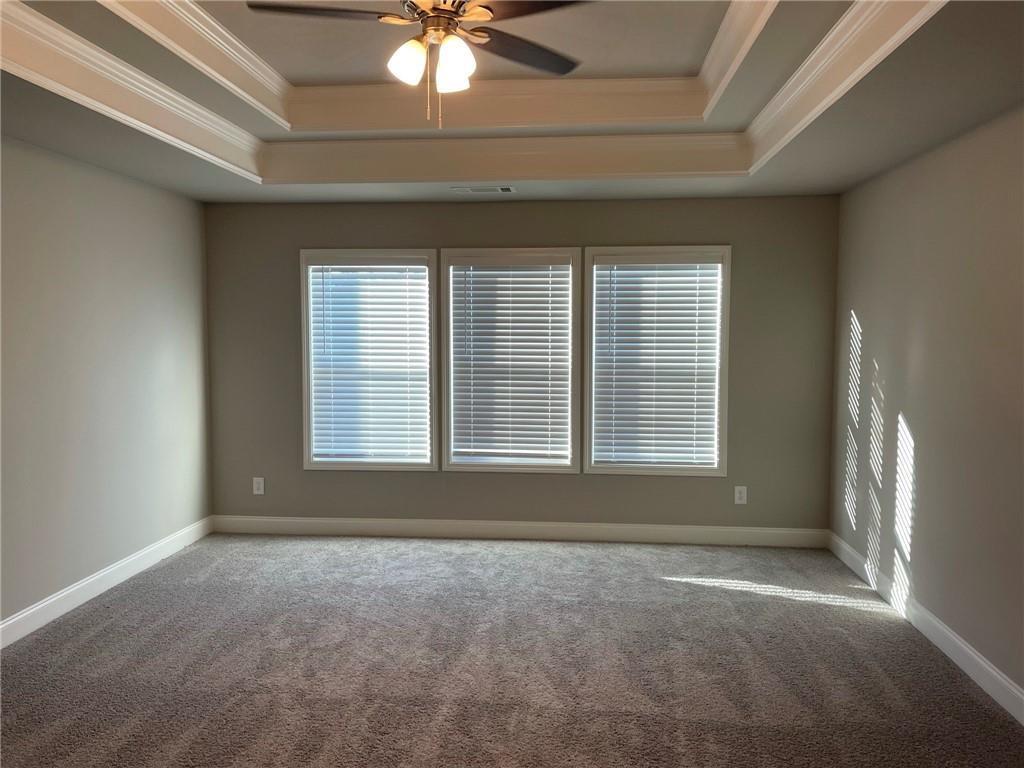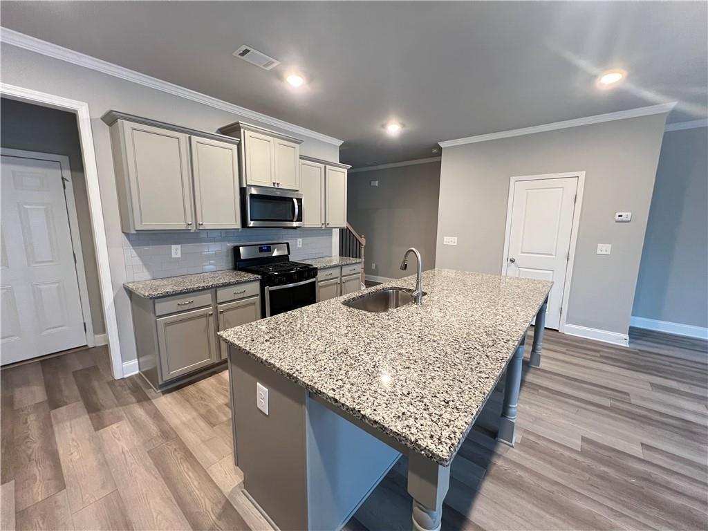 Gorgeous townhome with a great location! An Open Floorplan with White Kitchen Cabinets, Granite Countertops, and stainless Appliances. Spacious family room which opens out to a very private and patio. Perfect for entertaining family and friends! On the upper level, there is a very large primary bedroom with a wonderful spa-like bath, including a soaking tub and spacious closet. 2 additional bedrooms with a full bathroom, and a laundry room for easy access. All of this is located in great location, 3 minutes from I-85 Exit 117! You also have many delightful restaurants, shops, and the Mall of GA around the corner.