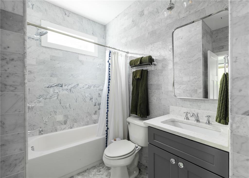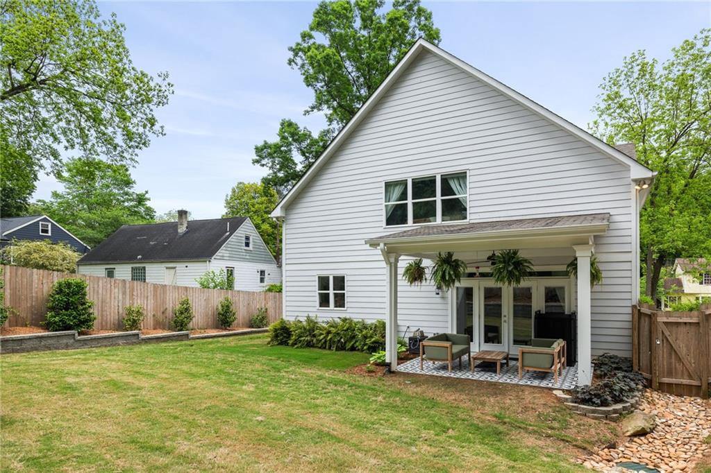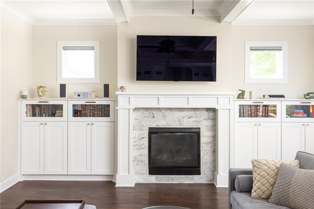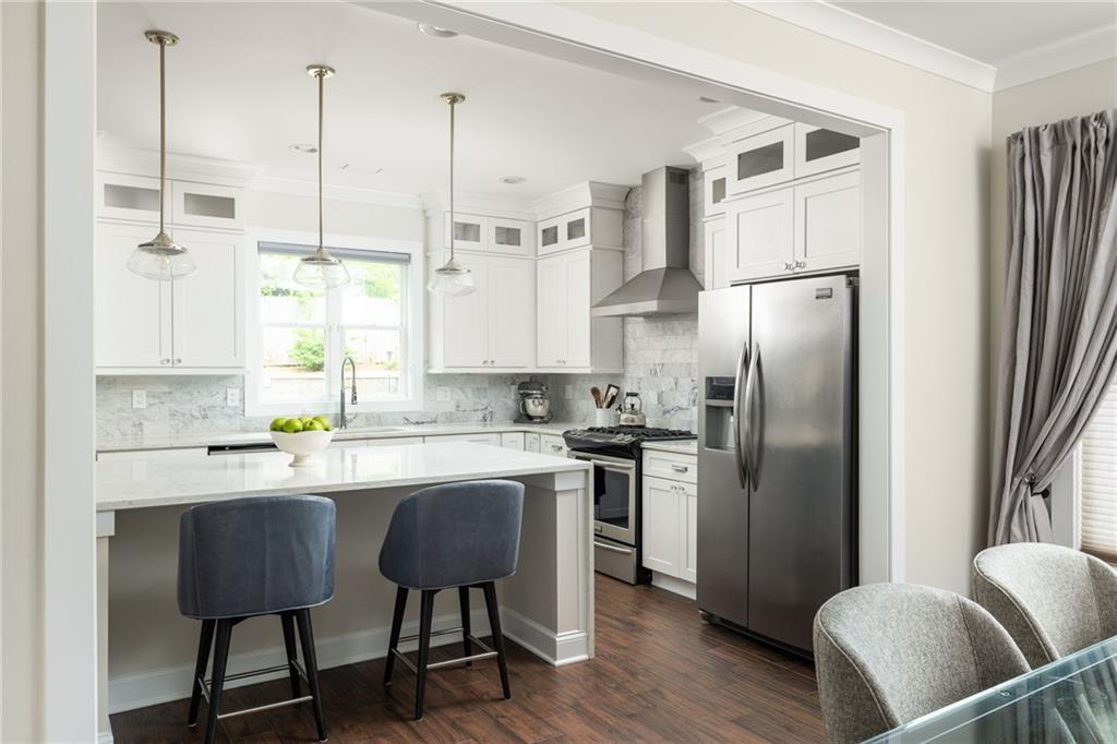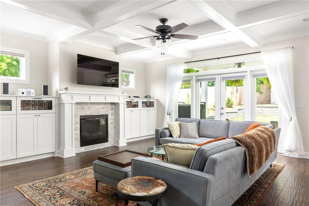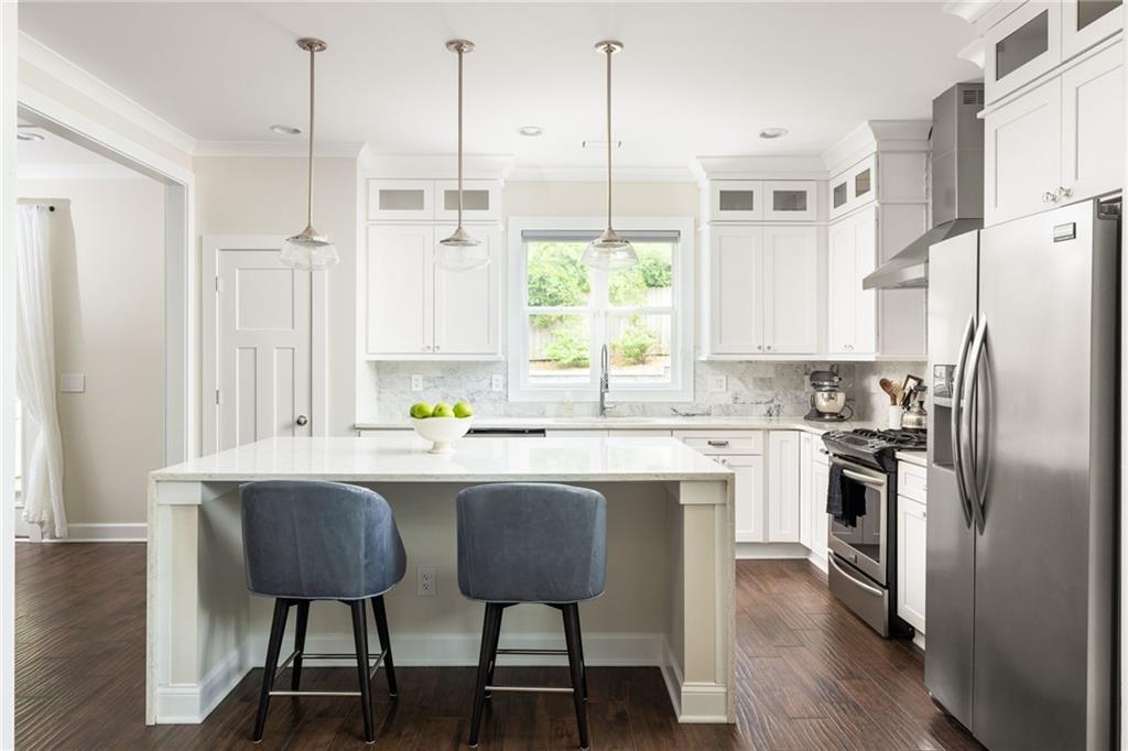 Better Than New – Upgraded Throughout with High-End Finishes This beautifully upgraded home stands out from the rest with premium materials, designer touches, and elevated functionality throughout. From the moment you step onto the charming tiled front porch, you'll notice the attention to detail. Inside, the main level features fantastic flow and stunning wood-look porcelain tile—low maintenance, pet-friendly, and built for real life. The spacious kitchen is a true centerpiece with a quartz waterfall island, stainless steel appliances, soft-close cabinetry, and a walk-in pantry—perfect for cooking and entertaining. Host effortlessly in the dedicated dining room, and relax in the inviting living area with brand-new built-in shelving, coffered ceilings, and a cozy gas fireplace. A full bedroom and beautifully finished bathroom on the main level offer flexible options for guests, multigenerational living, or a private office space. Throughout the home, you'll find high-end Rejuvenation hardware, smart lighting, and Graber window coverings that add polish and sophistication. Upstairs, the spacious primary suite feels like a private retreat, complete with a spa-like en suite bathroom featuring a frameless glass shower and separate soaking tub, wrapped in floor-to-ceiling Bianco Carrara marble tile with exquisite mother-of-pearl accents. Lighted Kohler mirrors, premium fixtures, and a large custom walk-in closet add to the luxury. Secondary bedrooms also include custom Elfa closets for smart organization. The dedicated laundry room is a true standout, complete with built-in cabinetry, a high-end LG washer/dryer set, and a major wow factor: a steam closet. Outside, enjoy a tiled back porch overlooking the professionally landscaped, fenced backyard with easy-care TifTuf Bermuda sod and a handy storage shed. A tankless water heater and two-car garage round out the features that make everyday living easy. Located less than 1.5 miles from East Atlanta Village and just minutes from Kirkwood, Decatur, and major interstates, you’ll love the easy access to top restaurants, shops, and everything intown Atlanta has to offer.
