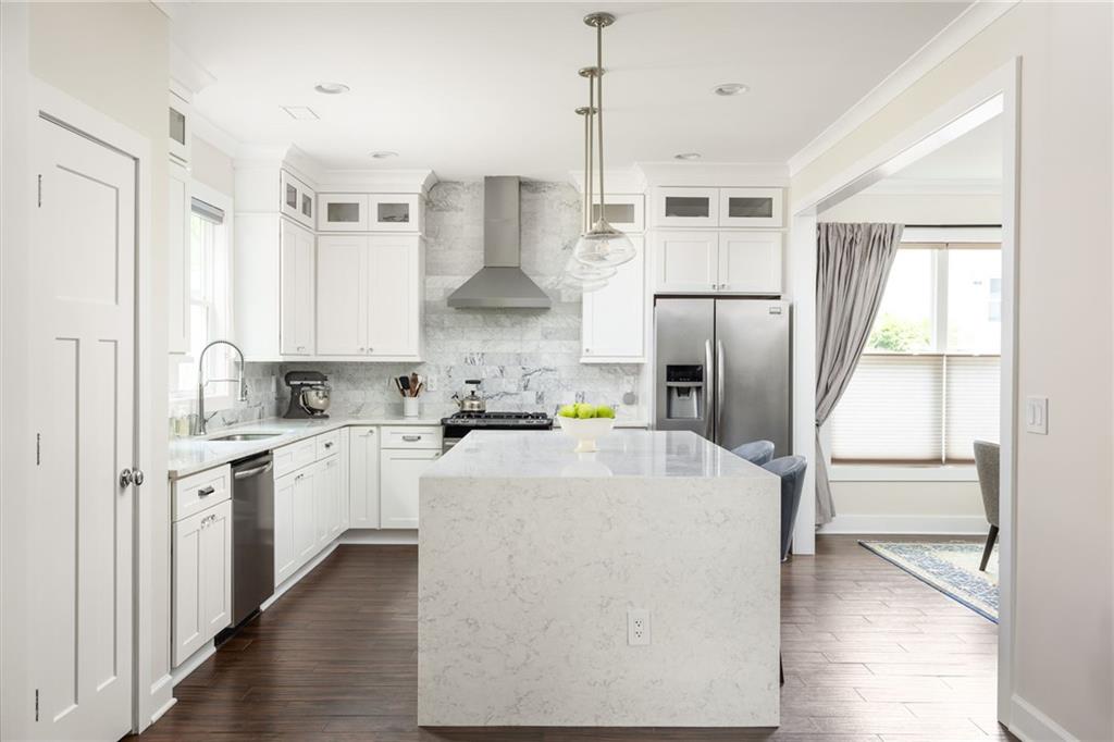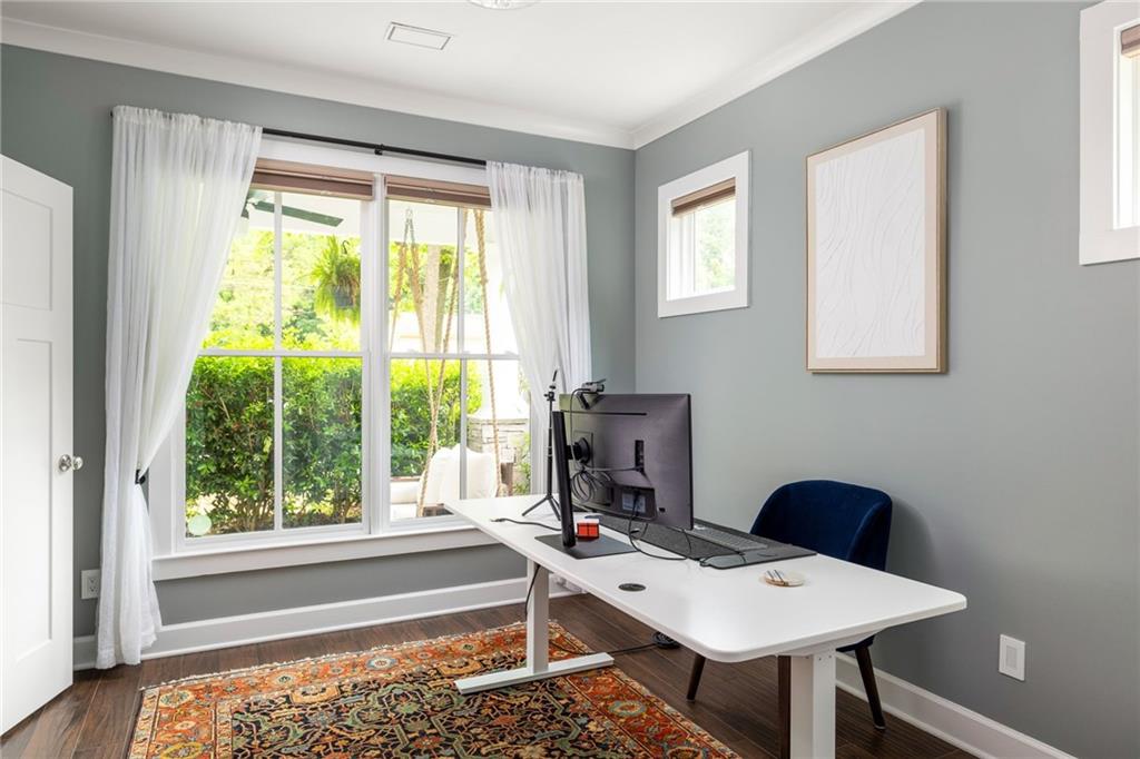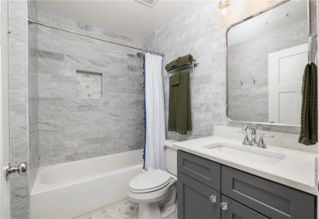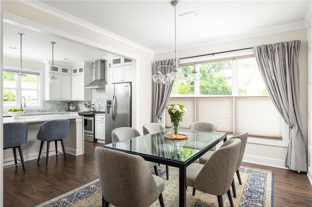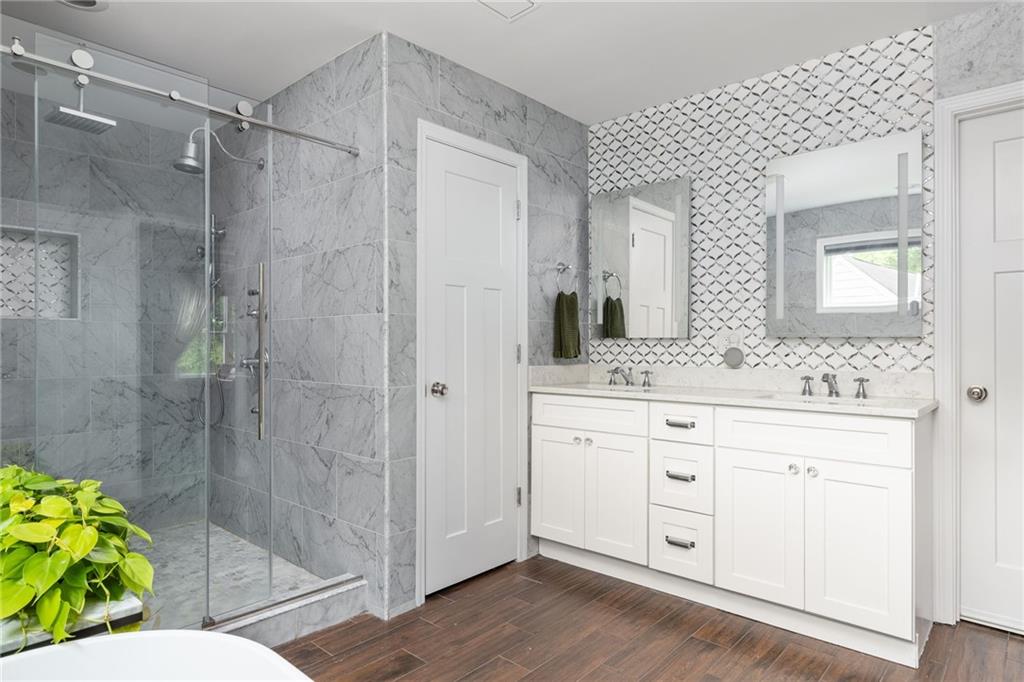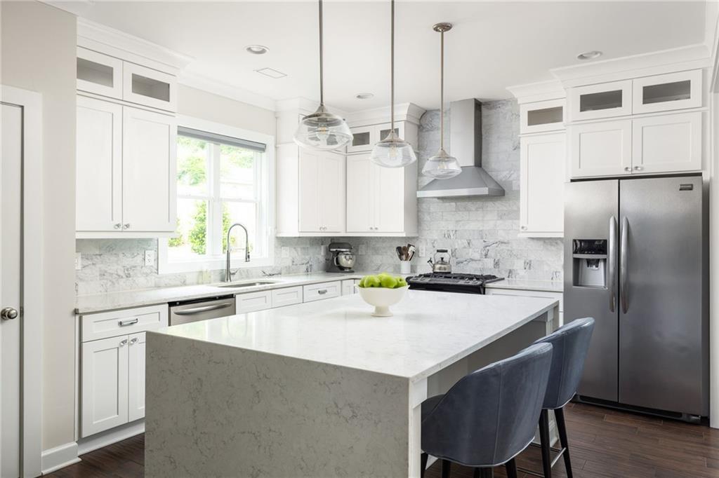 Better Than New – Upgraded Throughout with High-End Finishes This beautifully upgraded home stands out from the rest with premium materials, designer touches, and elevated functionality throughout. From the moment you step onto the charming tiled front porch, you'll notice the attention to detail. Inside, the main level features fantastic flow and stunning wood-look porcelain tile—low maintenance, pet-friendly, and built for real life. The spacious kitchen is a true centerpiece with a quartz waterfall island, stainless steel appliances, soft-close cabinetry, and a walk-in pantry—perfect for cooking and entertaining. Host effortlessly in the dedicated dining room, and relax in the inviting living area with brand-new built-in shelving, coffered ceilings, and a cozy gas fireplace. A full bedroom and beautifully finished bathroom on the main level offer flexible options for guests, multigenerational living, or a private office space. Throughout the home, you'll find high-end Rejuvenation hardware, smart lighting, and Graber window coverings that add polish and sophistication. Upstairs, the spacious primary suite feels like a private retreat, complete with a spa-like en suite bathroom featuring a frameless glass shower and separate soaking tub, wrapped in floor-to-ceiling Bianco Carrara marble tile with exquisite mother-of-pearl accents. Lighted Kohler mirrors, premium fixtures, and a large custom walk-in closet add to the luxury. Secondary bedrooms also include custom Elfa closets for smart organization. The dedicated laundry room is a true standout, complete with built-in cabinetry, a high-end LG washer/dryer set, and a major wow factor: a steam closet. Outside, enjoy a tiled back porch overlooking the professionally landscaped, fenced backyard with easy-care TifTuf Bermuda sod and a handy storage shed. A tankless water heater and two-car garage round out the features that make everyday living easy. Located less than 1.5 miles from East Atlanta Village and just minutes from Kirkwood, Decatur, and major interstates, you’ll love the easy access to top restaurants, shops, and everything intown Atlanta has to offer.