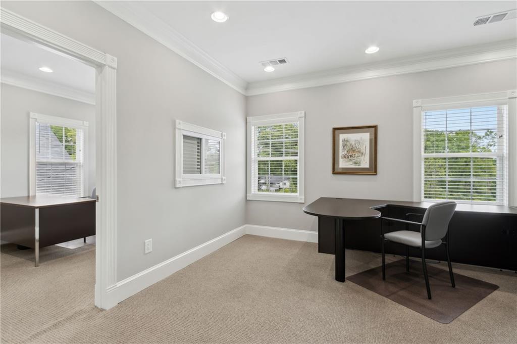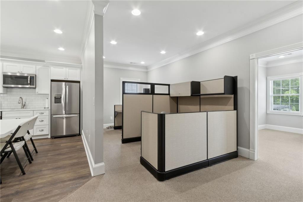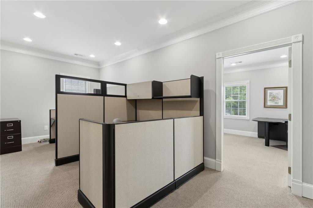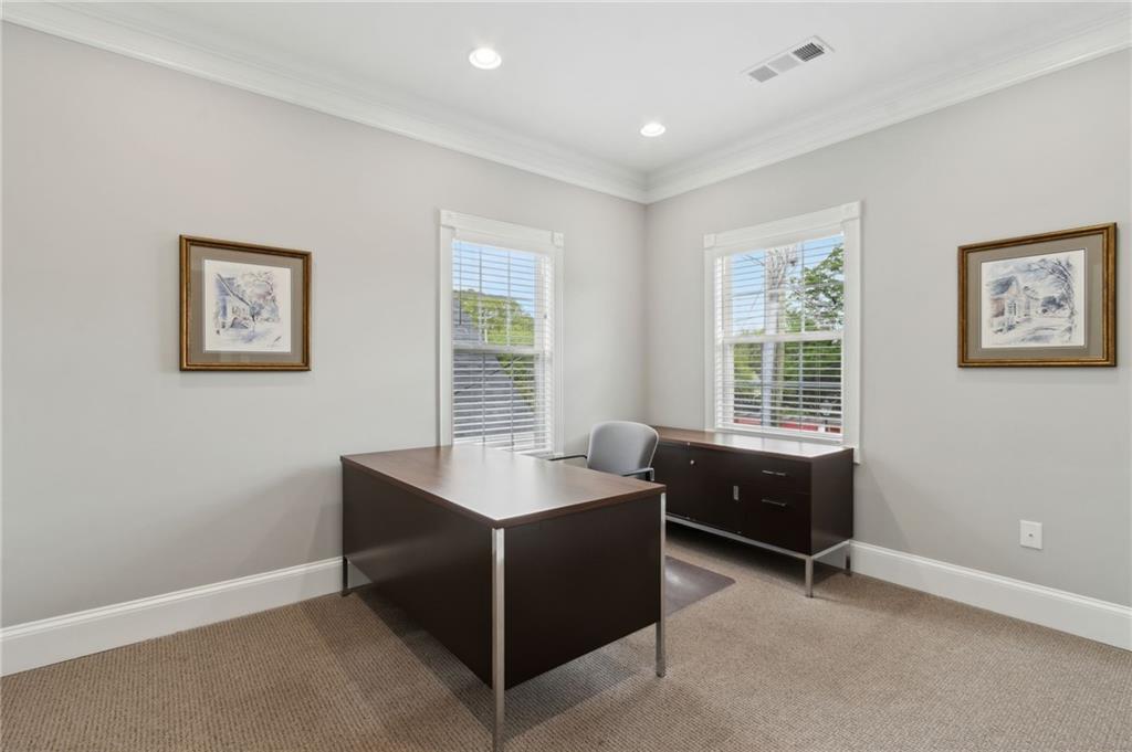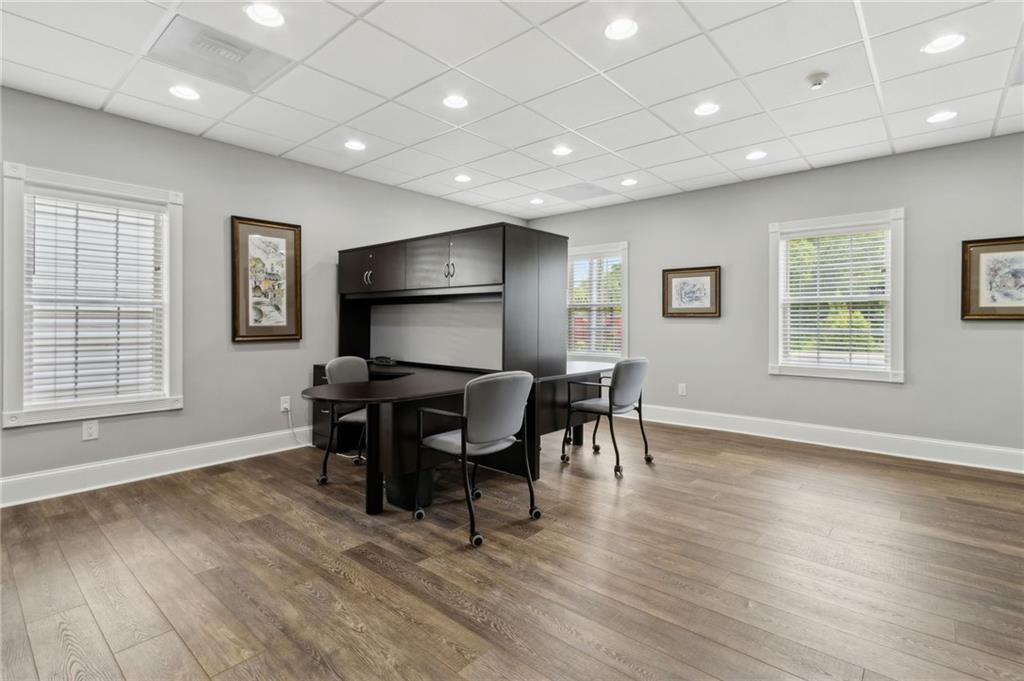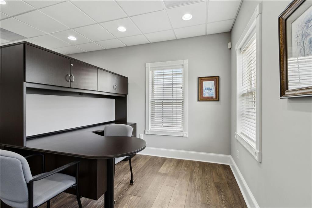 Own a piece of charming downtown Suwanee. This beautifully renovated commercial property, updated just 5 years ago, offers an ideal blend of modern functionality and small-town charm. Located steps from Suwanee Town Center, it’s perfect for a business seeking visibility, convenience, and character. Open & versatile office space on the first floor. Full bathroom with a shower on the main level. The second floor includes 2 private offices and 2 cubicles. Kitchen, break area, and a private deck on the second floor. CAT 5 cabling throughout for seamless connectivity. Zoned to allow for the construction of an additional building on the rear of the lot. Enjoy the walkable lifestyle with restaurants, shops, parks, and the Gwinnett County Public Library just around the corner. This is a rare opportunity to invest in one of Suwanee’s most desirable locations.