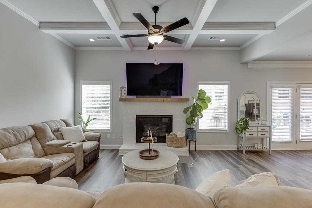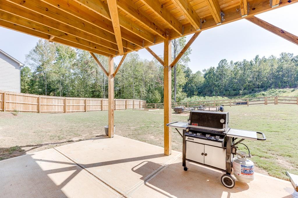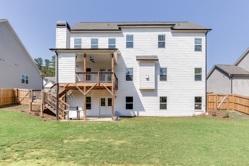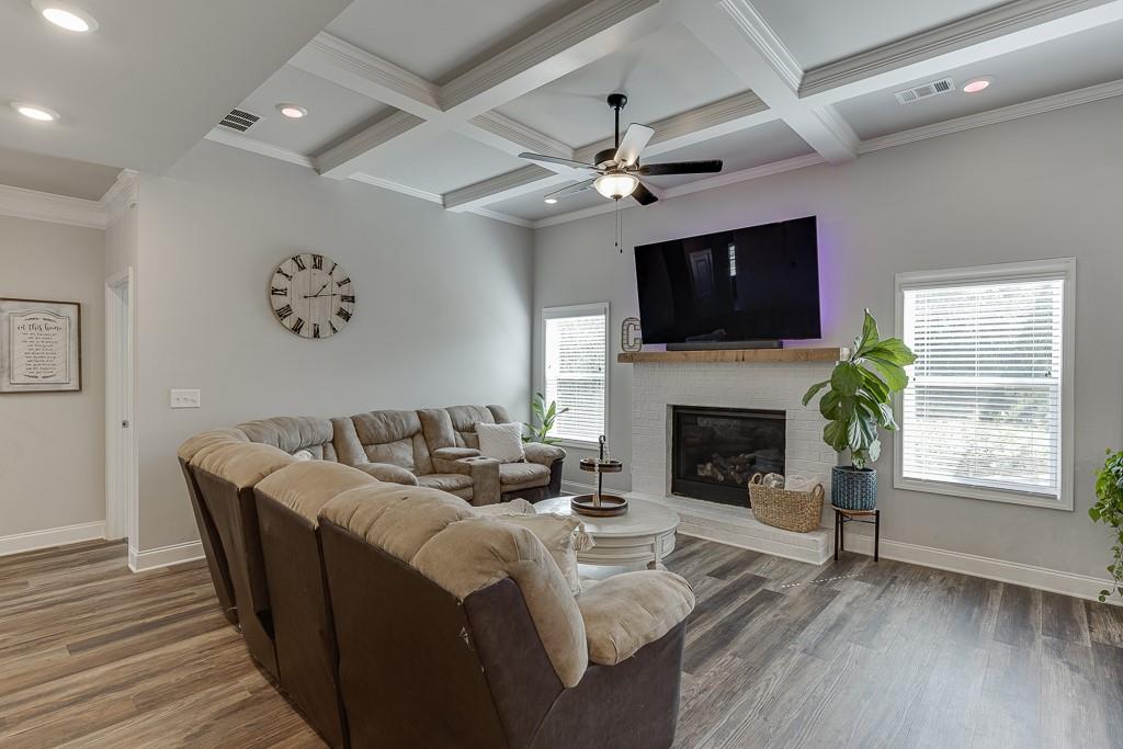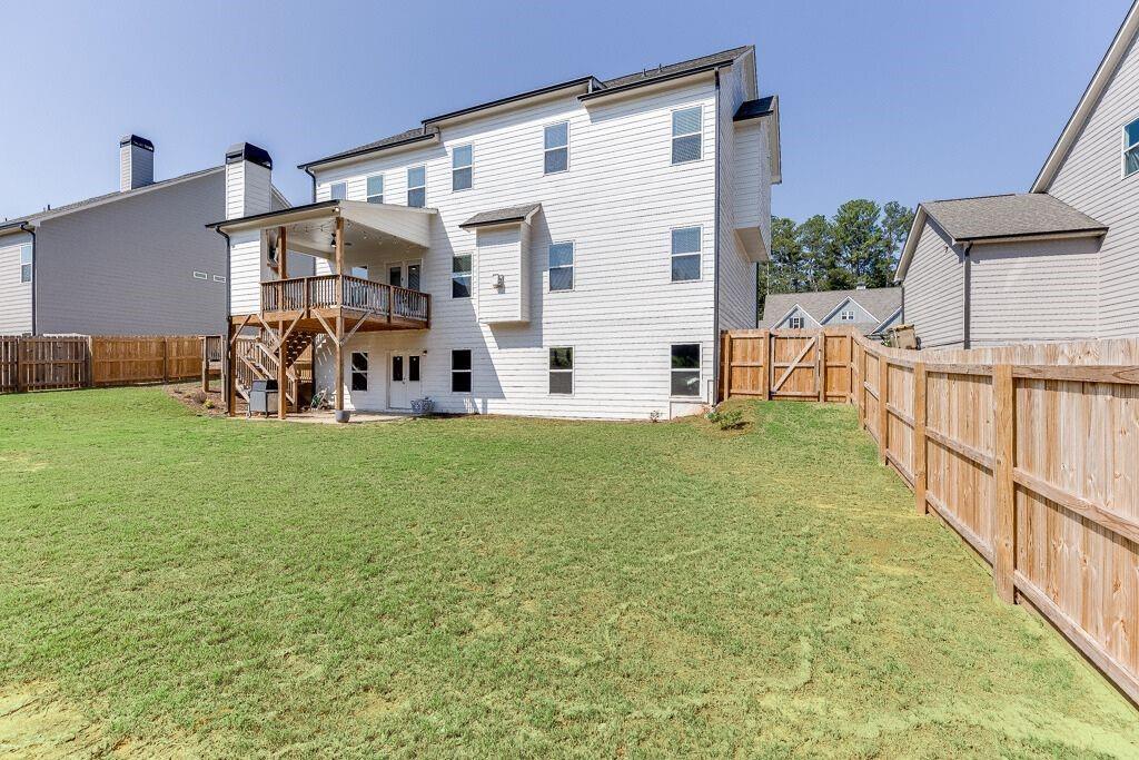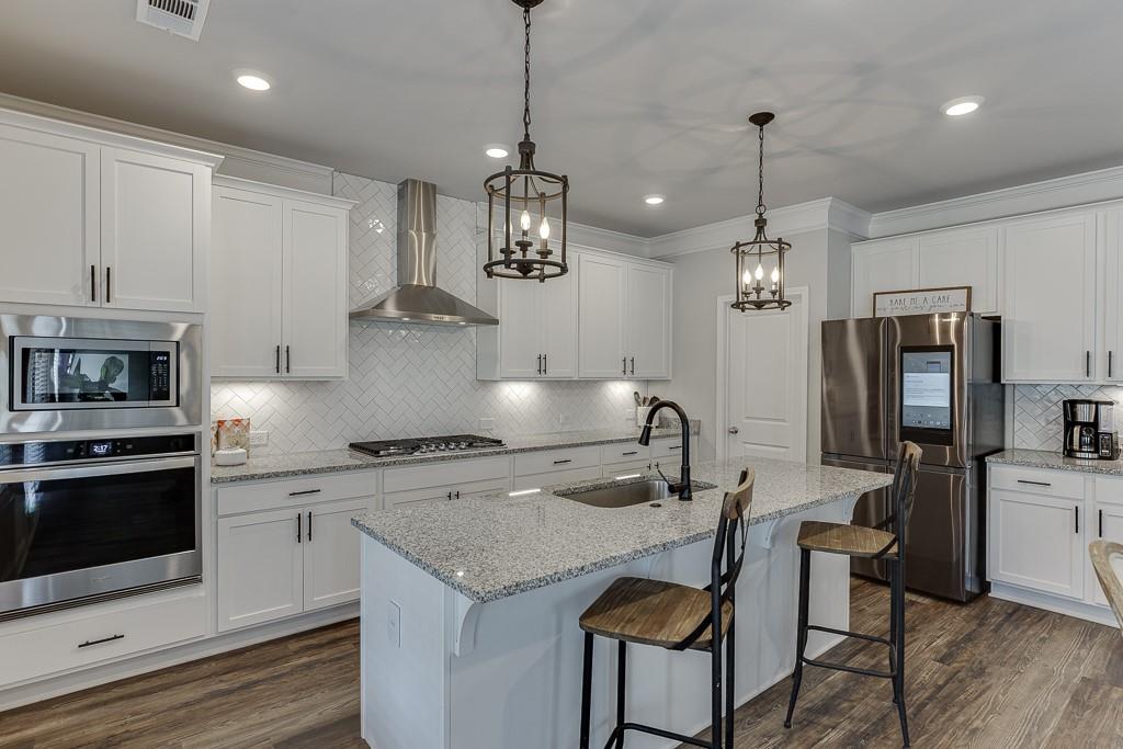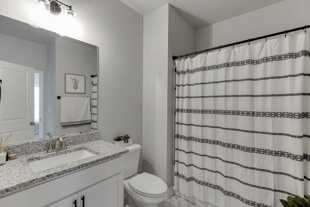 Discover this stunning 5-bedroom, 4-full-bath Craftsman-style home, nestled on a full basement and featuring a 3rd car garage. The property boasts a fenced backyard, perfect for outdoor enjoyment, and a covered front and back porch complete with an inviting outdoor fireplace and fenced-in yard. Step inside to a welcoming main level highlighted by a grand two-story foyer. The home is adorned with hard surface floors throughout, creating a seamless flow. You'll find a versatile office space/flex room with elegant double French doors, a formal dining room for special occasions, and a cozy family room featuring a charming brick fireplace. The main level also includes a convenient guest on-suite, providing full bath access for your visitors. The chef's kitchen is designed for both functionality and entertainment, featuring a recessed oven, farmhouse-style sink, granite countertops, a stylish tile backsplash, under-cabinet lighting, glass cabinet accents, and a grand center island with a breakfast bar, and finally a large pantry for expansive storage. Adjacent to the kitchen, the breakfast room provides a delightful space for casual dining. Retreat to the expansive owner’s suite, which boasts a generous walk-in closet and a luxurious bathroom, complete with a double vanity, an enlarged glass shower with a bench, a relaxing garden tub, and a private toilet room. The teen suite is equally impressive, offering a large closet and a private bathroom, while the secondary bedrooms are spacious and thoughtfully designed, sharing a Jack-and-Jill style bathroom with convenient access to the hall. The upper level offers a large media room/flex space for additional entertaining. All of this on a full basement with an open terrace level for a more finished feel when entering the basement.
