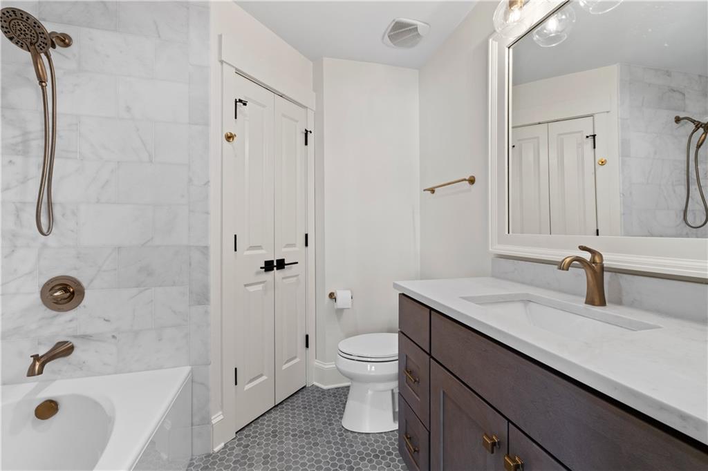 Welcome to this beautifully and totally renovated townhome featuring 2 spacious bedrooms and 2.5 bathrooms. New hardwood floors and freshly painted throughout. This home boasts a renovated kitchen with new white cabinets, quartzite counter tops, new Stainless-steel dishwasher, range and built in microwave, under counter lights and designer sink fixture. Kitchen open to living space and has access to the covered balcony. Guest bedroom on its own floor with newly renovated bathroom that includes new cabinet, quartzite countertop and hardware. Primary bedroom is on top level, has 2 separate closets, Laundy closet, and luxury renovated bath with new cabinet, quartzite countertop and hardware This move-in ready home offers comfort, convenient to all major highways, and timeless appeal perfect for all buyers. Located Don’t miss this opportunity!