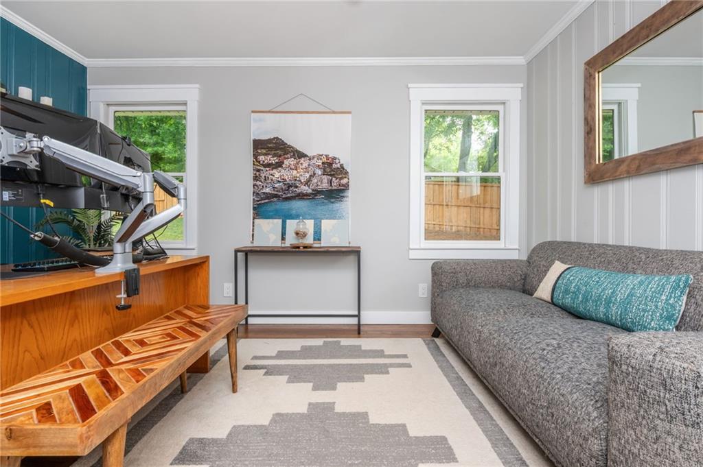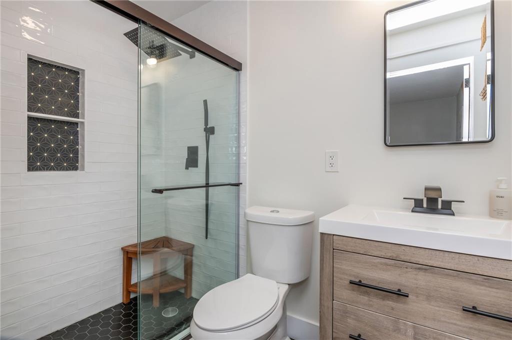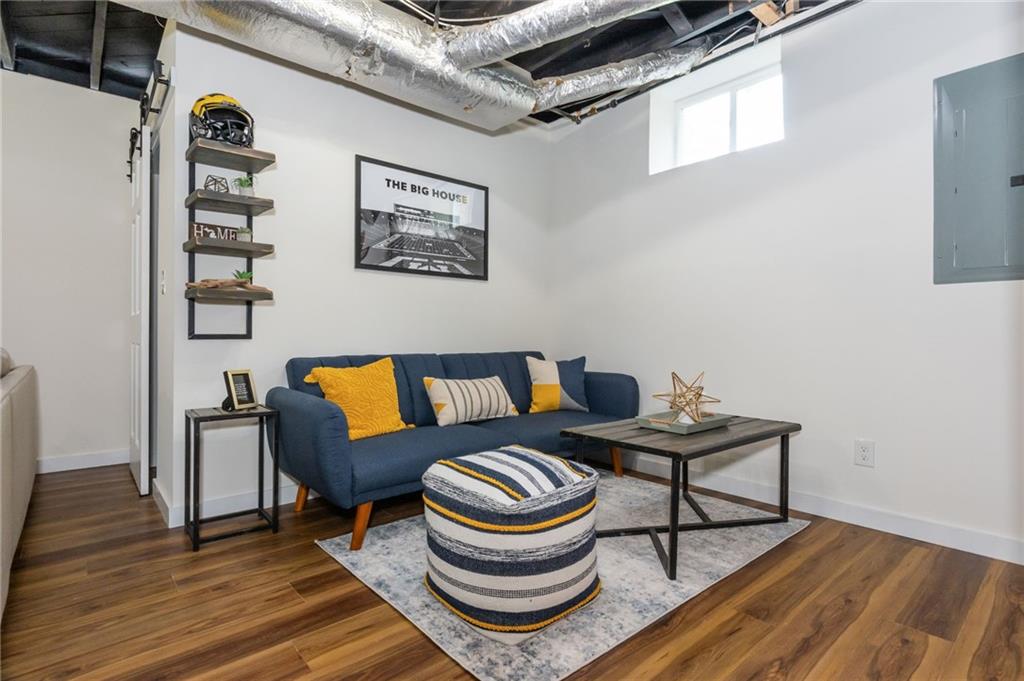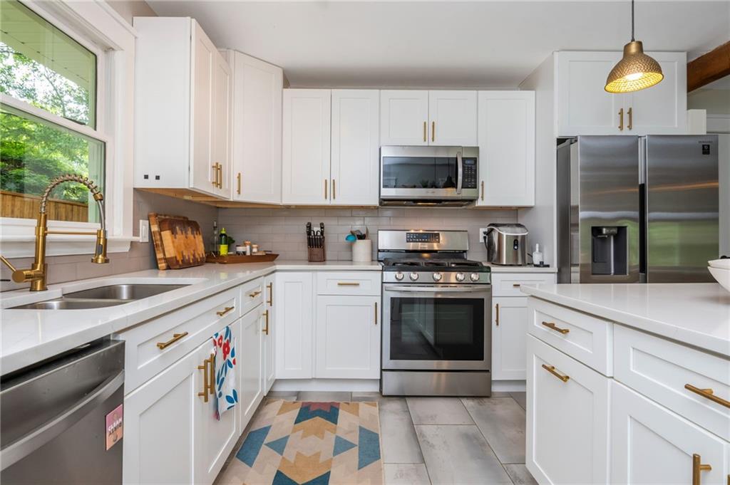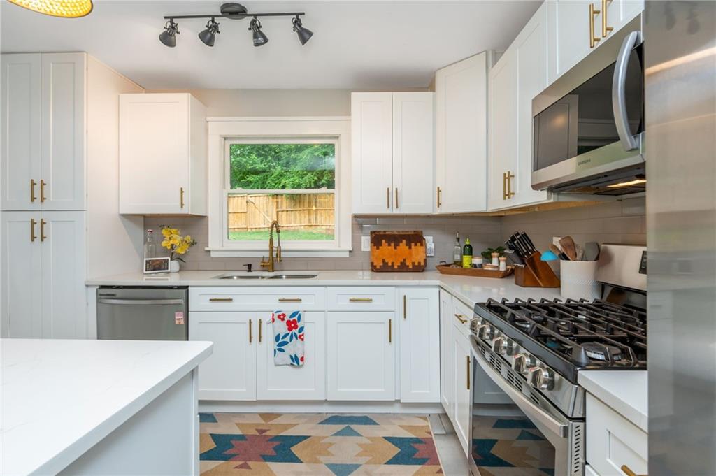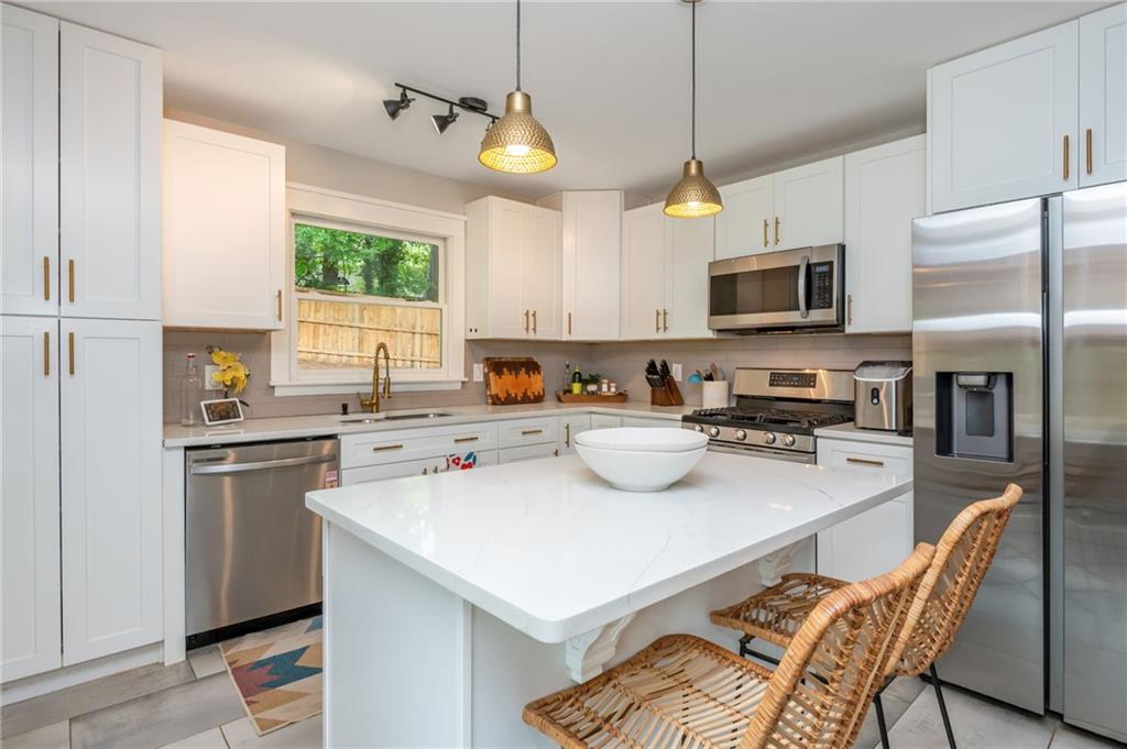 This beautifully renovated brick ranch blends classic charm with modern updates, offering the perfect combination of comfort and convenience in the heart of Smyrna. Situated on a finished basement, the home features newly refinished hardwood floors, fresh interior and exterior paint, and stylishly updated bathrooms. The brand-new kitchen is a standout, boasting quartz countertops, crisp white cabinetry, a center island, and a full suite of stainless steel appliances—ideal for both everyday living and entertaining. The functional floor plan includes a spacious primary suite on the main level, a dining area with views into the family room, and generously sized secondary bedrooms. Additional highlights include an attached garage and a fully fenced backyard oasis—perfect for relaxing or hosting guests. Major systems have been recently replaced, including the roof, HVAC, water heater, windows, plumbing, and electrical, as well as a complete renovation of the primary bathroom and finished basement—offering peace of mind and saving you from future big-ticket expenses. Homes in this prime location with these features are rare—walkable to the Smyrna Market Village, along with easy access to Downtown Smyrna, The Battery, top dining options, shopping, and numerous parks.