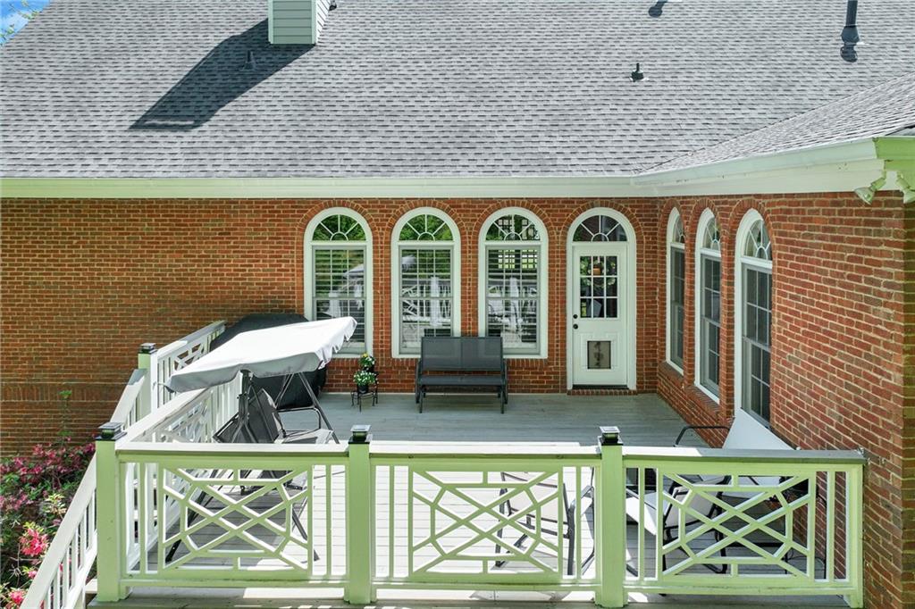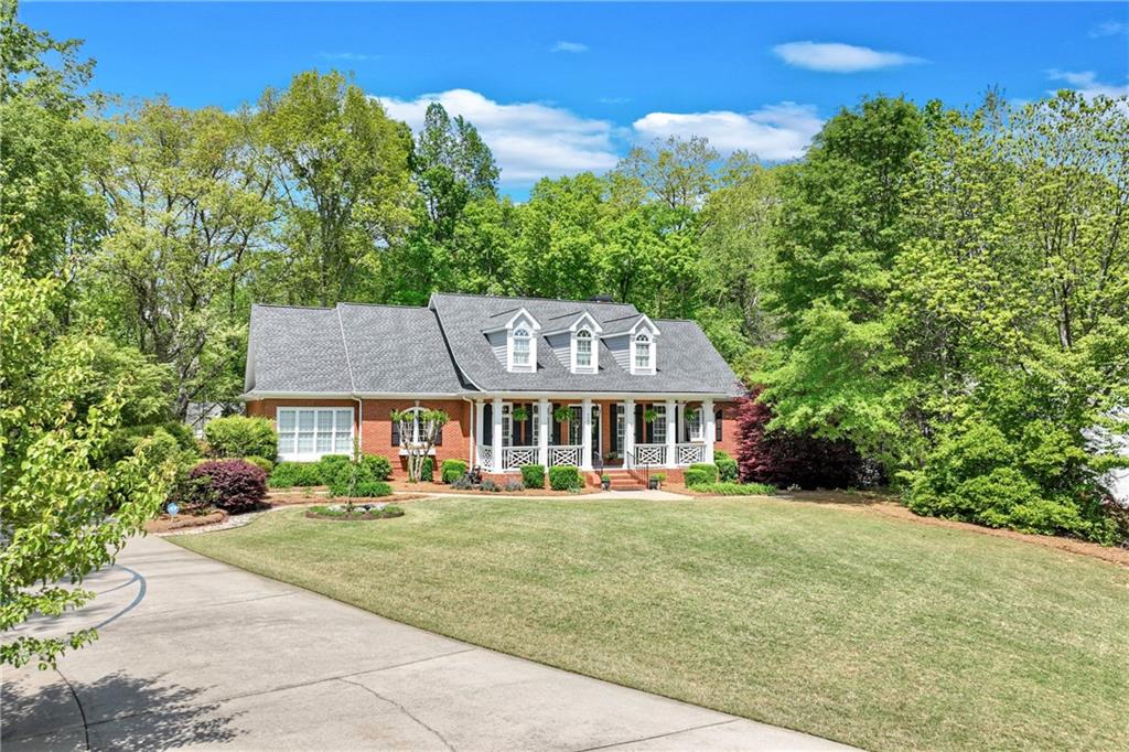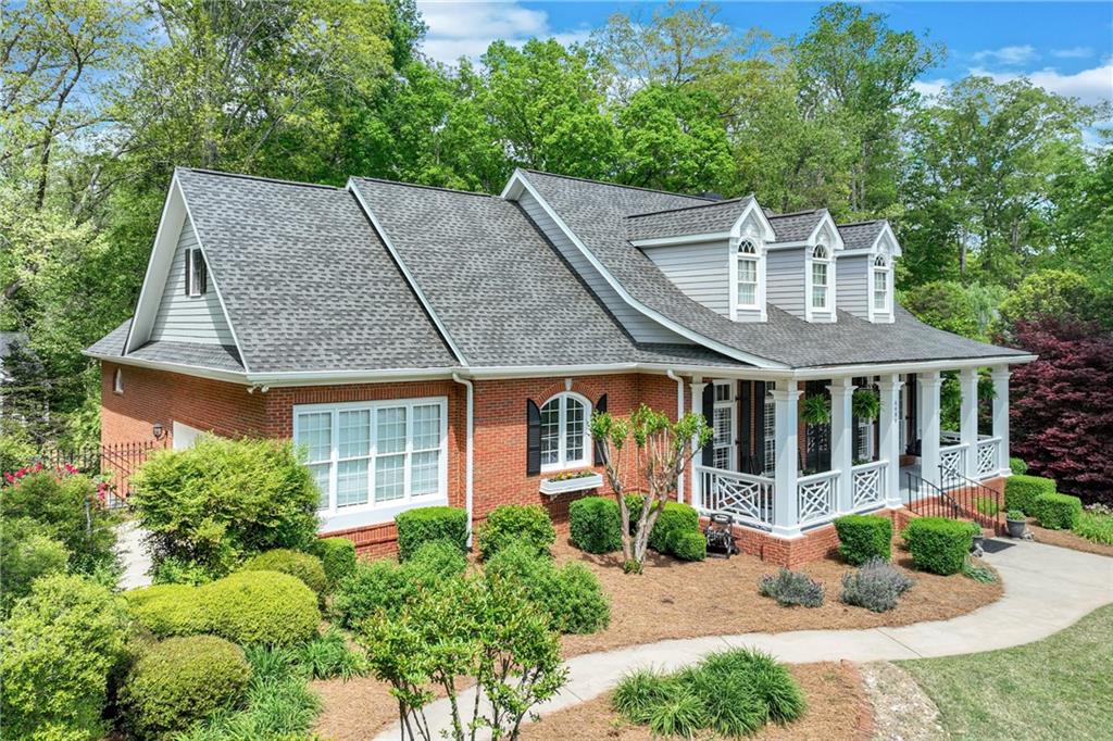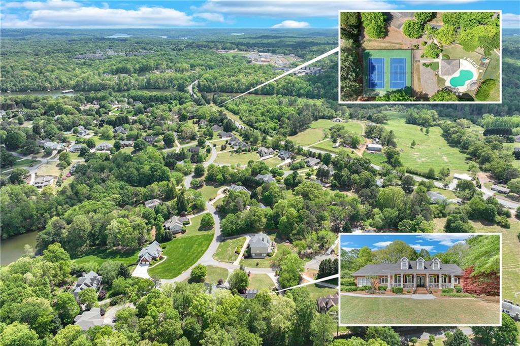 Located in the well established and sought after Cherokee Forrest Lake Lanier neighborhood just north of Gainesville, this custom-built, four-sides brick home offers timeless quality and comfortable everyday living. Enjoy community amenities including a pool and tennis courts, all while coming home to a quiet cul-de-sac lot with a lush, landscaped front yard. Step inside through double doors into a beautifully trimmed foyer that sets the tone for the craftsmanship throughout—10-foot ceilings, custom cabinetry, and rich wood-paneled built-ins surrounding the fireplace. The main level features two spacious bedroom suites and a dedicated office/study ideal for work-from-home needs. A walkout deck from main level overlooks the private, fenced backyard. The finished terrace level includes a generous recreation or family room that opens to a patio, with unfinished space remaining for storage or future expansion. Practical features include two 2-car garages and permanent stairs from the garage to the attic. Truly a rare find in a well-established, amenity-rich neighborhood.