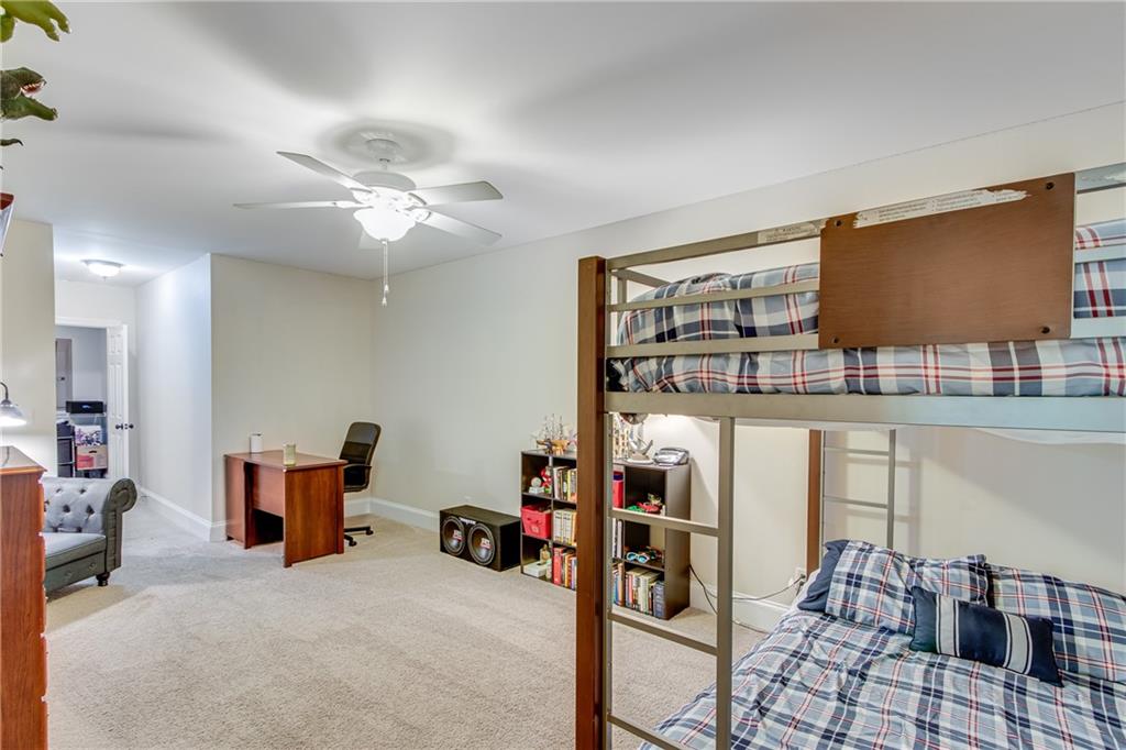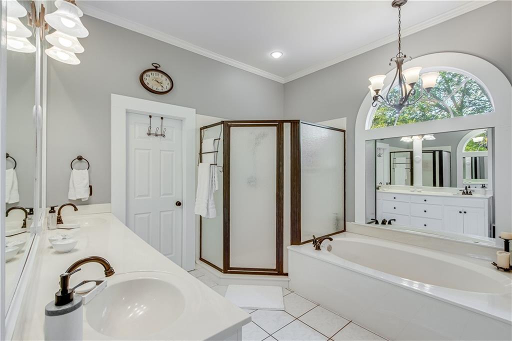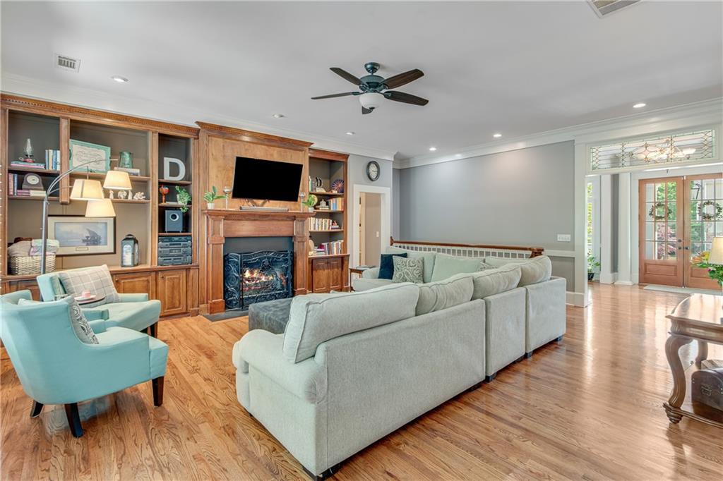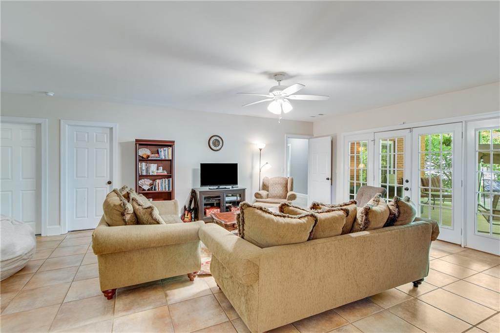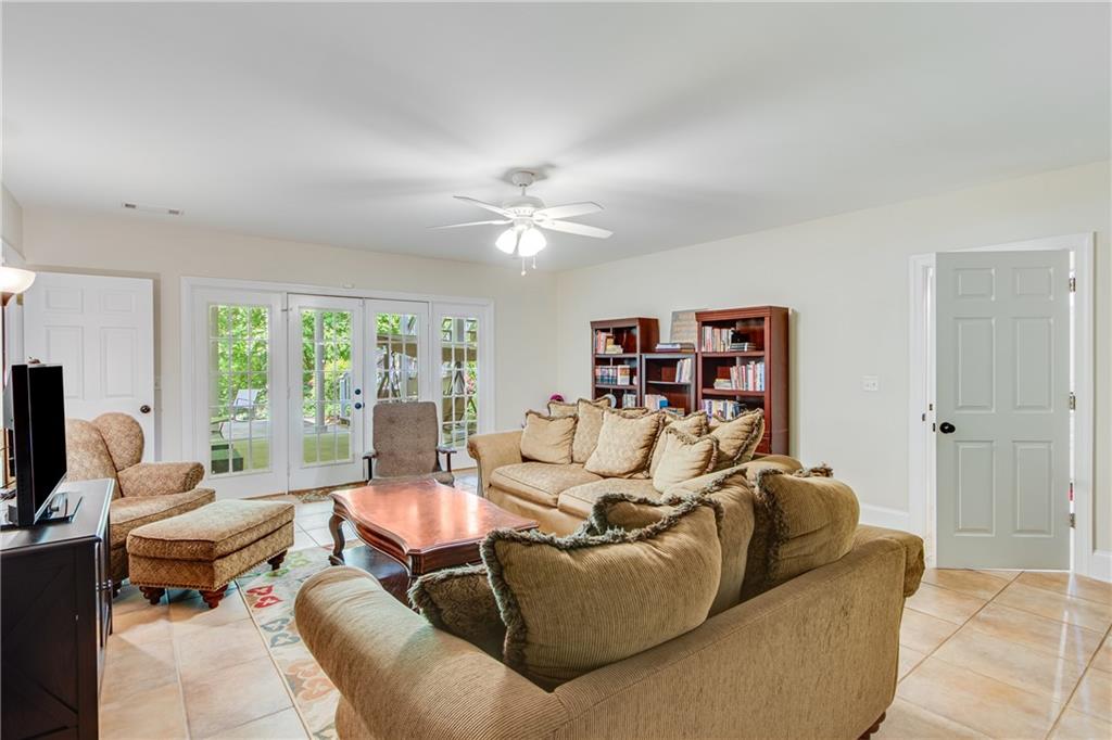 Located in the well established and sought after Cherokee Forrest Lake Lanier neighborhood just north of Gainesville, this custom-built, four-sides brick home offers timeless quality and comfortable everyday living. Enjoy community amenities including a pool and tennis courts, all while coming home to a quiet cul-de-sac lot with a lush, landscaped front yard. Step inside through double doors into a beautifully trimmed foyer that sets the tone for the craftsmanship throughout—10-foot ceilings, custom cabinetry, and rich wood-paneled built-ins surrounding the fireplace. The main level features two spacious bedroom suites and a dedicated office/study ideal for work-from-home needs. A walkout deck from main level overlooks the private, fenced backyard. The finished terrace level includes a generous recreation or family room that opens to a patio, with unfinished space remaining for storage or future expansion. Practical features include two 2-car garages and permanent stairs from the garage to the attic. Truly a rare find in a well-established, amenity-rich neighborhood.