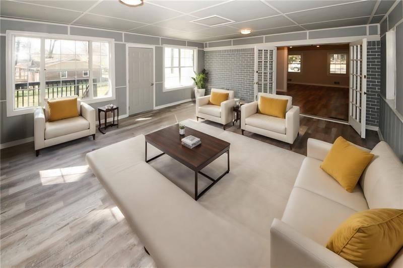 AVAILABLE AGAIN. Buyer's financing arrangement collapsed....THIS CHARMING HOME IS A MUST SEE! Modern Farmhouse 4 bed/2 bath nestled in the HEART of Douglasville. Home sits on a large corner lot, NO HOA, recently renovated new roof, new gutters, new heating and air system, new water heater, new floors throughout, new kitchen cabinets, new light fixtures, new doors, bathroom, New Main Electrical panel to code. OPEN floor plan, the living room is the perfect place to cozy up next to the fireplace with an additional sunroom creating an airy, spacious atmosphere between the dining and the kitchen. Spacious kitchen with gleaming granite countertops and backsplash, all new SS appliances. The master bedroom has double closets. FINISHED BASEMENT: bonus room and ONE bedroom adds privacy and flexibility for guests or family alike. Updated plumbing, recently painted inside with natural colors. Home is located around the corner to Douglasville Hospital (WellStar) Douglas Courthouse, freeways, dining and shopping. Don't miss out this great opportunity!