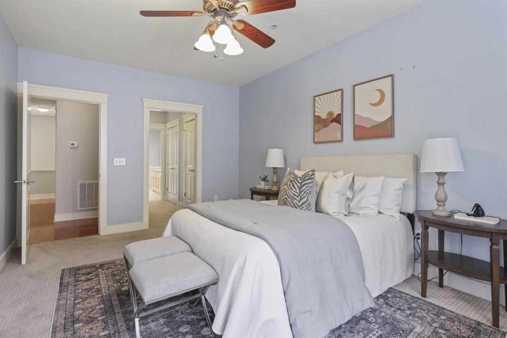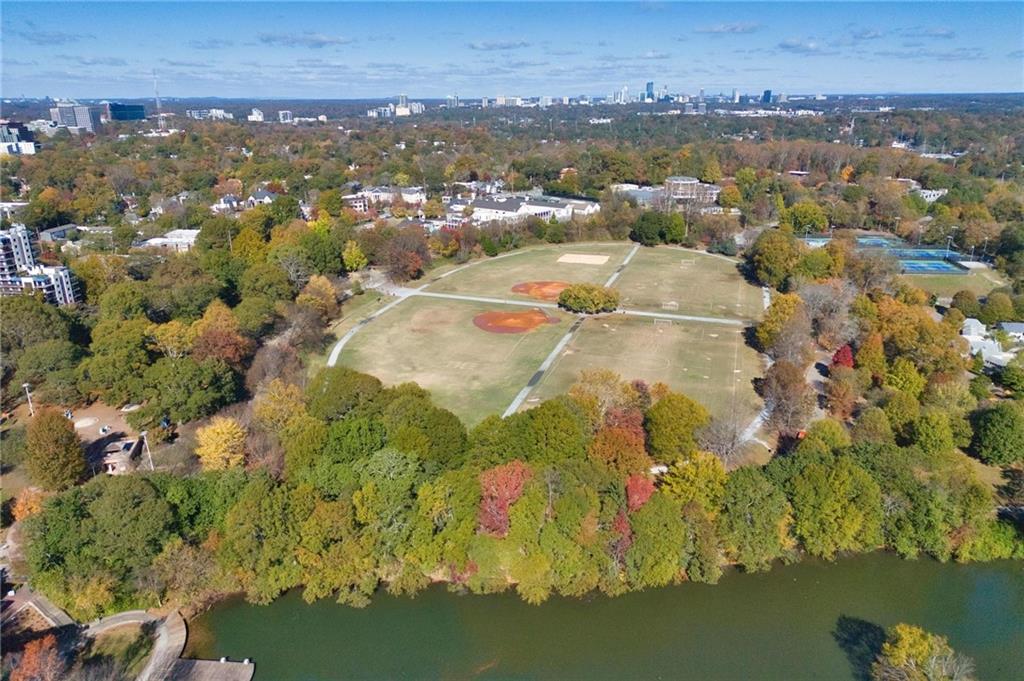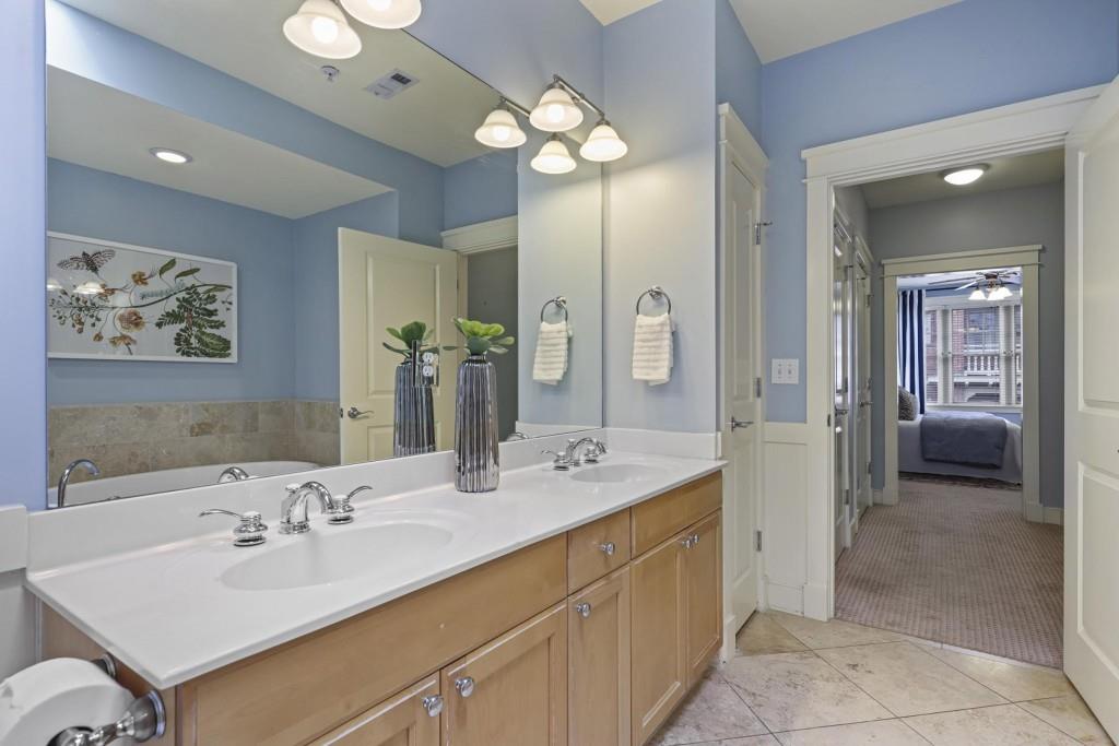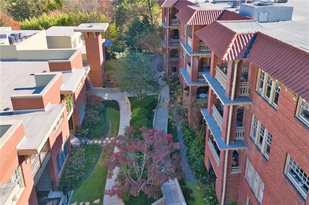 Welcome to this truly unique two-story condo with walkout patio that leads to adjacent Piedmont Park! This 2-bedroom, 2.5-bath condo in the heart of Midtown is the perfect oasis in the city. Directly adjacent to Piedmont Park, residents of Wilburn House can walk everywhere and take in all Midtown has to offer while still coming home to a safe, quiet, well-maintained community. This unique two-story condo features a first floor with a full kitchen including double ovens, oversized living room with fireplace, half bath, and walkout patio leading to the shared, secure community garden. Upstairs you find two bedrooms each with en suite bathrooms. The primary bedroom has its own balcony. Primary bath features dual vanities, shower, and oversized bathtub. Beautifully maintained and spacious home with a surprising amount of storage for a condo. Unit includes two deeded parking spaces in the building's secure garage.