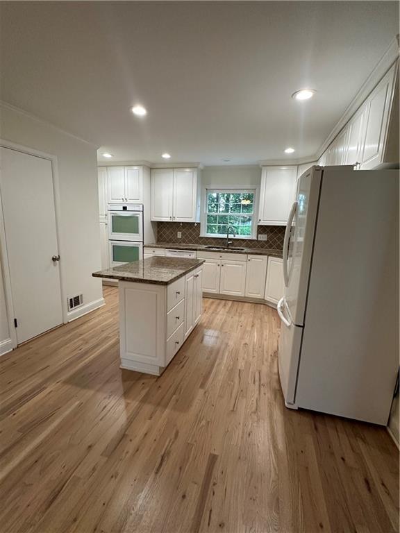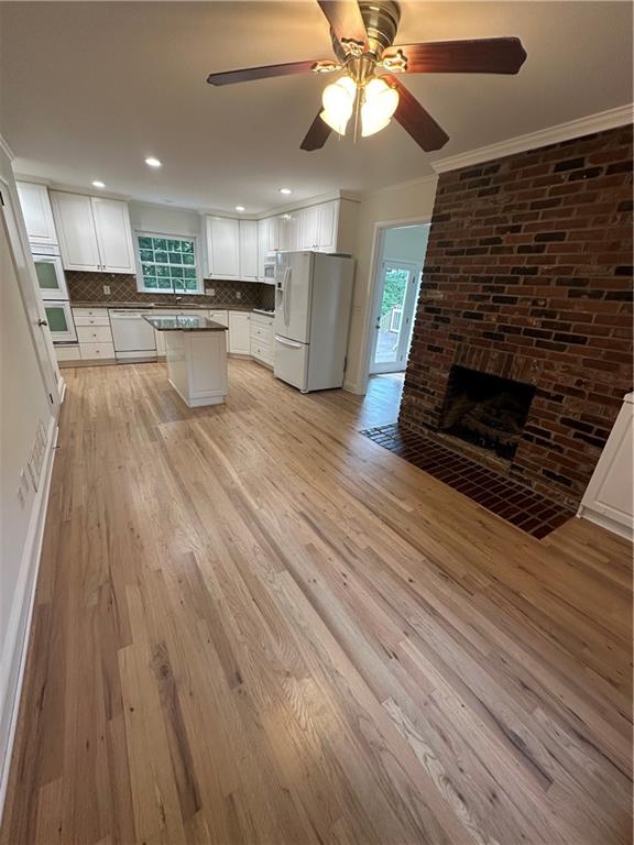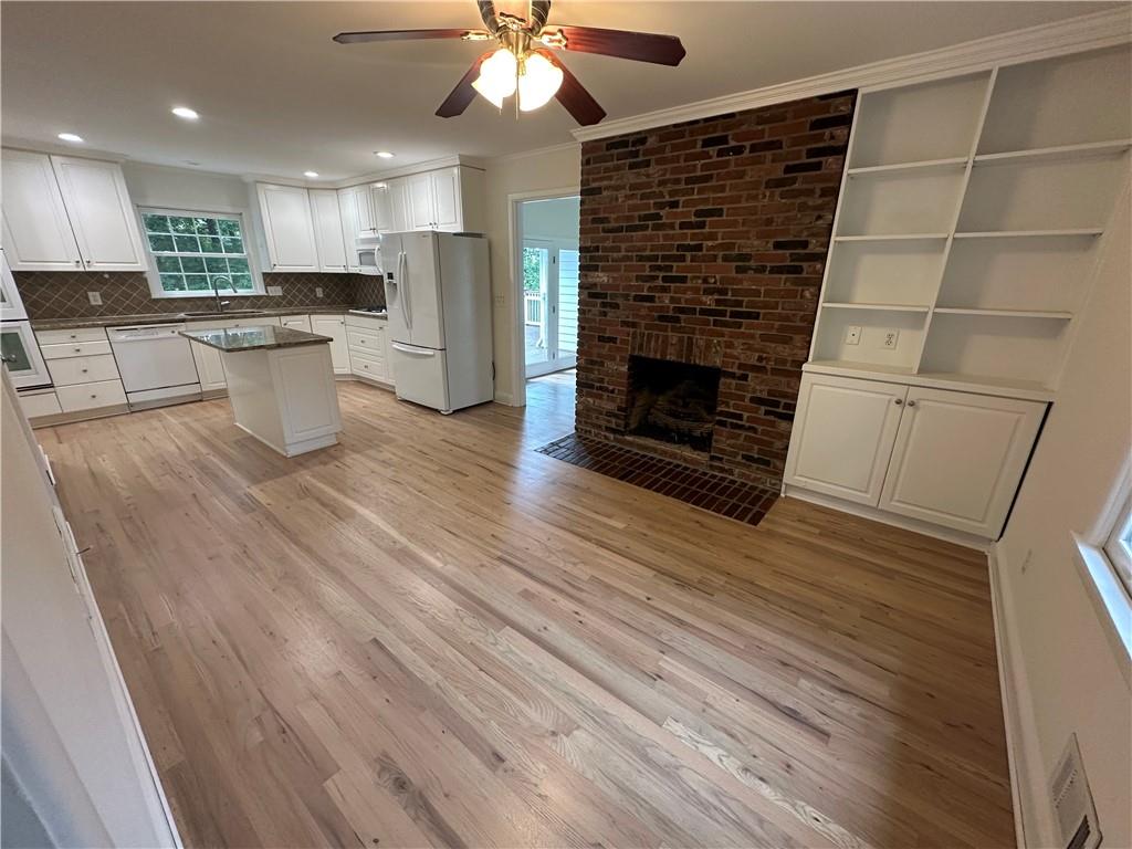 - KitchenCabinets White, Eat-in Kitchen, Kitchen Island, Stone Counters