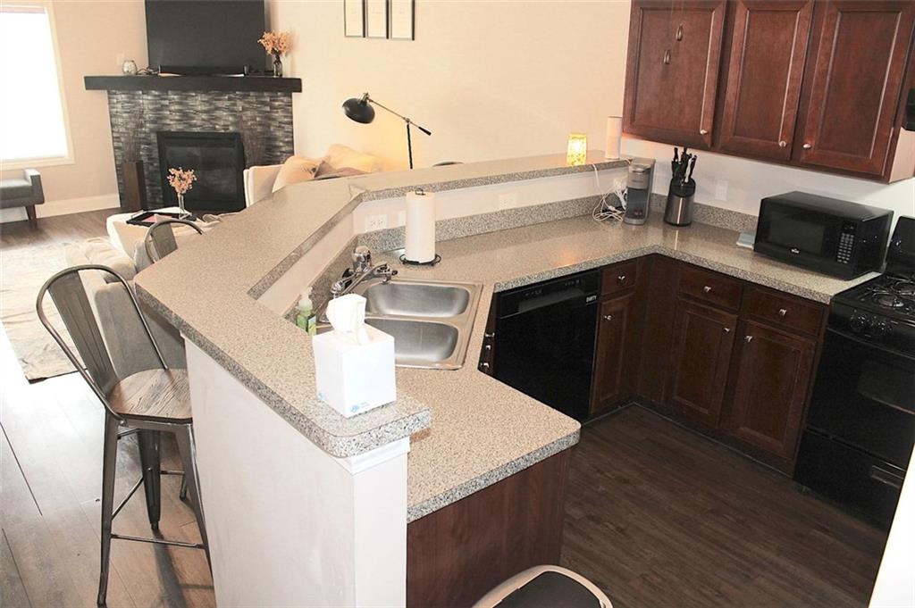- KitchenBreakfast Bar, Cabinets Stain, Laminate Counters, Pantry, View to Family Room