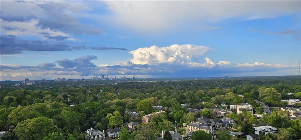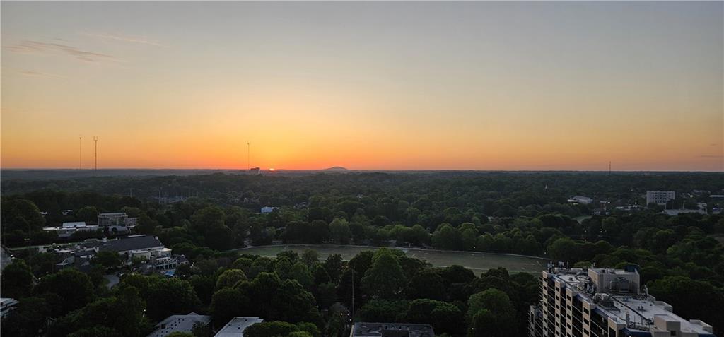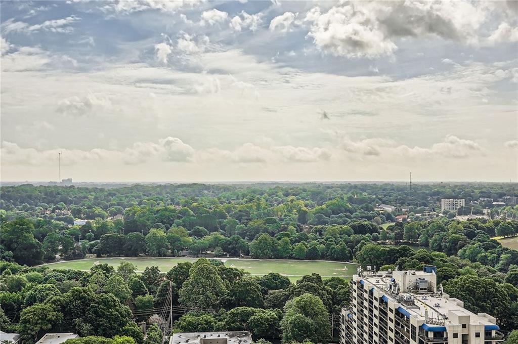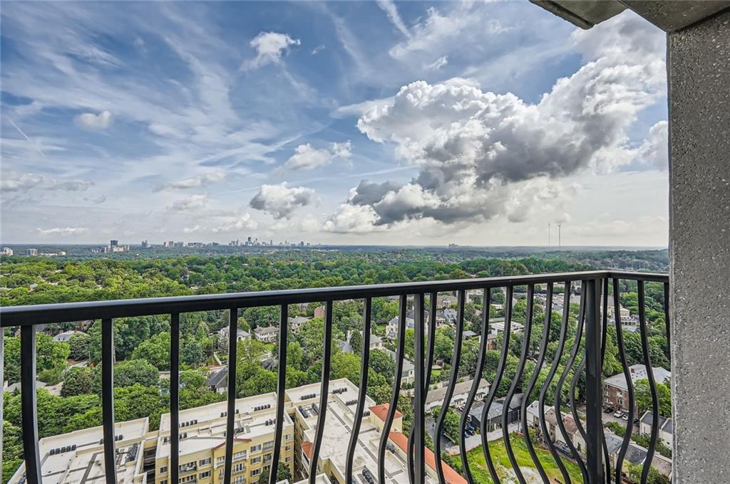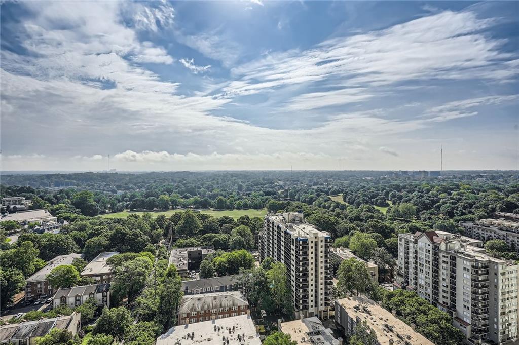 Come home to the 25th floor of the Mayfair Tower with Northeast Corner views from one of 3 balconies of this spacious and updated 2 br/ 2 ba unit. Twilight photos are the actual photos from the various balconies overlooking Piedmont Park, Ansley Park, The W Hotel and broad views to Buckhead and beyond. Each suite has its own walk in closet and balcony in addition to a fantastic view off the 24 x 12 living room. The Master Suite overlooks unobstructed Piedmont Park. Relaxed, entertaining made easy with the separate den/dining room. Large remodeled kitchen with new dishwasher, newer HVAC system, renovated baths and countertops, new flooring with 2 coveted parking spaces near the elevator. Really doesn't get any better! Tons of guest parking. Updated light fixtures, no carpet in unit, LED lights, electric stove, closet systems. Washer/Dryer included. Walk to the newly designed Colony Square, the Woodruff Arts Center, High Museum and Piedmont Park. The Mayfair Tower offers exceptional amenities, including a 24-hour concierge, a fitness center, business center, a brand new pool (coming soon), and a library, enhancing your living experience with convenience and leisure. The HOA is thrilled to share the exciting new designs for the upcoming pool and lobby renovation! The goal is to enhance your living experience with a beautiful indoor-outdoor space that promotes relaxation and community. Renderings showcasing the innovative design, which includes a seamless transition between the pool area and the clubroom - please email listing agent for copies.