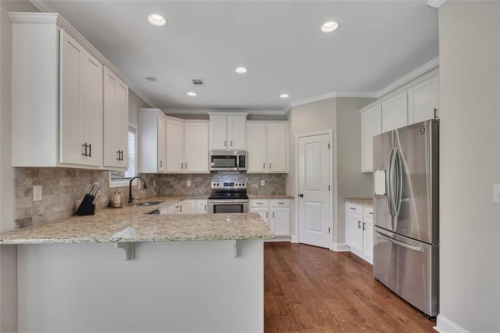 - KitchenBreakfast Bar, Cabinets White, Stone Counters, Pantry