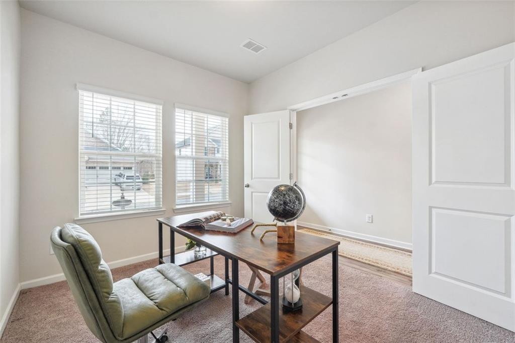 Resale opportunity in built out and desirable community of The Woods at Dawson. Superb location convenient to shopping, dining and access to GA400. This like new home offers large, level backyard ready for your personalization. 3BR, 2.5BA with office or possible 4th bedroom on main level. Upstairs spacious sitting area or flex space. Energy efficient tankless water heater, insulated attic for added saving on utility costs. Take a look at this move in ready home!