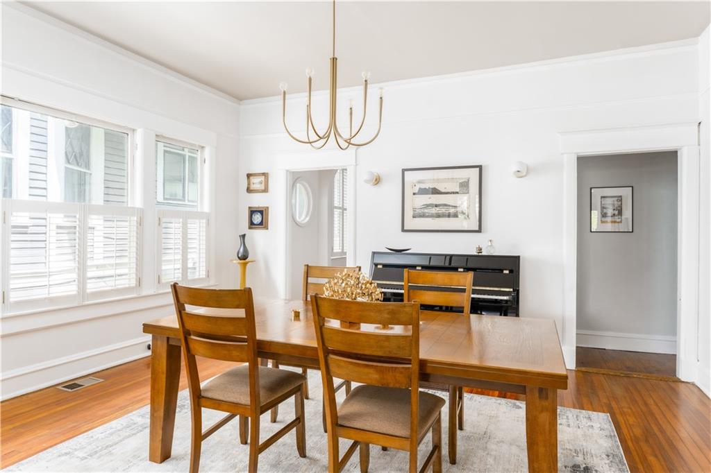 Storybook Charm Meets Modern Living! Welcome to this one-of-a-kind Craftsman beauty nestled perfectly situated in one of the city’s most sought-after neighborhoods. Set within a top-rated school district, this 3-bedroom, 2-bathroom gem perfectly blends old-world charm with modern convenience. From the moment you step onto the dreamy rocking chair front porch, you'll feel at home. Overlooking a beautifully landscaped front yard, it’s the ideal spot for morning coffee or evening chats. Inside, original hardwood floors run throughout the home, adding warmth and character to every room. The light and airy living room is anchored by a classic wood burning fireplace, creating a cozy yet open space to relax or gather. Just beyond, the family room offers peaceful views of the backyard, while the formal dining room is made for hosting holiday feasts and memorable celebrations. A thoughtfully placed wet bar between the kitchen and dining room adds ease to entertaining. The kitchen is functional and inviting, flowing easily into a spacious mudroom—perfect for keeping the chaos of daily life neatly tucked away. Each of the three bedrooms is generously sized, offering comfort, space, and flexibility for family or guests. Step outside to discover an expansive back deck built for entertaining—whether it’s an intimate dinner or a weekend cookout with friends and family. A side gate leads to a rare find: a private garage, offering both convenience and privacy. Bonus, the attic has promising potential for future expansion. This home is a true treasure—a perfect blend of timeless style, everyday comfort, and unforgettable charm. Come fall in love!!!