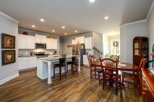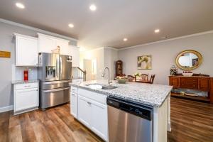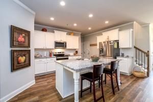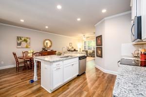 - KitchenCabinets White, Kitchen Island, Pantry, Stone Counters, View to Family Room