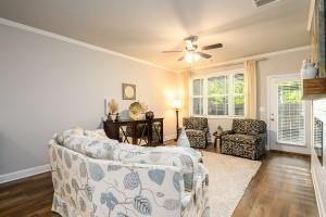 COME SEE THIS BEAUTIFUL TOWNHOME WITH A PRIMARY ON THE MAIN! LOCATED IN A NEW CONSTRUCTION COMMUNITY AND IS CONVENIENTLY LOCATED NEAR HISTORIC DOWNTOWN FLOWERY BRANCH, ACCESSIBLE TO LAKE LANIER, INTERSTATE 985, GROCERY AND RESTAURANTS LOCATED AT STONEBRIDGE VILLAGE. THIS END UNIT GEORGIA PLAN FEATURES AN OPEN CONCEPT LIVING ON THE FIRST FLOOR. THE KITCHEN IS THE HEART OF THE HOME AND FEATURES WHITE CABINETS, STAINLESS STEEL APPLIANCES, GRANITE COUNTERTOPS AND A SPACIOUS ISLAND SEATING 3 CHAIRS. THIS TOWNHOME INCLUDES AN ELECTRIC FIREPLACE WITH SHIPLAP ACCENTS AND A BEAUTIFUL, STAINED MANTEL ABOVE. THIS UNIQUE TOWNHOME HAS A SPACIOUS PRIMARY BEDROOM ON THE MAIN LEVEL COMPLETE WITH TREY CEILINGS, A WALK-IN CLOSET AND A BEAUTIFUL TILED ENSUITE BATHROOM INCLUDING AN OVERSIZED, FULLY TILED WALK IN SHOWER AND DOUBLE VANITY. THE LAUNDRY ROOM IS CONVENIENTLY LOCATED JUST OUTSIDE THE PRIMARY BEDROOM. A QUAINT SCREENED IN BACK PORCH OFF THE GREAT ROOM EXTENDS YOUR LIVING SPACE OUTSIDE. UPSTAIRS OFFERS TWO ADDITIONAL BEDROOMS WITH A LARGE HALL BATH. THIS UNIQUE FLOOR PLAN ALSO INCLUDES AN UPSTAIRS LOFT/FLEX ROOM WITH ENDLESS POSSIBILITIES AS WELL AS A BONUS ROOM PERFECT FOR AN OFFICE SPACE, IN HOME MOVIE THEATER OR SO MUCH MORE. TOWNHOME COMES WITH A RING DOORBELL. BLINDS INCLUDED ON BOTH FIRST AND SECOND FLOOR. YOU MUST SEE THIS TOWNHOME TODAY!