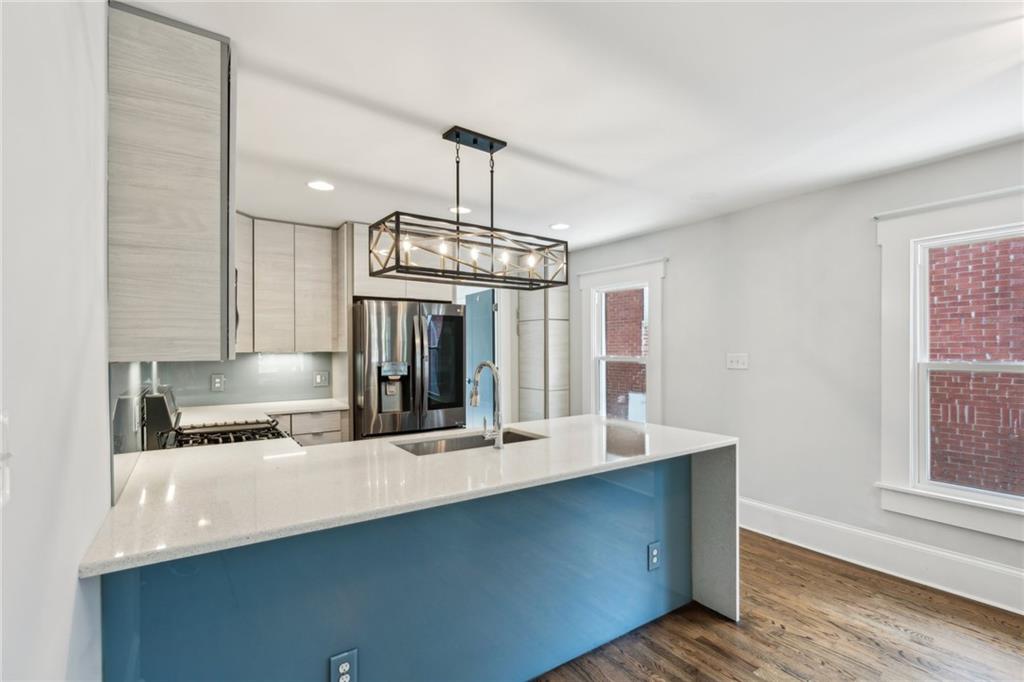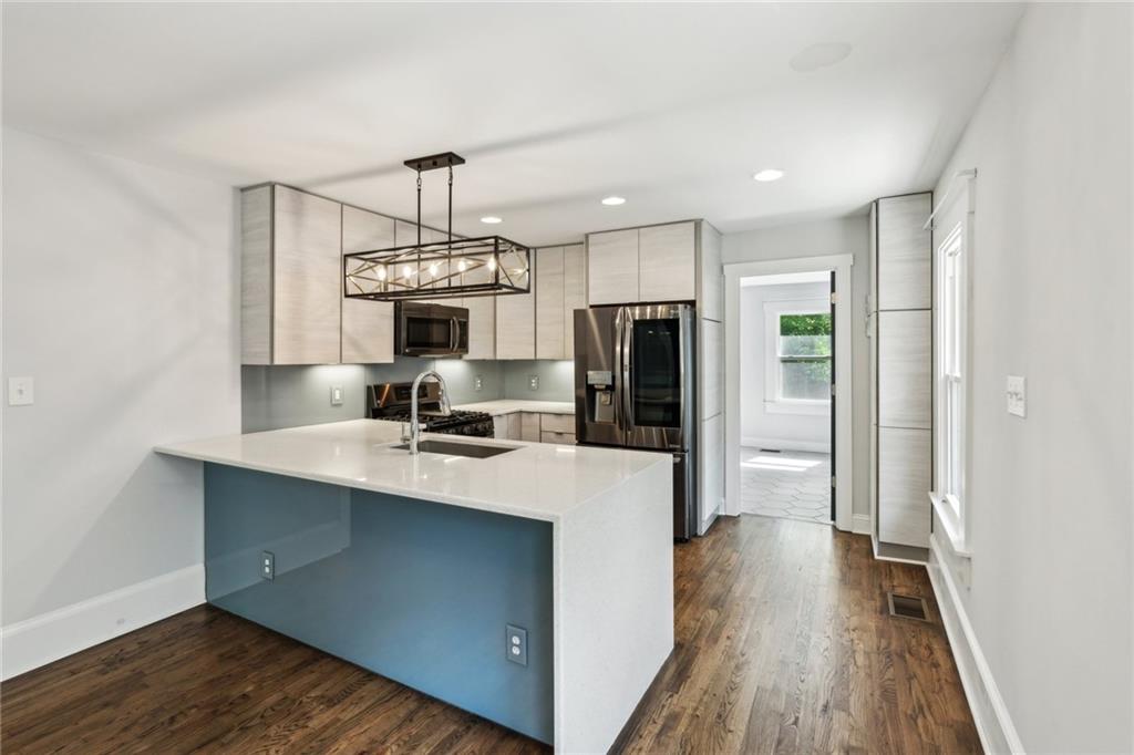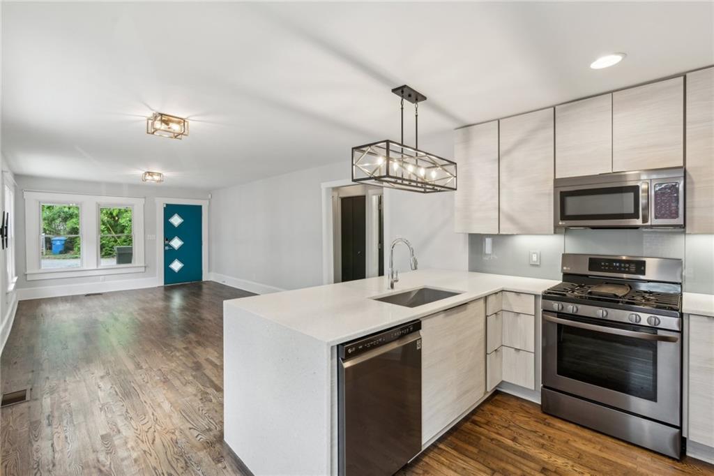 Charming Renovated Bungalow in East Atlanta Village. Welcome to 308 McPherson Place SE — a thoughtfully updated 3-bedroom, 1-bath bungalow in one of Atlanta’s most vibrant neighborhoods. This move-in-ready home blends modern upgrades with classic charm. Enjoy a kitchen with waterfall quartz countertops, a sleek glass tile backsplash, and black stainless steel appliances, including an LG washer/dryer, refrigerator, dishwasher, and microwave/oven combo. The open layout flows into a bright living area with hardwood floors and stylish finishes. A fully decked attic with original heart pine wood offers generous storage or creative flex space. Out back, enjoy a fenced yard perfect for relaxing or entertaining, plus a covered front porch to take in the neighborhood atmosphere. Located on a quiet street with easy access to EAV’s restaurants, shops, major roads, and local favorites. Zoned for Burgess-Peterson Elementary. Vacant and move-in ready!