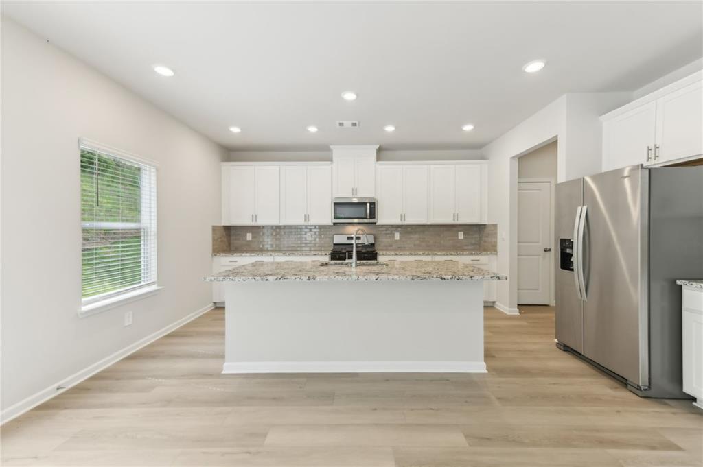 - KitchenEat-in Kitchen, Kitchen Island, Pantry, Stone Counters, View to Family Room