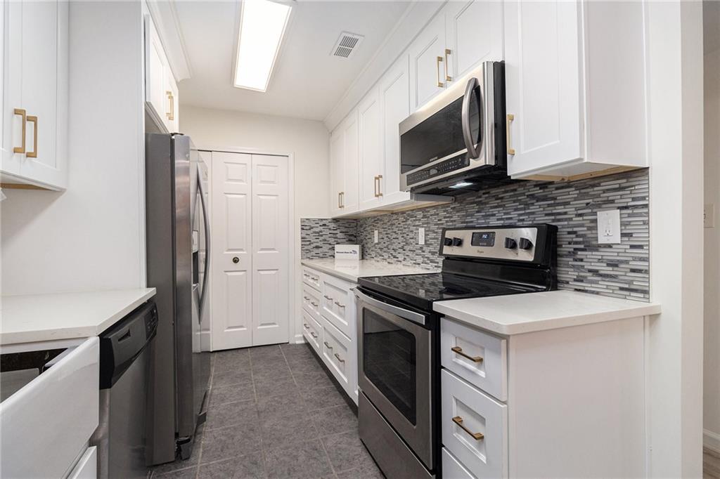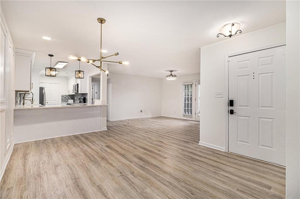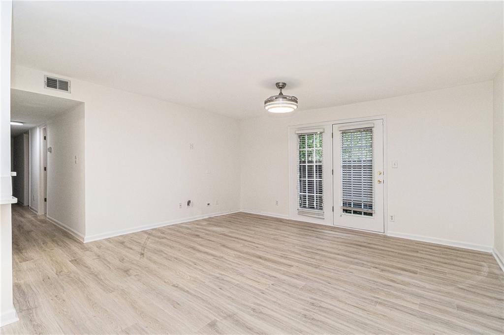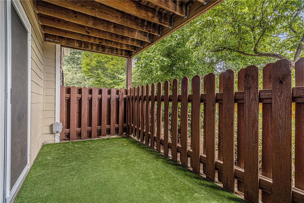 Fully renovated condo is a must see! HOA fees cover all utilities besides electric. Welcome home to this rare one-level living opportunity in the highly sought-after community of Elizabeth Heights, ideally located in Sandy Springs with quick access to major highways, dining, shopping, Morgan Falls, Abernathy Greenway, City Springs, and more! This beautifully updated 3-bedroom, 2-bathroom condo features a modern open floor plan with newly renovated kitchen cabinets and countertops, luxury laminate flooring throughout, fresh carpet, recessed lighting in the dining area, and fresh paint. The secondary bathroom has been stylishly upgraded with a new vanity, vessel sink, tile flooring, and designer fixtures. Enjoy entertaining in the bright and airy great room with direct access to your own private covered patio, or gather around the breakfast bar for casual meals. The spacious primary suite includes a generous walk-in closet, while two additional bedrooms offer flexible space for guests, a home office, or hobbies.Community amenities covered by the HOA include water, sewer, trash, cable, internet, security cameras, saltwater pool, clubhouse with gym, termite protection, dog-walking trails, green spaces, and exterior maintenance—all behind the safety of gated access.