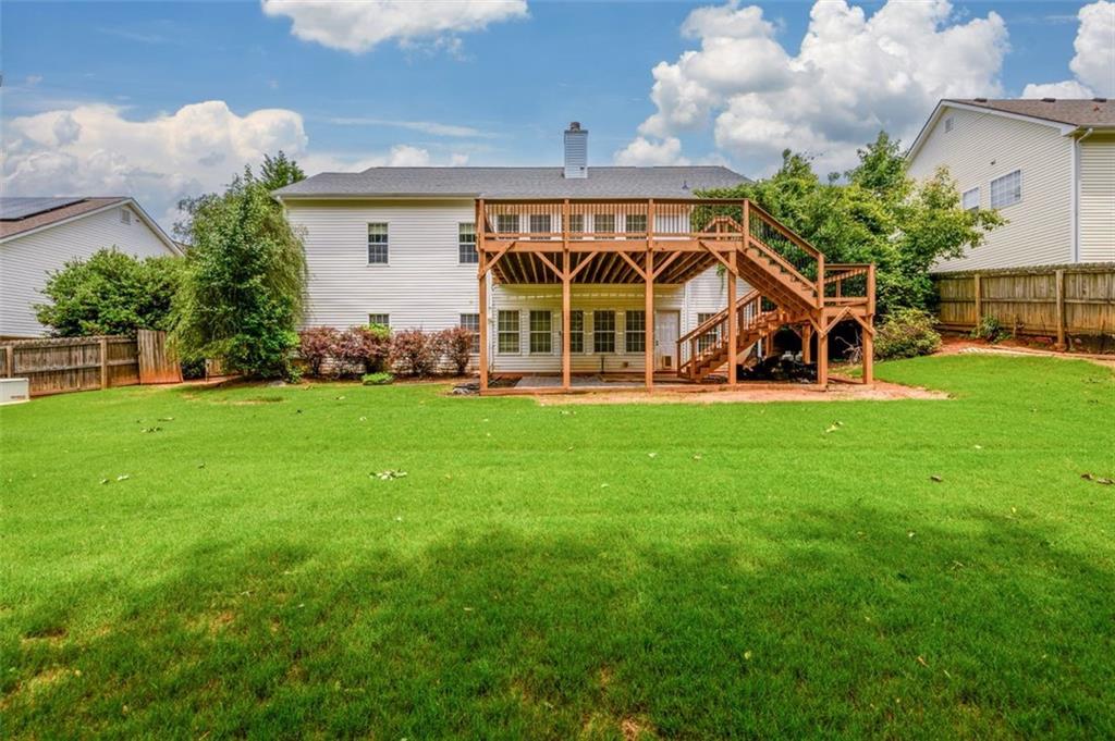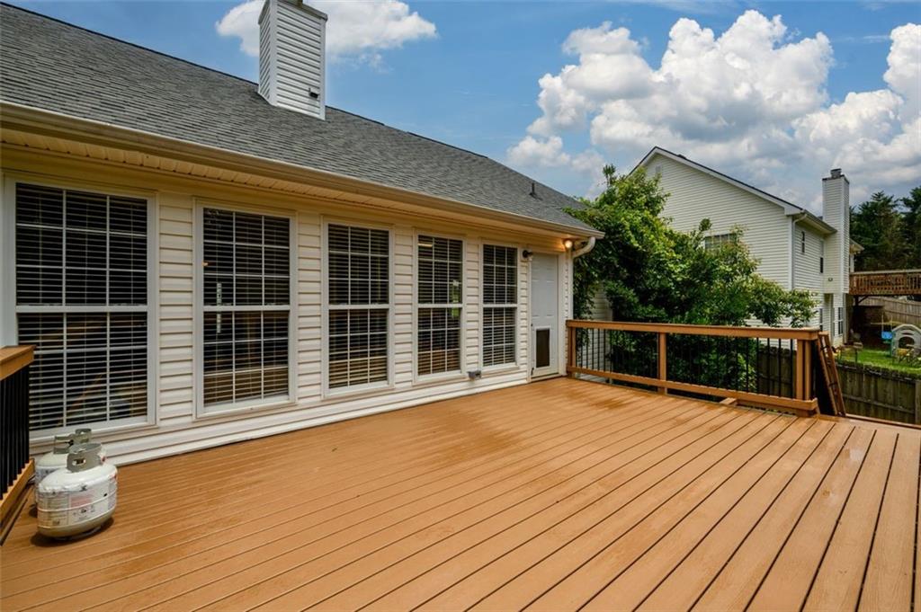 MOVE IN READY! OWNER MOTIVATED! This ranch is on a full finished basement with bonus room. A cozy front porch welcomes you, and upon entering the home you will see the family room with dual fireplace, which leads into the sitting/sun room or formal dining. The stunning new kitchen boasts new stainless steel appliances, quartz counters, a huge island, double oven, top of the line refrigerator and ample cabinetry. Walk out off the kitchen to a new trex deck to have your morning coffee. The primary suite and 2 additional bedrooms are on the main level. A second bath which is all updated for the 2 additional bedrooms. The full finished bonus room above the garage can be used as a 6th bedroom or office with brand new carpeting. The full finished basement features 2 large bedrooms, 1 updated full bath, a media/rec room(leaving screen and projector) and a large living room also with new carpeting. The new Trex deck off the rear of the home is accessed through the kitchen and is less than a year old - maintenance free! The roof is newer, HVAC newer, kitchen is less than a year , carpet is brand new in basement/terrace level. This home is a beautiful size. There is a fenced yard, a generator, and many updates. This home is 3600 sq ft, larger than appears in front elevation. It has the perfect location, close to all stores, restaurants, parkways, and Lake Lanier. It is a must see!