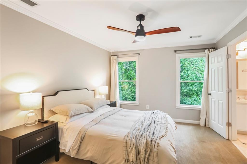 This spacious, light-filled 4-bedroom, 3.5-bath end-unit townhome offers the perfect blend of comfort, convenience, and style—all in a sought-after gated community. A 2-car garage, versatile terrace level with full bath (ideal as a guest suite, home office, or theater room), and thoughtful design make this home truly stand out. The main level is designed for both easy everyday living and effortless entertaining, featuring hardwood floors, high ceilings, an open dining area connected to a second sitting space, and a powder room for guests. The open-concept kitchen offers abundant cabinet storage, stainless steel appliances, a massive island for gathering, and seamless flow to the family room with fireplace. Three decks—including a screened porch and an oversized deck with retractable awning—extend your living space outdoors, perfect for morning coffee, grilling, or hosting friends. Upstairs, the primary suite boasts a trey ceiling, sitting area, and peaceful green space views. It also features a generously sized walk-in closet, en-suite bath with dual vanity, separate tub, and shower, plus a convenient upstairs laundry area. A loft space provides a perfect reading nook or small library, and two additional bedrooms share a Jack and Jill bath. Unbeatable location just minutes to GA-400, I-285, top shopping and dining, and major medical centers including St. Joseph’s, Northside, and Scottish Rite Hospitals. **INVESTOR FRIENDLY COMMUNITY. LONG TERM RENTALS ARE ALLOWED**