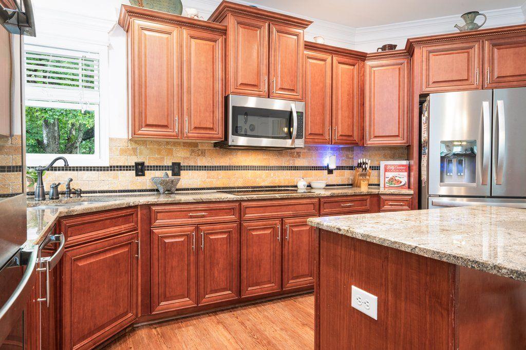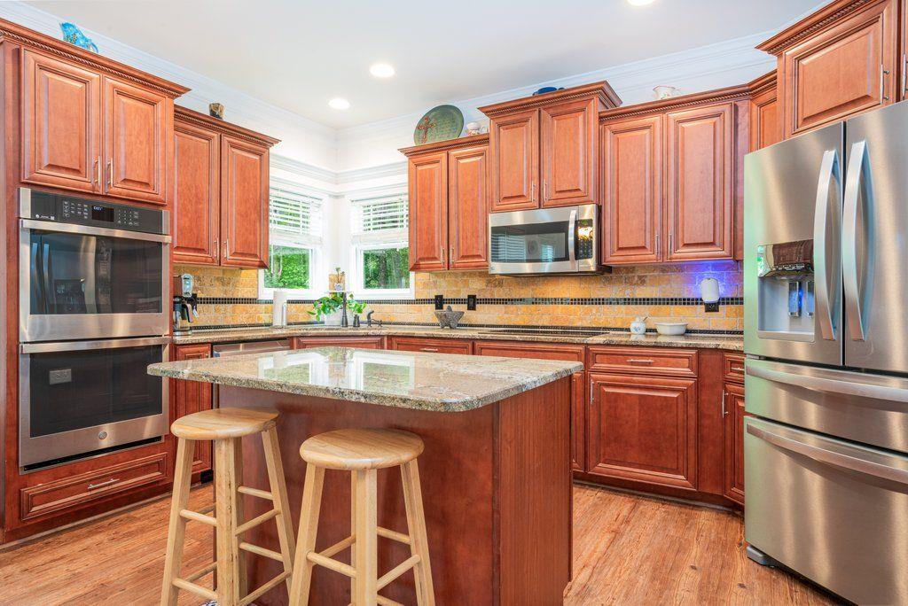 - KitchenBreakfast Bar, Breakfast Room, Cabinets Stain, Kitchen Island, Pantry, Second Kitchen, Stone Counters, View to Family Room