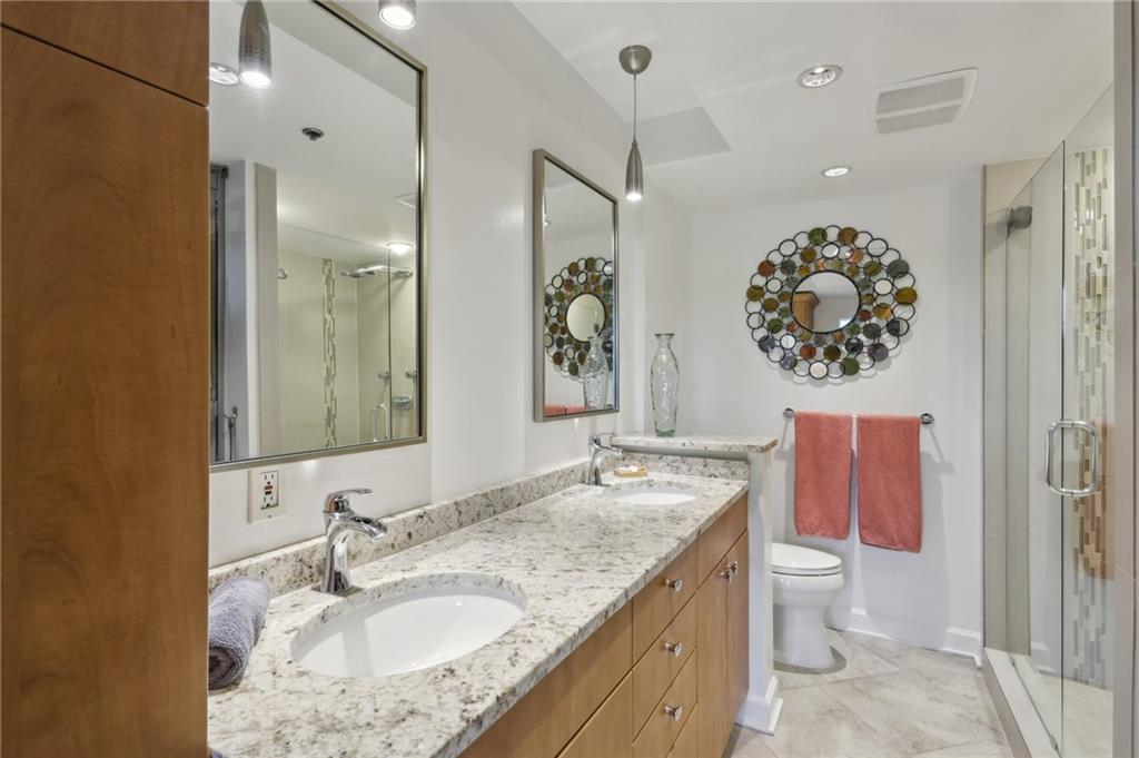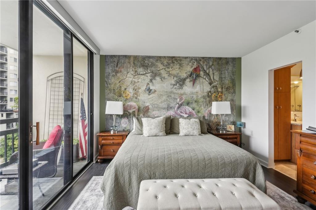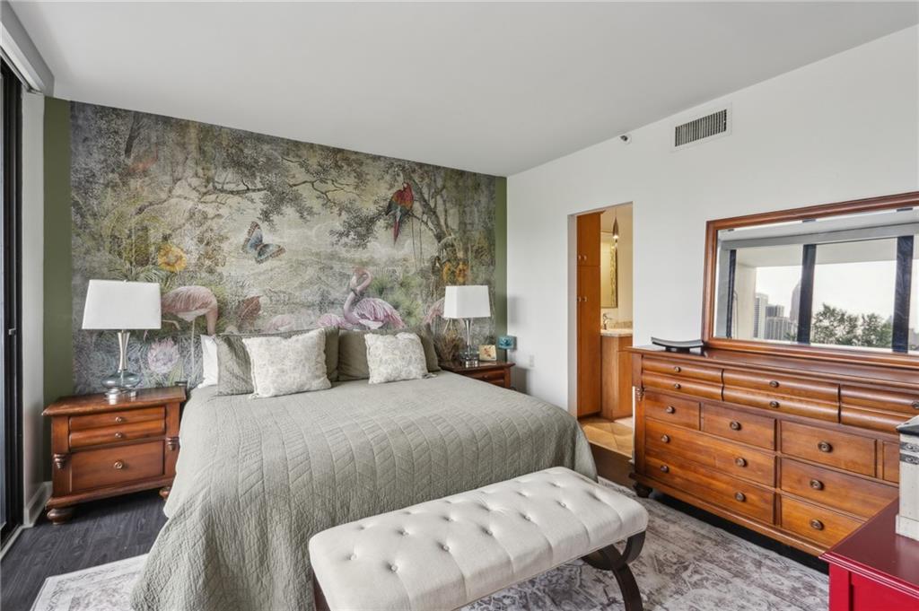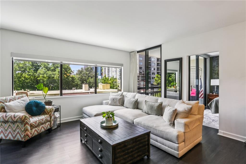 South facing Parkside Flat! Wonderful unit with amazing Midtown views skyline views! This completley renovated flat is in Midtown's most sought after location, across from Piedmont Park! Bright and open with amazing sense of space! Spacious open kitchen that includes stainless appliances and quartz counters. Large Living Room and Dining Room, multiple closets and dual balconies offering a wonderful setting for morning coffee or an evening drink. Walk to restaurants and shops of Midtown and the Beltline. Ansley Above the Park has recently completed many upgrades and is a wonderful place to live. A valuable bonus provided by 24/7 concierge, pool, roof-top terrace level, gym, guest suite. Storage unit. Two deeded parking spots. At this time, the building has an open rental spot so could be good for investors.
