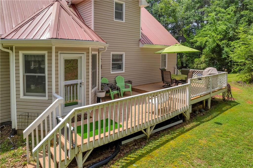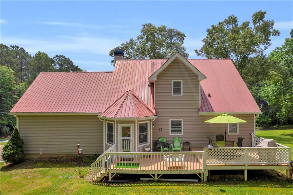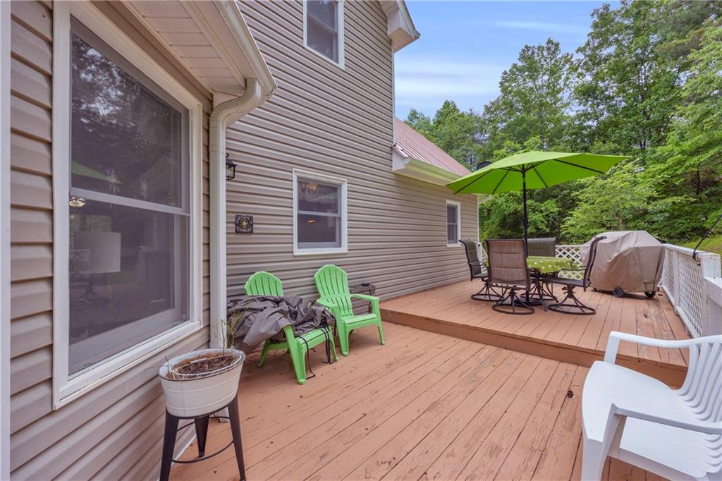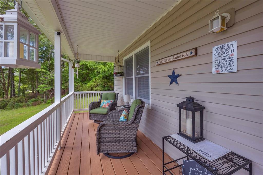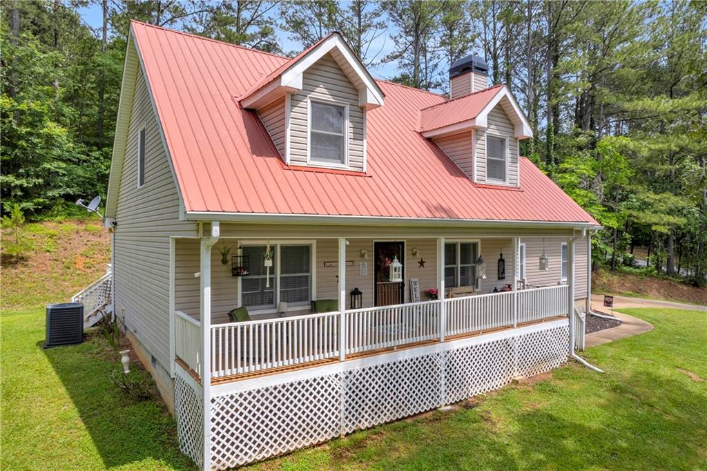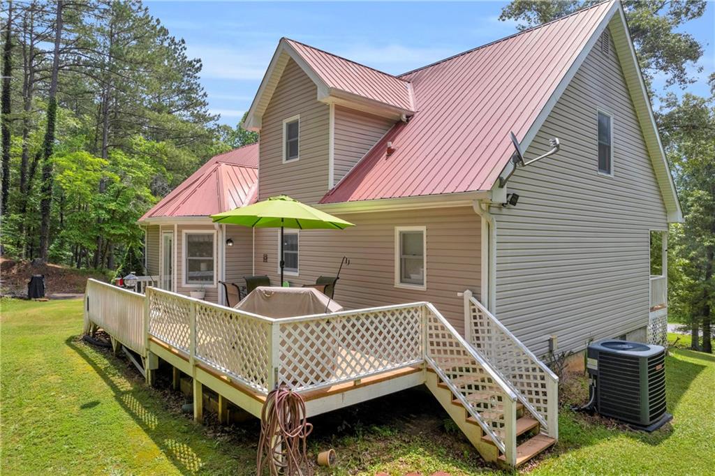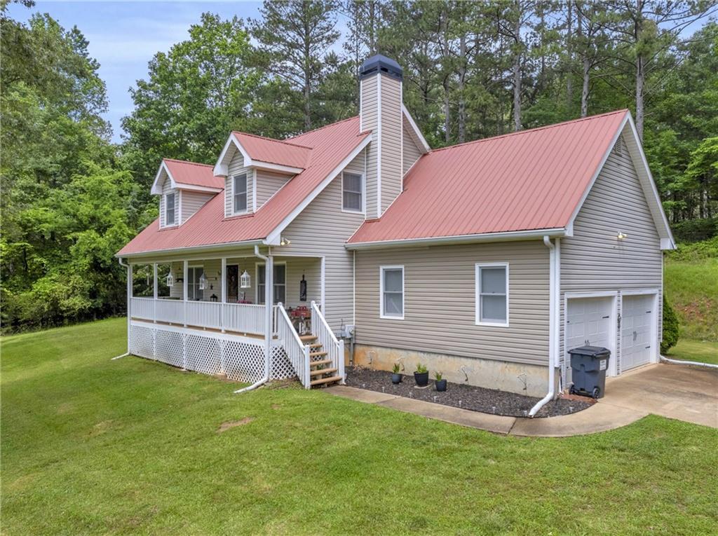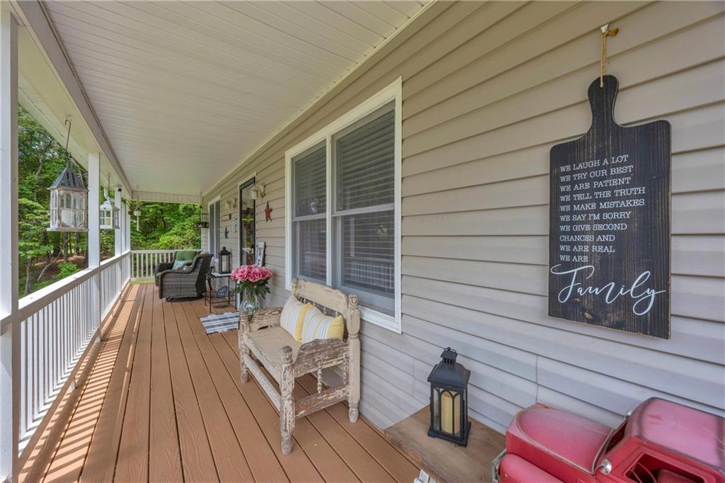 Welcome to this charming home with 1950 sq ft, perfectly situated on a spacious one-acre+ lot offering privacy and room to enjoy the outdoors. The covered front porch spans the entire front of the home, creating a warm and welcoming entrance and the perfect spot for relaxing with a morning coffee or evening breeze. Inside, the family room is cozy yet spacious with beautiful hardwood floors and a stone fireplace that adds warmth and charm. The kitchen offers ample cabinet space and includes a brand-new top-of-the-line refrigerator with smart features. The spacious primary bedroom suite is conveniently located on the main floor, tucked away for privacy, and features double closets and an attached bathroom. The laundry room is also on the main level for added ease. Upstairs, you’ll find two additional oversized bedrooms that share a full bath. One of the bedrooms is extra-large, making it ideal for a home office, craft room, gaming space, or guest suite—the possibilities are endless. You’ll also appreciate the additional finished storage space upstairs, complete with its own door—perfect for a small office, seasonal storage, or whatever meets your needs. Step out back to an expansive deck, ideal for grilling, entertaining, or simply enjoying the peaceful surroundings. Updates include a newer metal roof known for its longevity, and a newer HVAC system still under warranty—offering peace of mind for years to come. Located in the sought-after and well-established Country Crossings neighborhood, this home offers a peaceful environment paired with an unbeatable location. While this is not part of a HOA, an optional membership to the Recreation Association is available for access to the neighborhood amenities; however, any associated fees would be the sole responsibility of the buyer, should they choose to join. Enjoy the convenience of being just minutes from GA-400, making for an easy commute and close proximity to the North Georgia Premium Outlets, a variety of shopping, dining, and all the everyday essentials. A rare find that offers both flexibility and location—don’t miss out! Schedule your showing today.