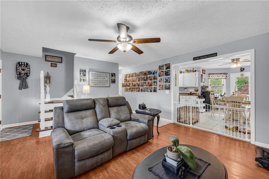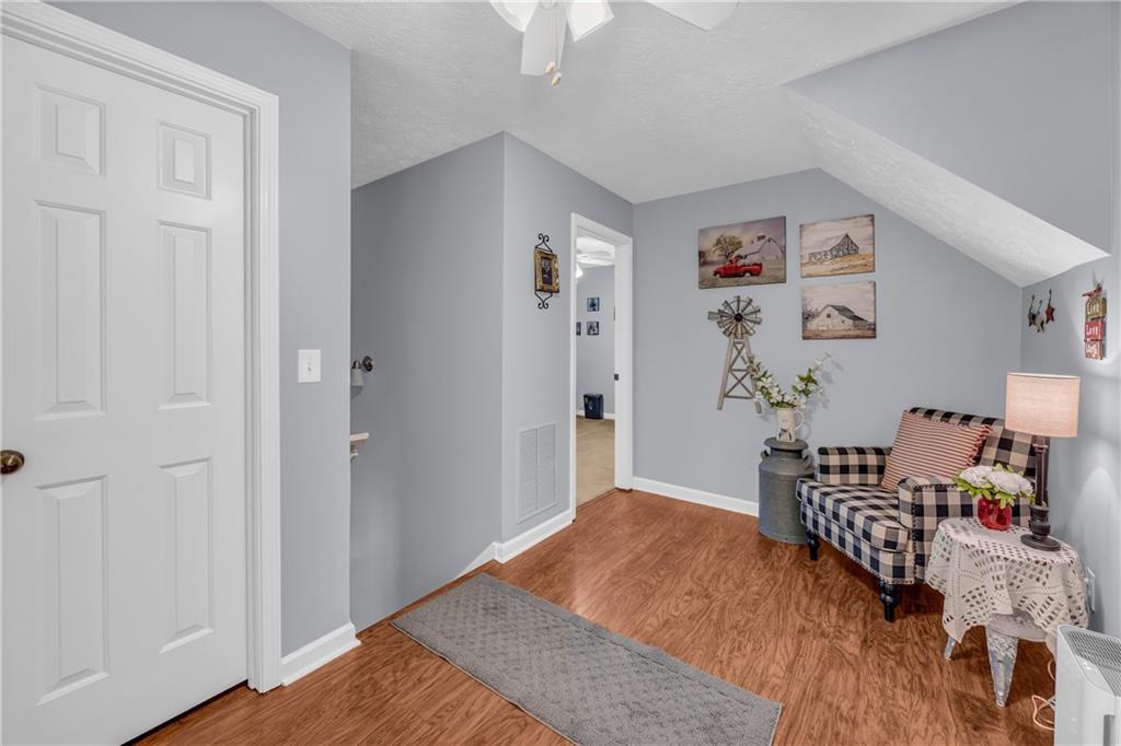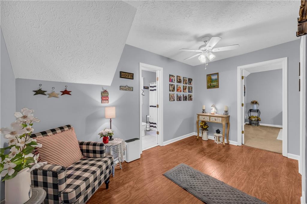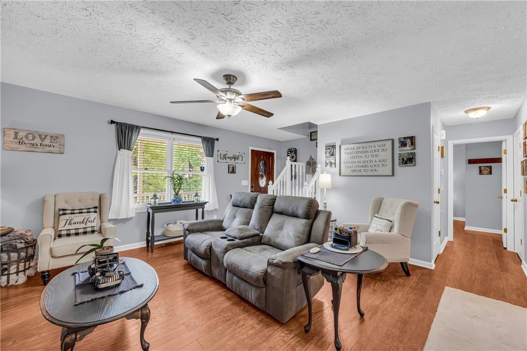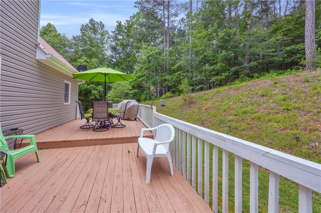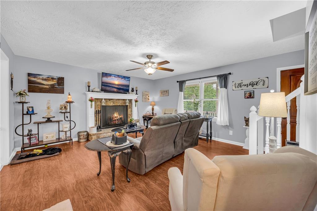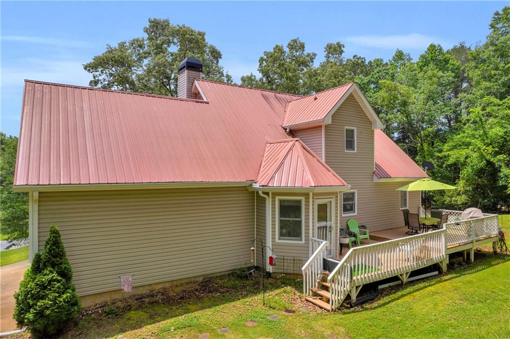 Welcome to this charming home with 1950 sq ft, perfectly situated on a spacious one-acre+ lot offering privacy and room to enjoy the outdoors. The covered front porch spans the entire front of the home, creating a warm and welcoming entrance and the perfect spot for relaxing with a morning coffee or evening breeze. Inside, the family room is cozy yet spacious with beautiful hardwood floors and a stone fireplace that adds warmth and charm. The kitchen offers ample cabinet space and includes a brand-new top-of-the-line refrigerator with smart features. The spacious primary bedroom suite is conveniently located on the main floor, tucked away for privacy, and features double closets and an attached bathroom. The laundry room is also on the main level for added ease. Upstairs, you’ll find two additional oversized bedrooms that share a full bath. One of the bedrooms is extra-large, making it ideal for a home office, craft room, gaming space, or guest suite—the possibilities are endless. You’ll also appreciate the additional finished storage space upstairs, complete with its own door—perfect for a small office, seasonal storage, or whatever meets your needs. Step out back to an expansive deck, ideal for grilling, entertaining, or simply enjoying the peaceful surroundings. Updates include a newer metal roof known for its longevity, and a newer HVAC system still under warranty—offering peace of mind for years to come. Located in the sought-after and well-established Country Crossings neighborhood, this home offers a peaceful environment paired with an unbeatable location. While this is not part of a HOA, an optional membership to the Recreation Association is available for access to the neighborhood amenities; however, any associated fees would be the sole responsibility of the buyer, should they choose to join. Enjoy the convenience of being just minutes from GA-400, making for an easy commute and close proximity to the North Georgia Premium Outlets, a variety of shopping, dining, and all the everyday essentials. A rare find that offers both flexibility and location—don’t miss out! Schedule your showing today.