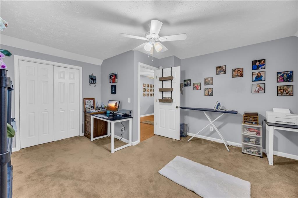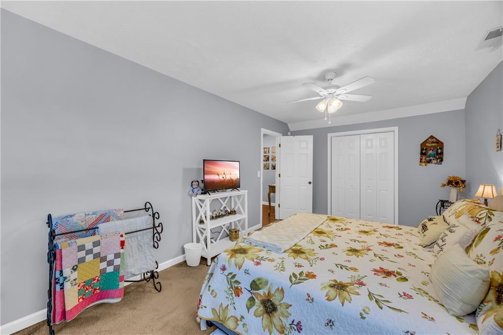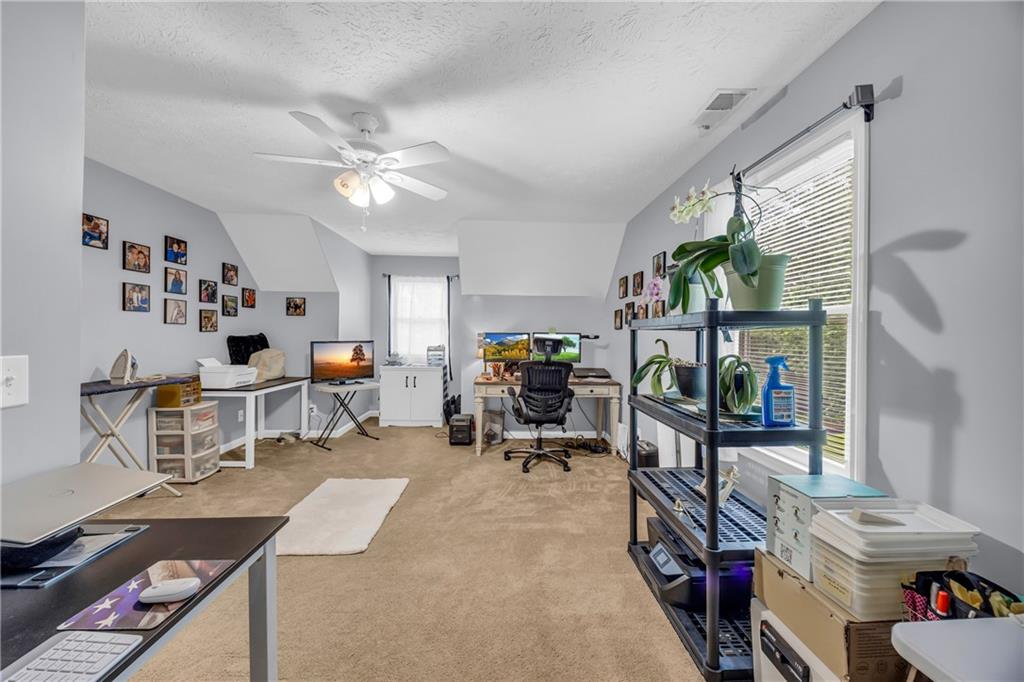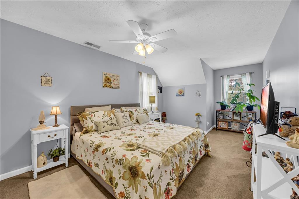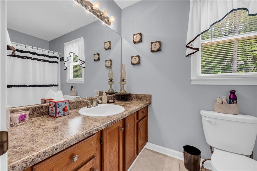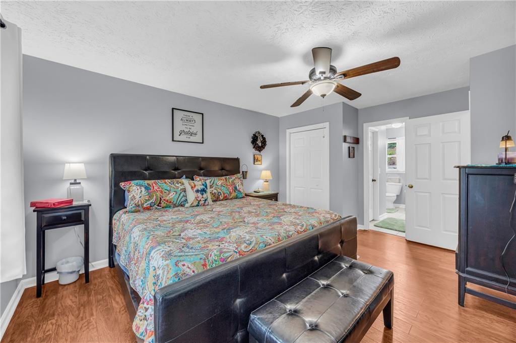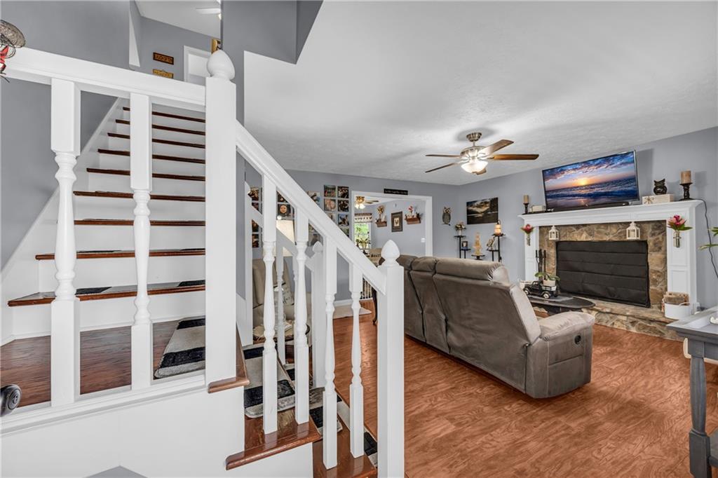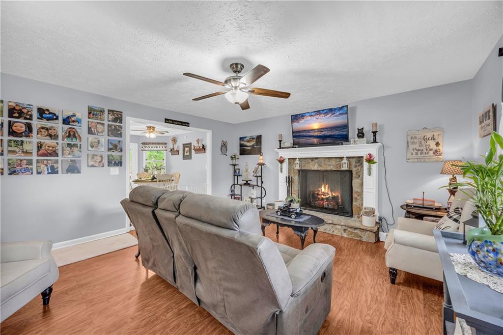Welcome to this charming home with 1950 sq ft, perfectly situated on a spacious one-acre+ lot offering privacy and room to enjoy the outdoors. The covered front porch spans the entire front of the home, creating a warm and welcoming entrance and the perfect spot for relaxing with a morning coffee or evening breeze. Inside, the family room is cozy yet spacious with beautiful hardwood floors and a stone fireplace that adds warmth and charm. The kitchen offers ample cabinet space and includes a brand-new top-of-the-line refrigerator with smart features. The spacious primary bedroom suite is conveniently located on the main floor, tucked away for privacy, and features double closets and an attached bathroom. The laundry room is also on the main level for added ease. Upstairs, you’ll find two additional oversized bedrooms that share a full bath. One of the bedrooms is extra-large, making it ideal for a home office, craft room, gaming space, or guest suite—the possibilities are endless. You’ll also appreciate the additional finished storage space upstairs, complete with its own door—perfect for a small office, seasonal storage, or whatever meets your needs. Step out back to an expansive deck, ideal for grilling, entertaining, or simply enjoying the peaceful surroundings. Updates include a newer metal roof known for its longevity, and a newer HVAC system still under warranty—offering peace of mind for years to come. Located in the sought-after and well-established Country Crossings neighborhood, this home offers a peaceful environment paired with an unbeatable location. While this is not part of a HOA, an optional membership to the Recreation Association is available for access to the neighborhood amenities; however, any associated fees would be the sole responsibility of the buyer, should they choose to join. Enjoy the convenience of being just minutes from GA-400, making for an easy commute and close proximity to the North Georgia Premium Outlets, a variety of shopping, dining, and all the everyday essentials. A rare find that offers both flexibility and location—don’t miss out! Schedule your showing today.